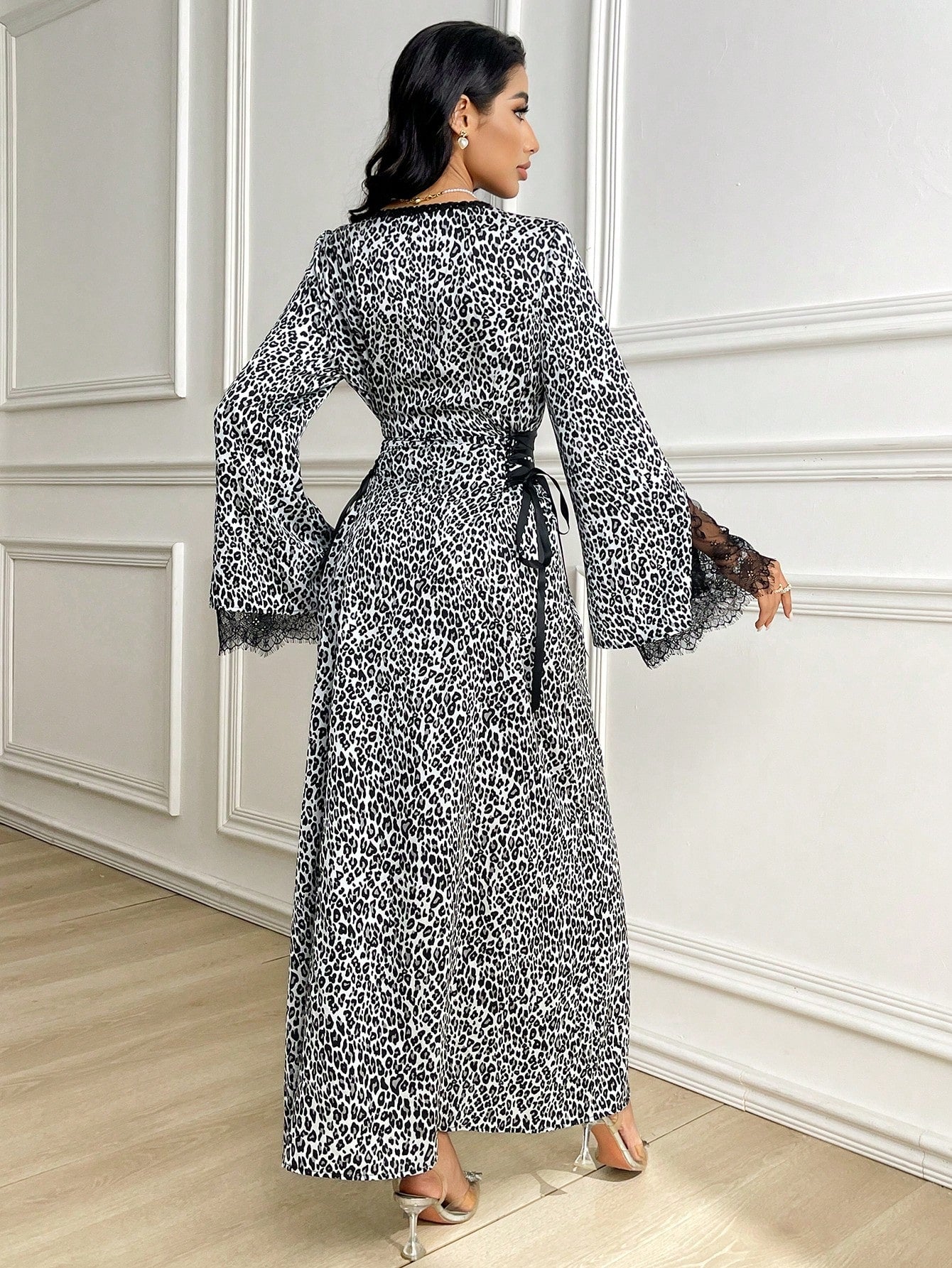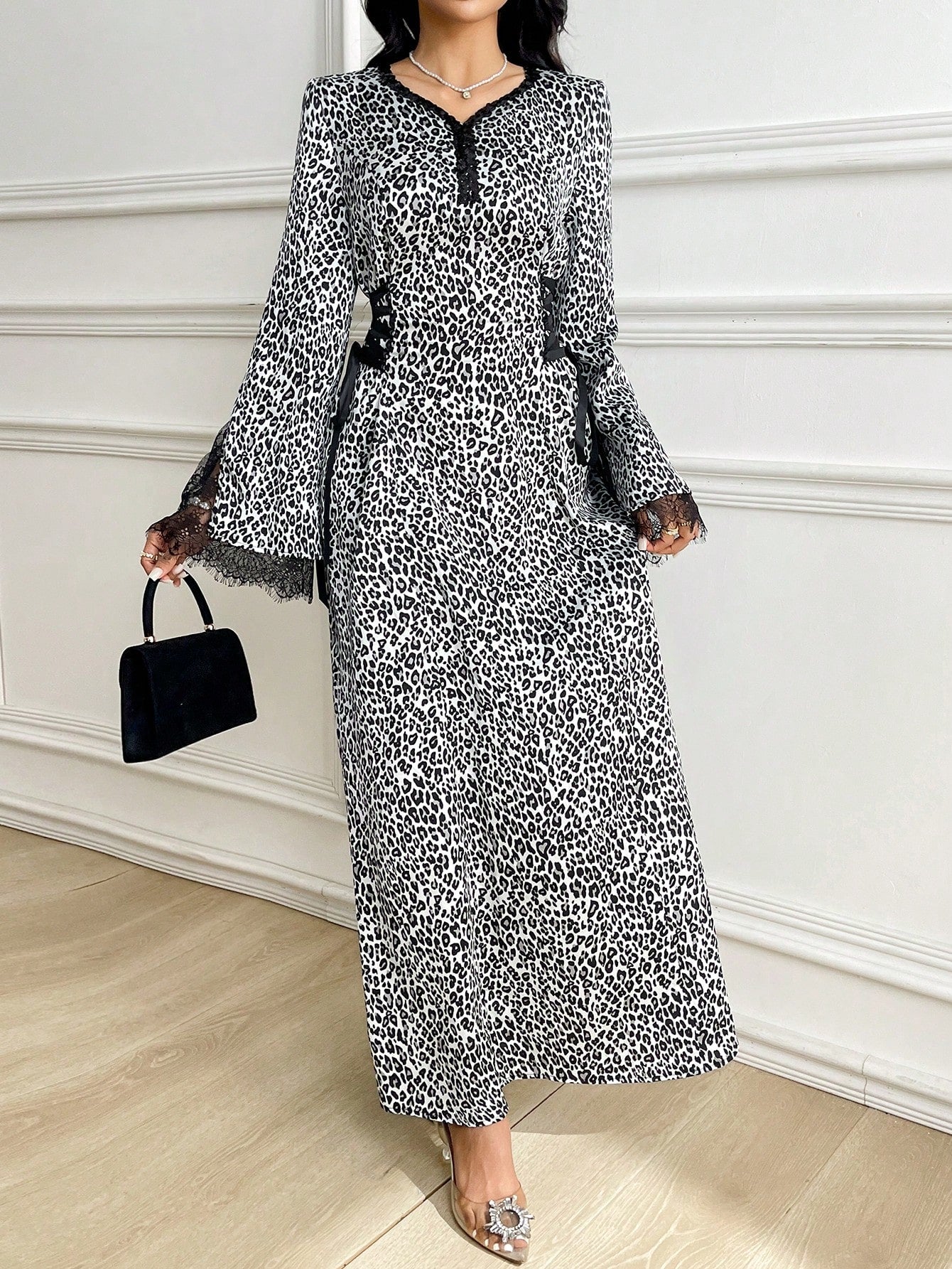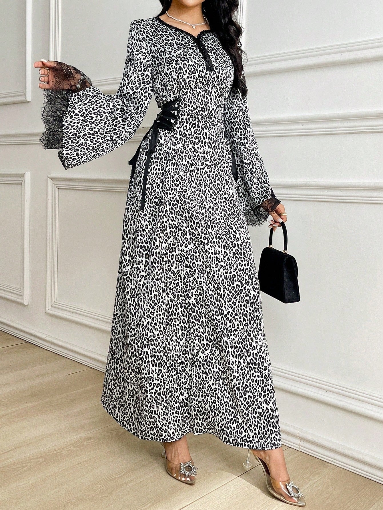 Al Najma Women's Casual Arabic Style Leopard Print Dress, Suitable For Summer