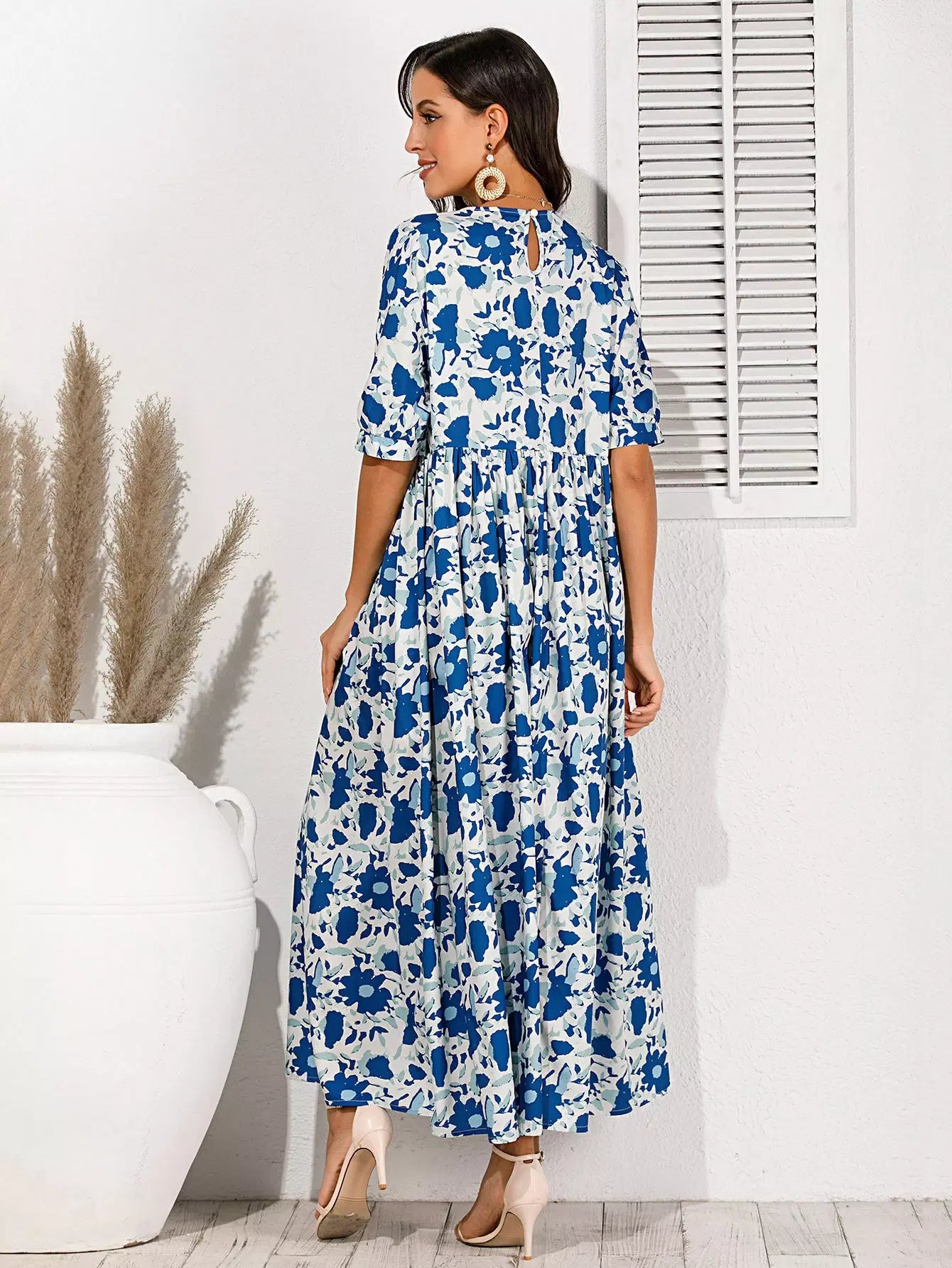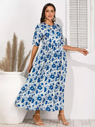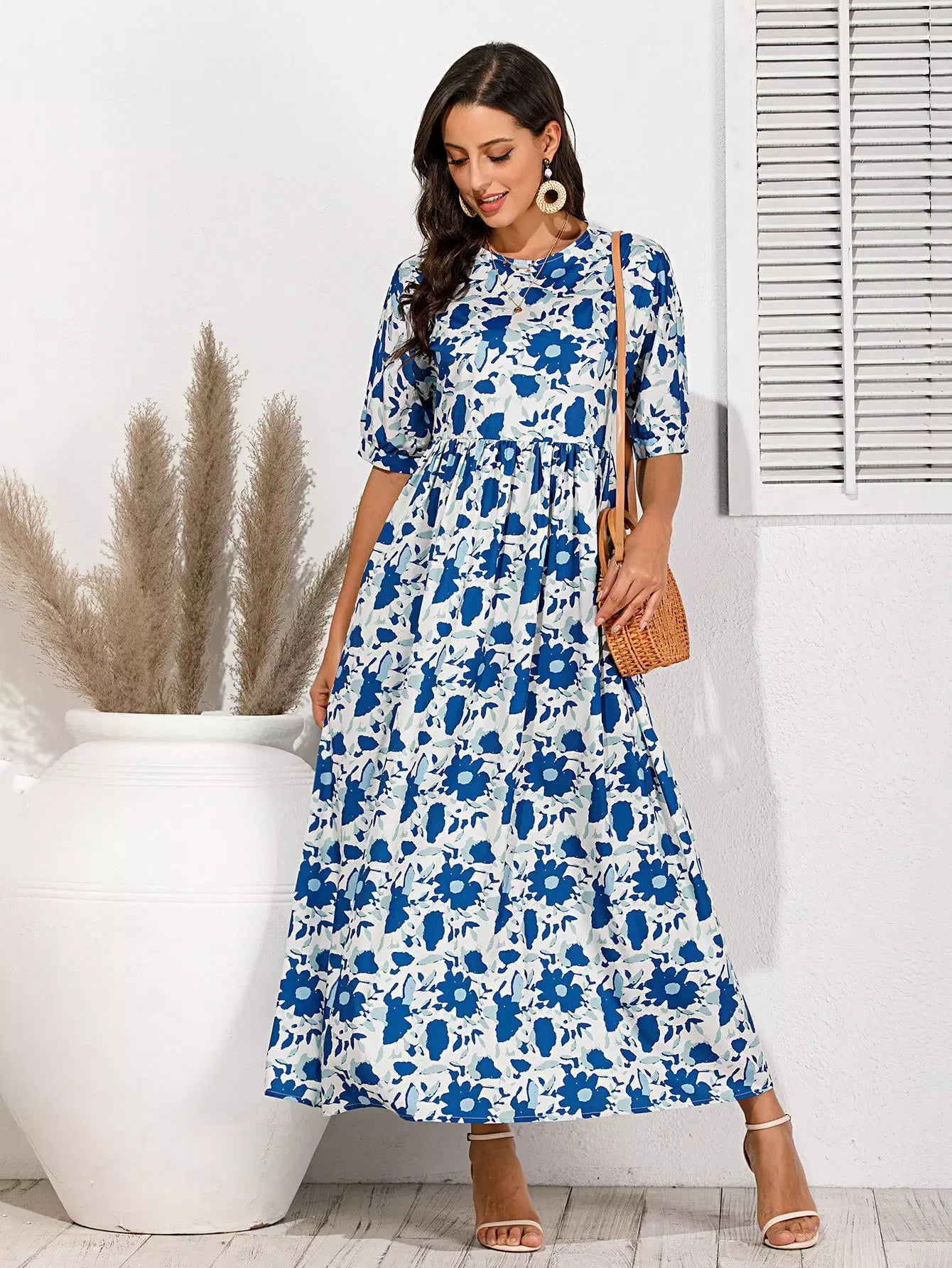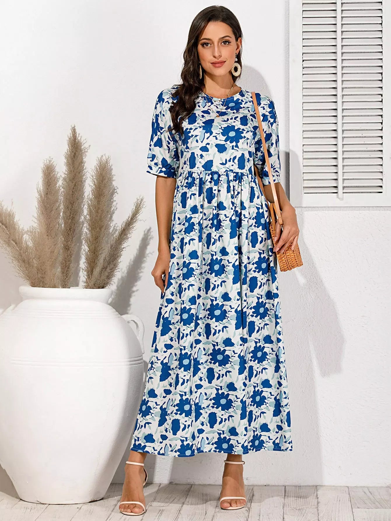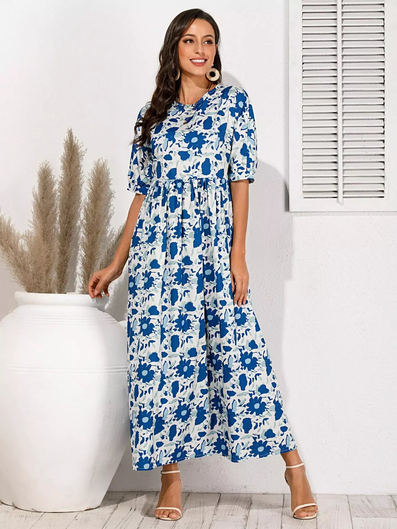 فستان ماكسي عالي الخصر مزين بالورود بالكامل