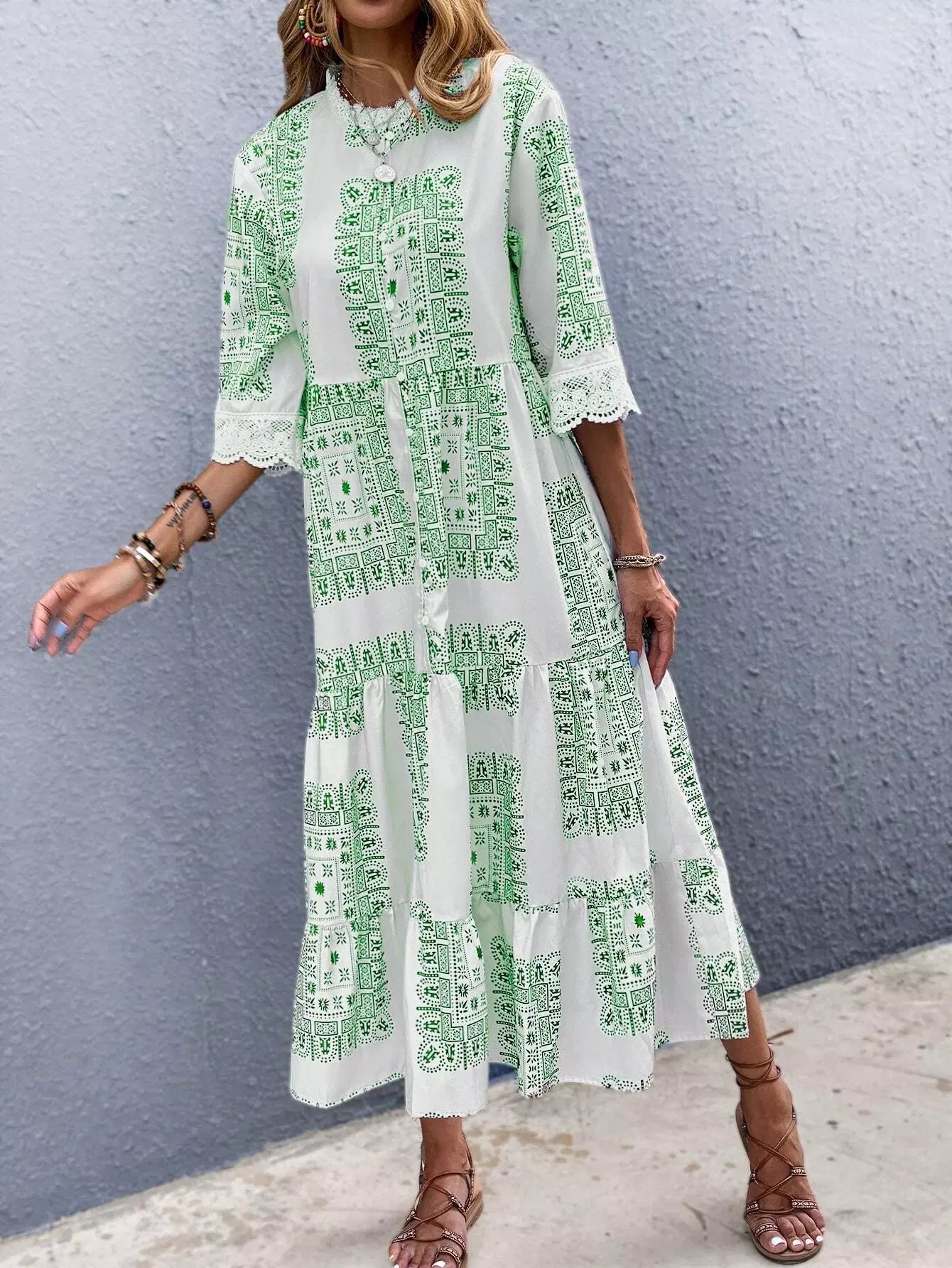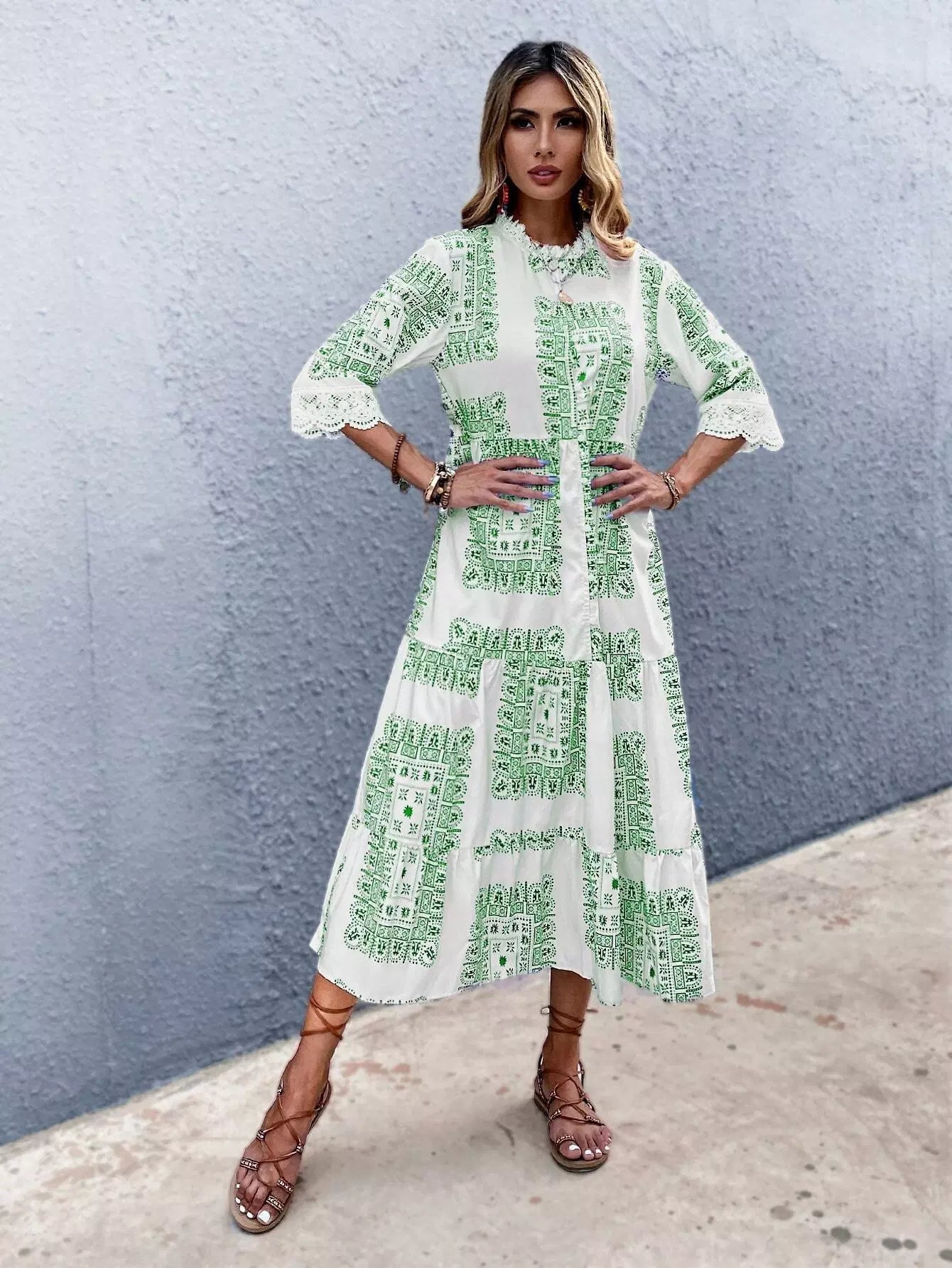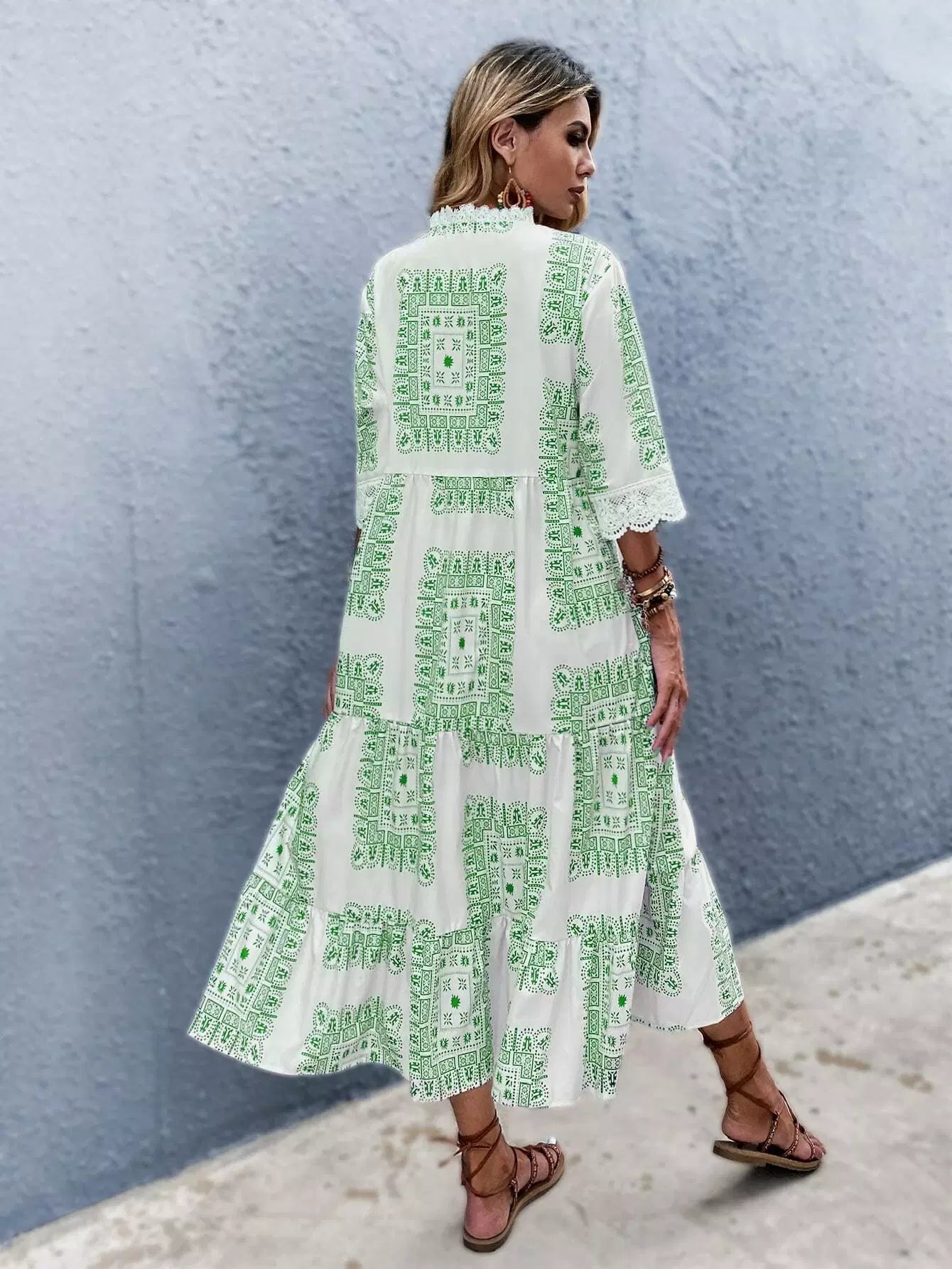 فستان بطبعة كاملة مع كشكشة على الرقبة