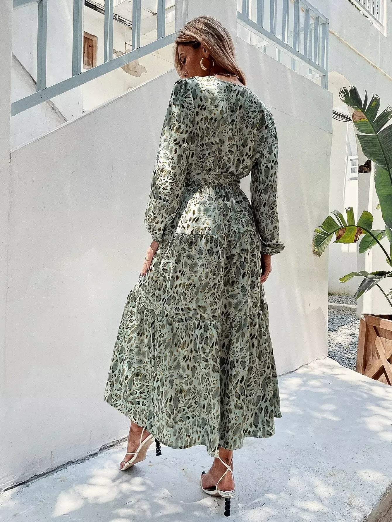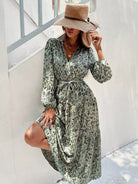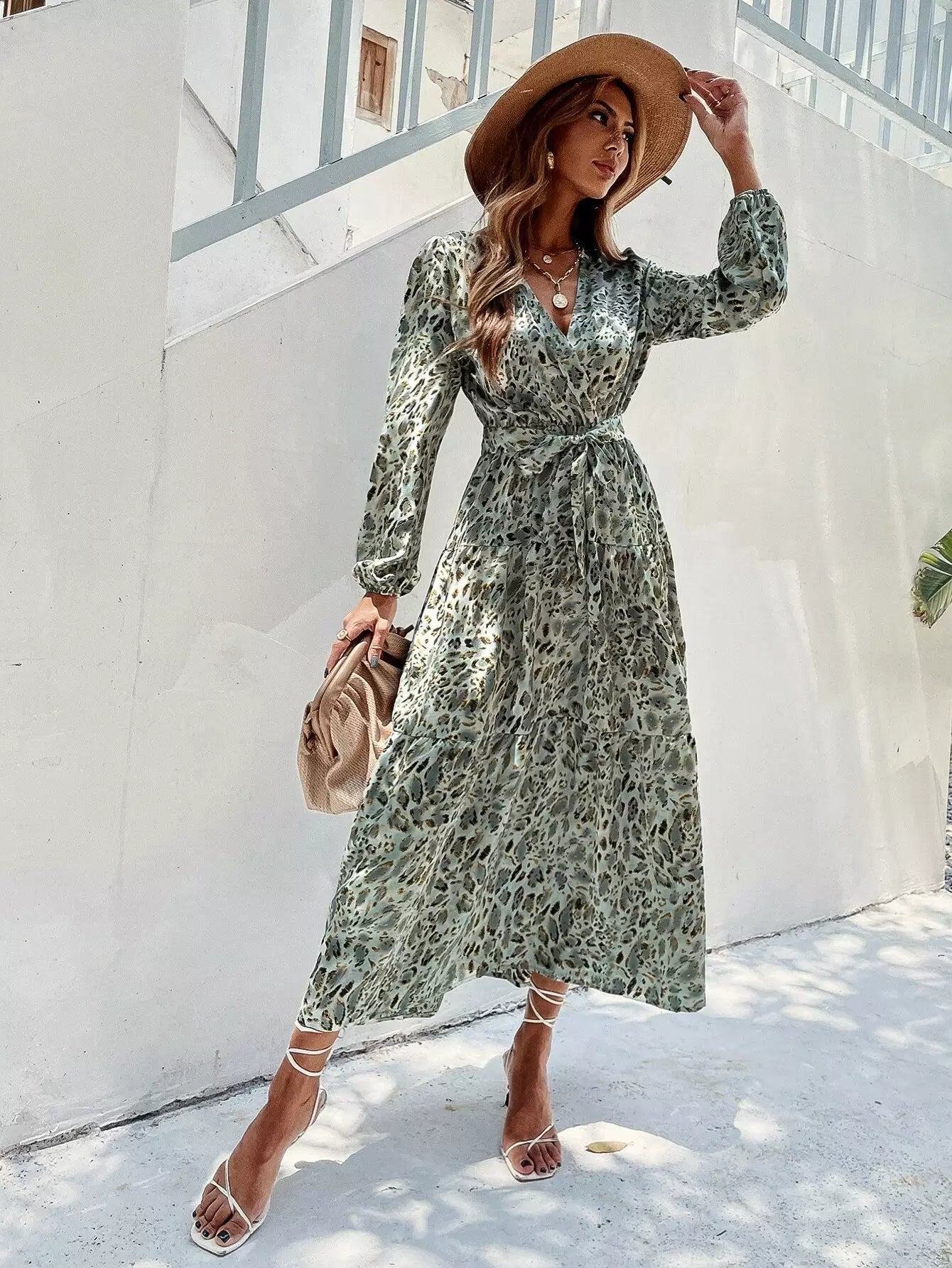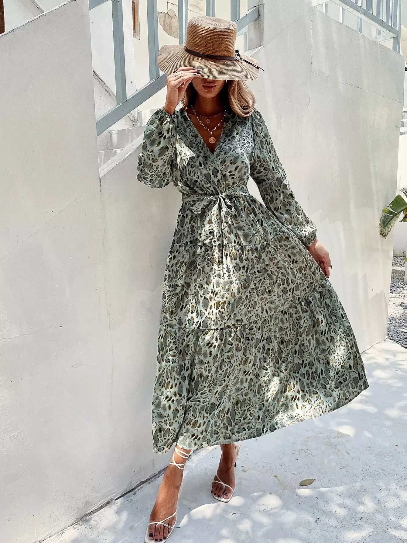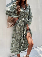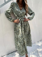 فستان على شكل حرف A ملفوف بطباعة كاملة بدون حزام