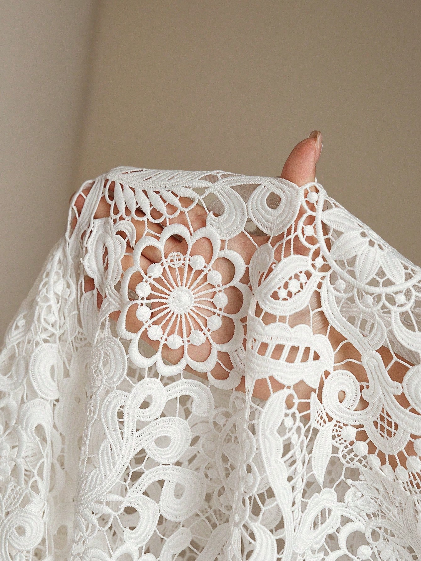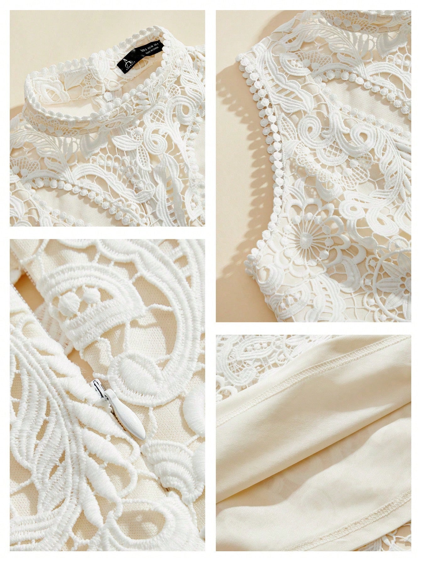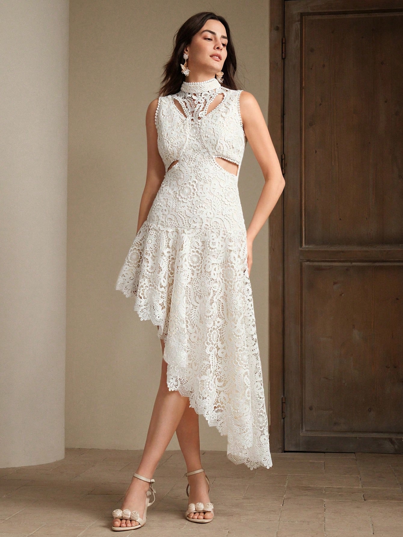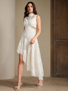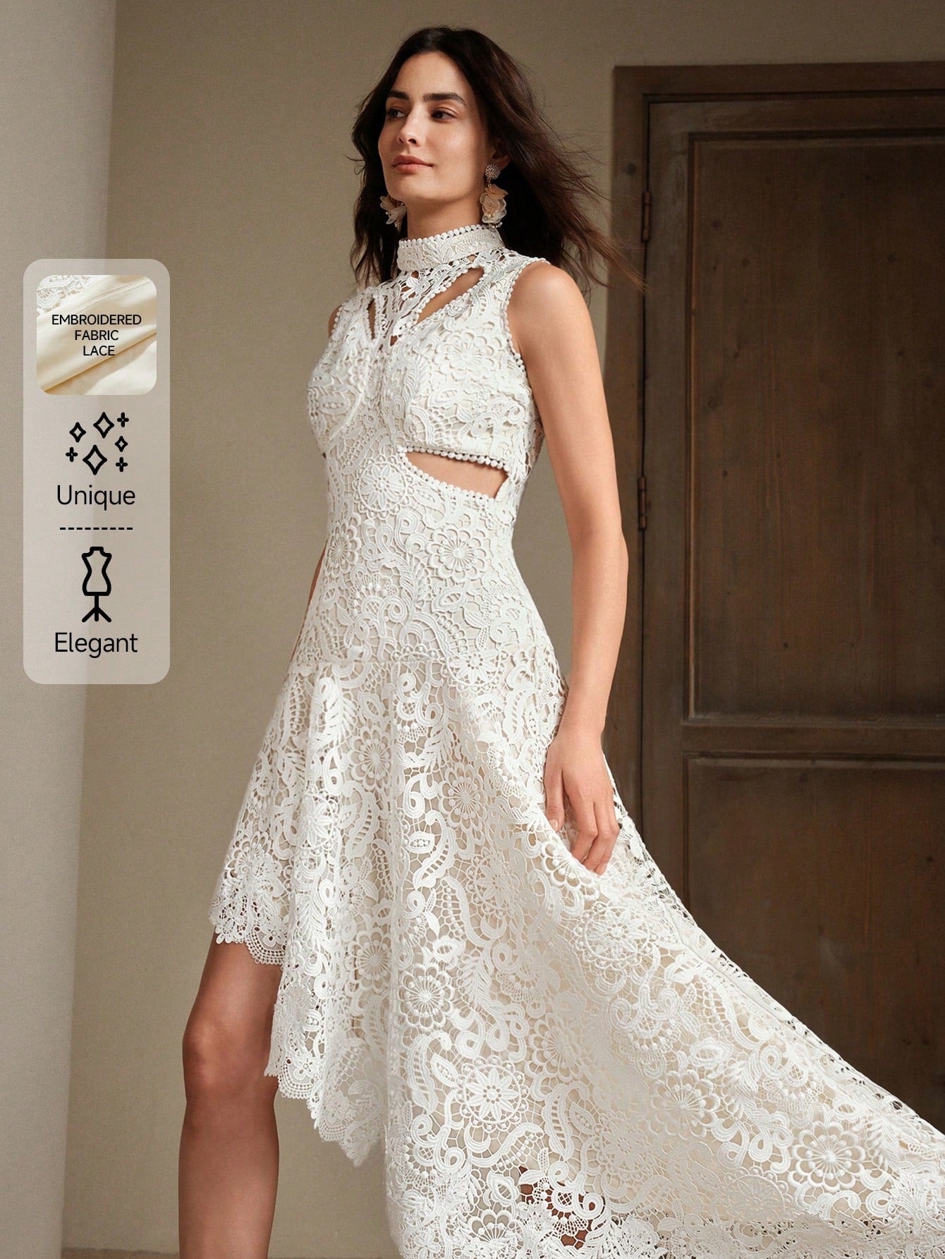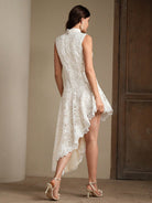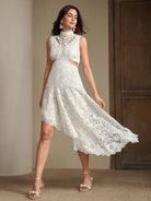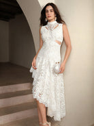 Anewsta Elegant Women's Lace Hollow-Out Embroidered Asymmetrical Hem Dress, Suitable For Gala, Date,