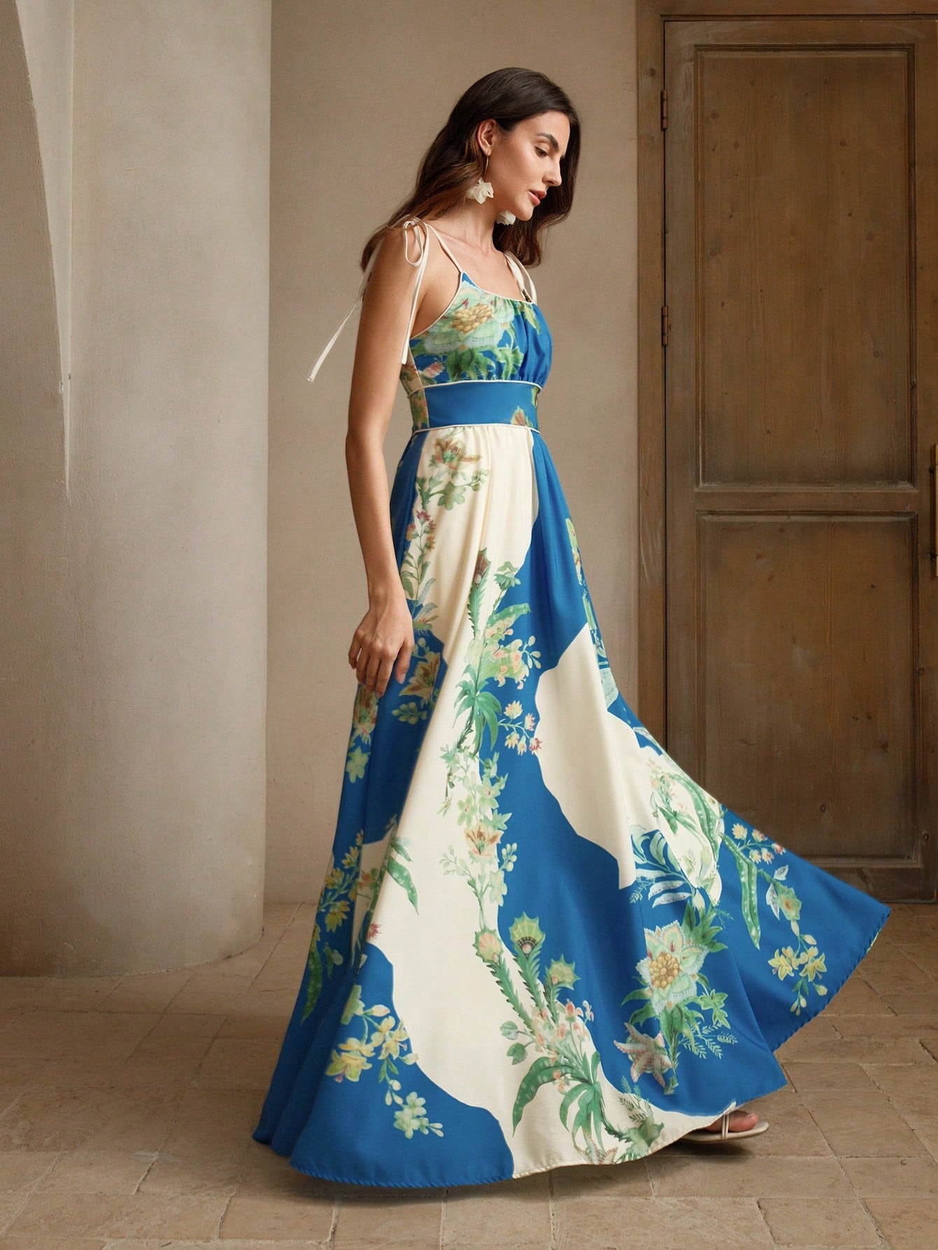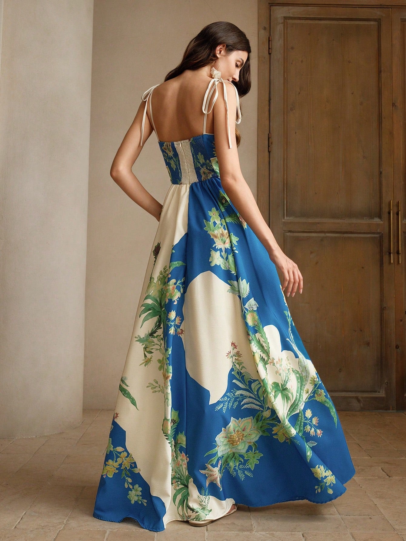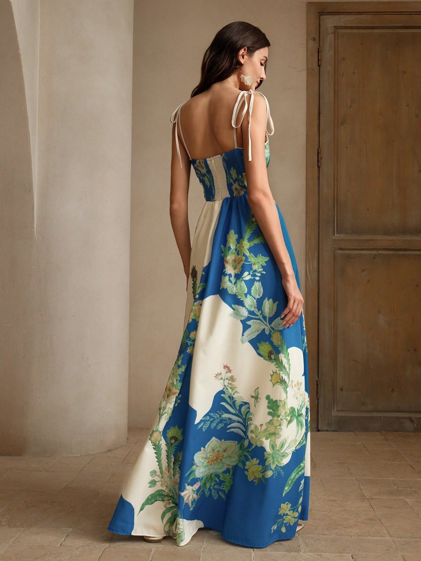 فستان أنيستا النسائي بدون حمالات بطبعة زهور، مناسب لقضاء العطلات الرومانسية مع خصر مشدود