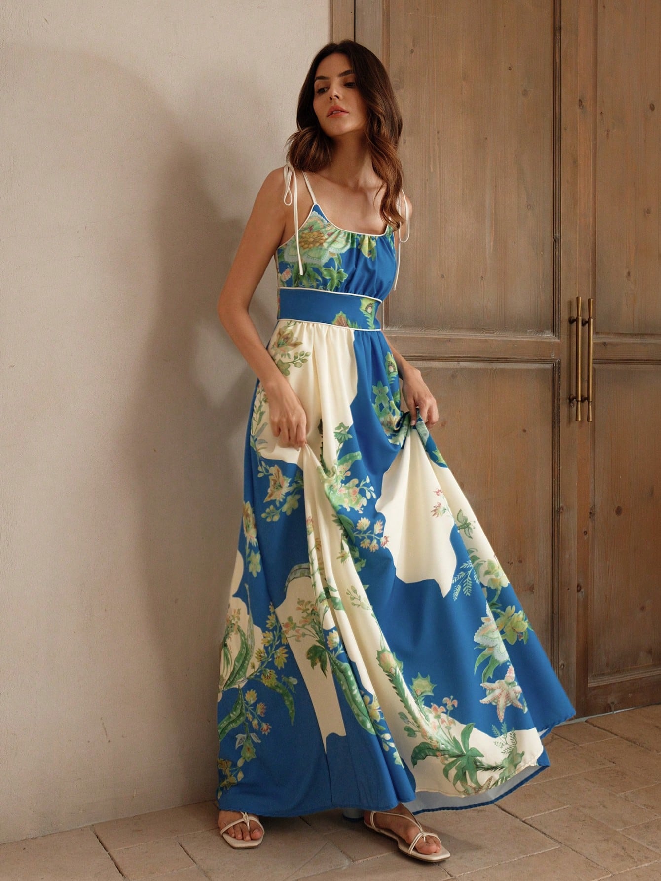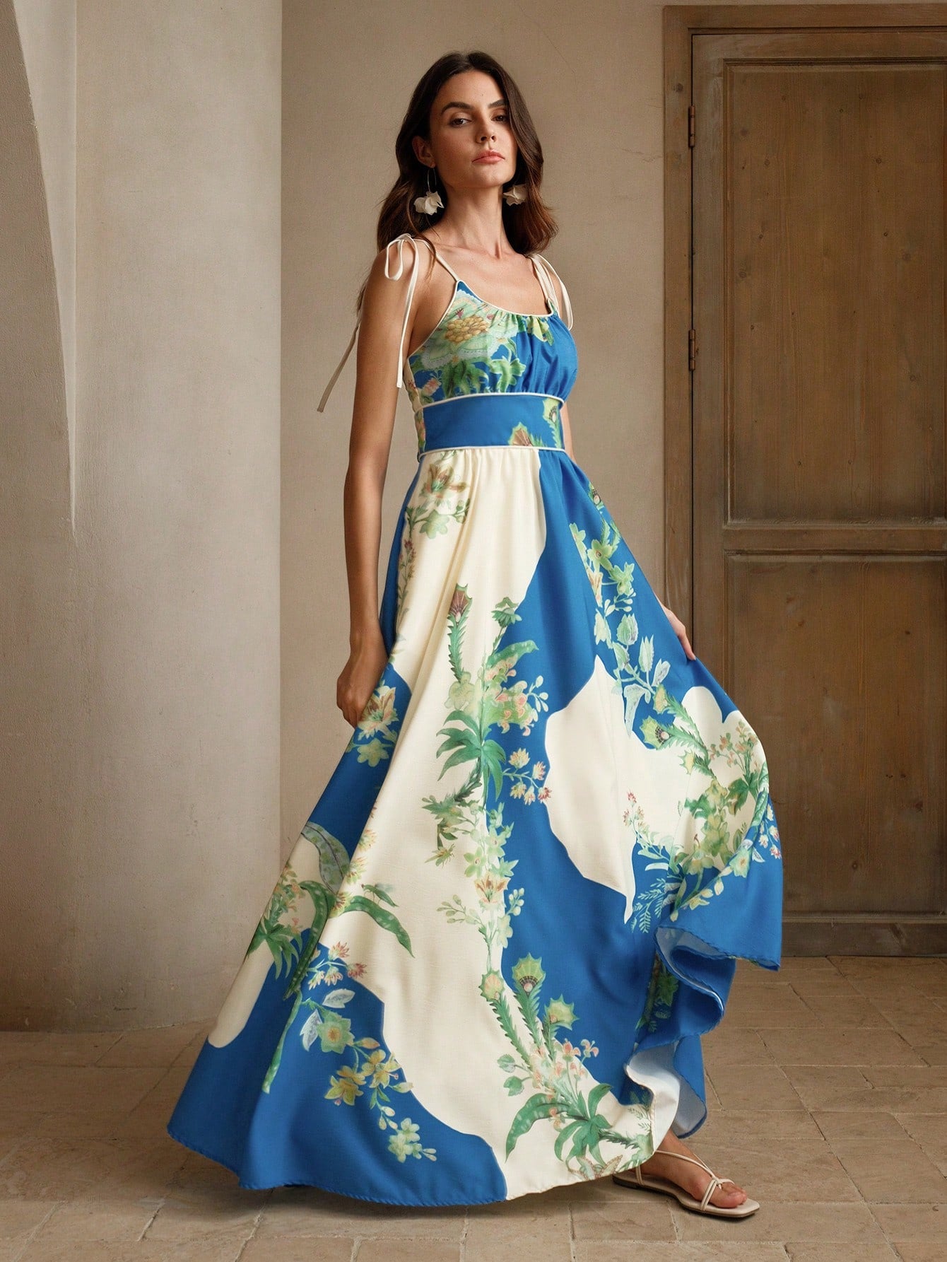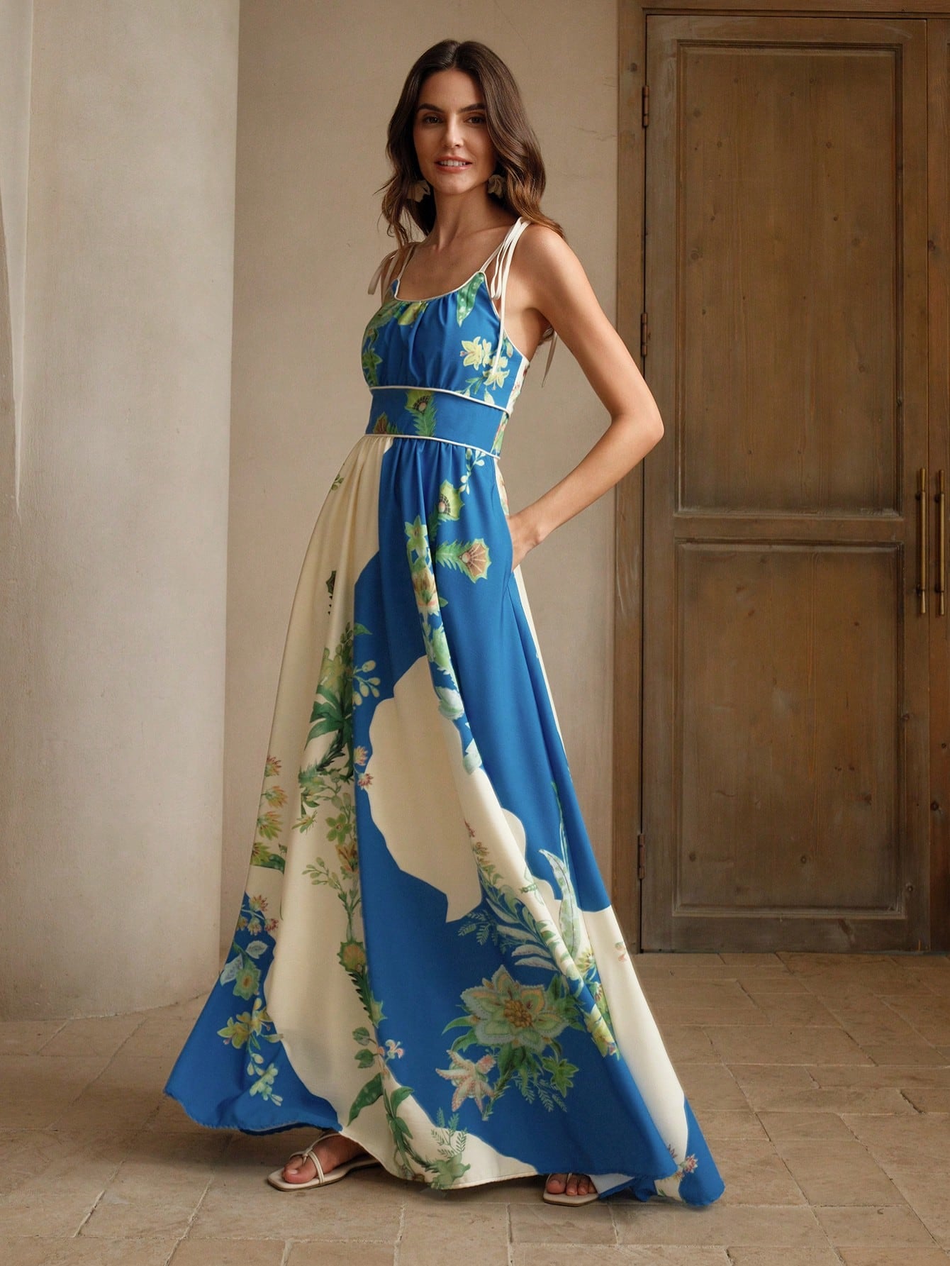 فستان أنيستا النسائي بدون حمالات بطبعة زهور، مناسب لقضاء العطلات الرومانسية مع خصر مشدود