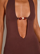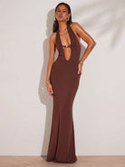 BAE Spring And Summer Brown Designer Beaded Halter Neck Suspender Maxi Dress For Women, Summer Tight