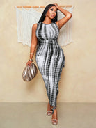 BamGleam Women's Tie-Dye Round Neck Sleeveless Elastic Waist Sexy Asymmetric Hem Tassel Summer Dress
