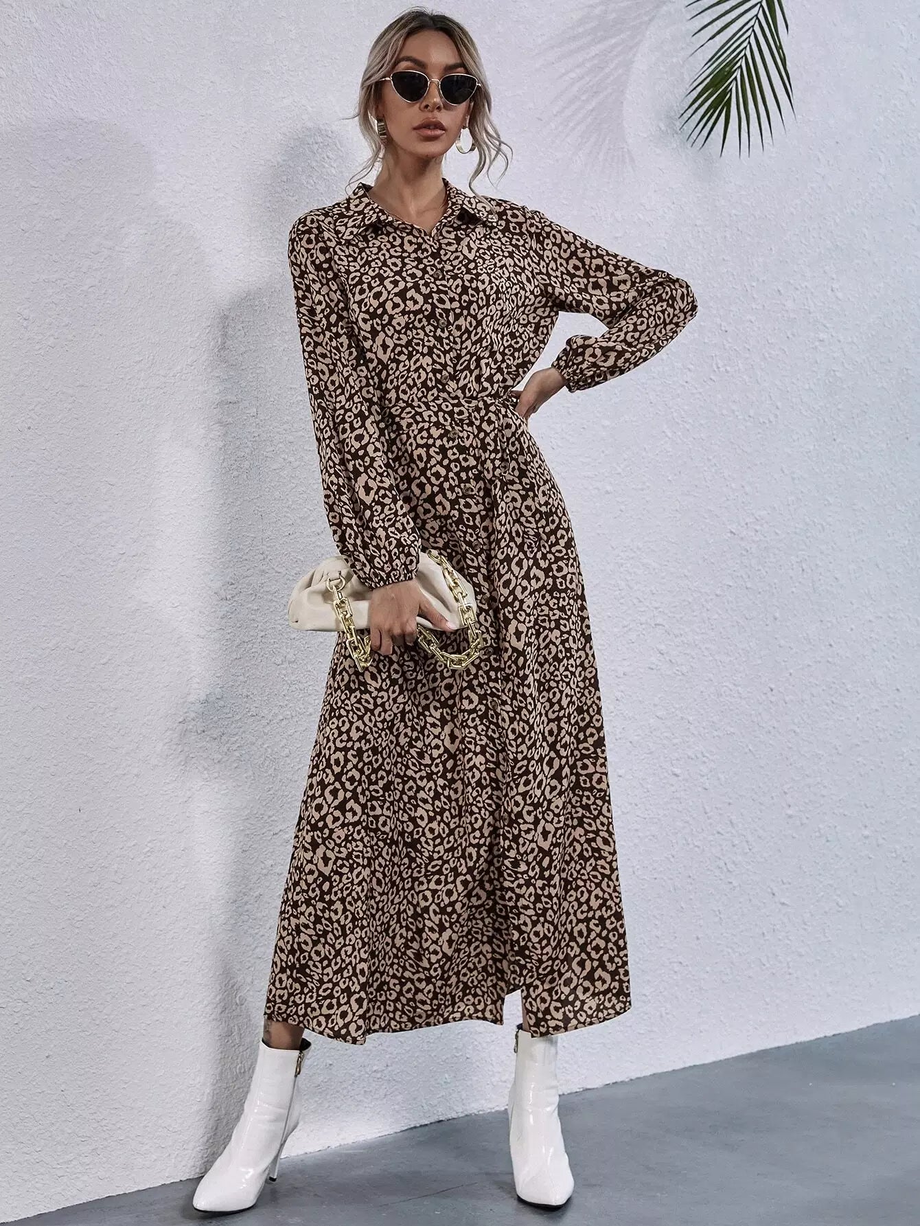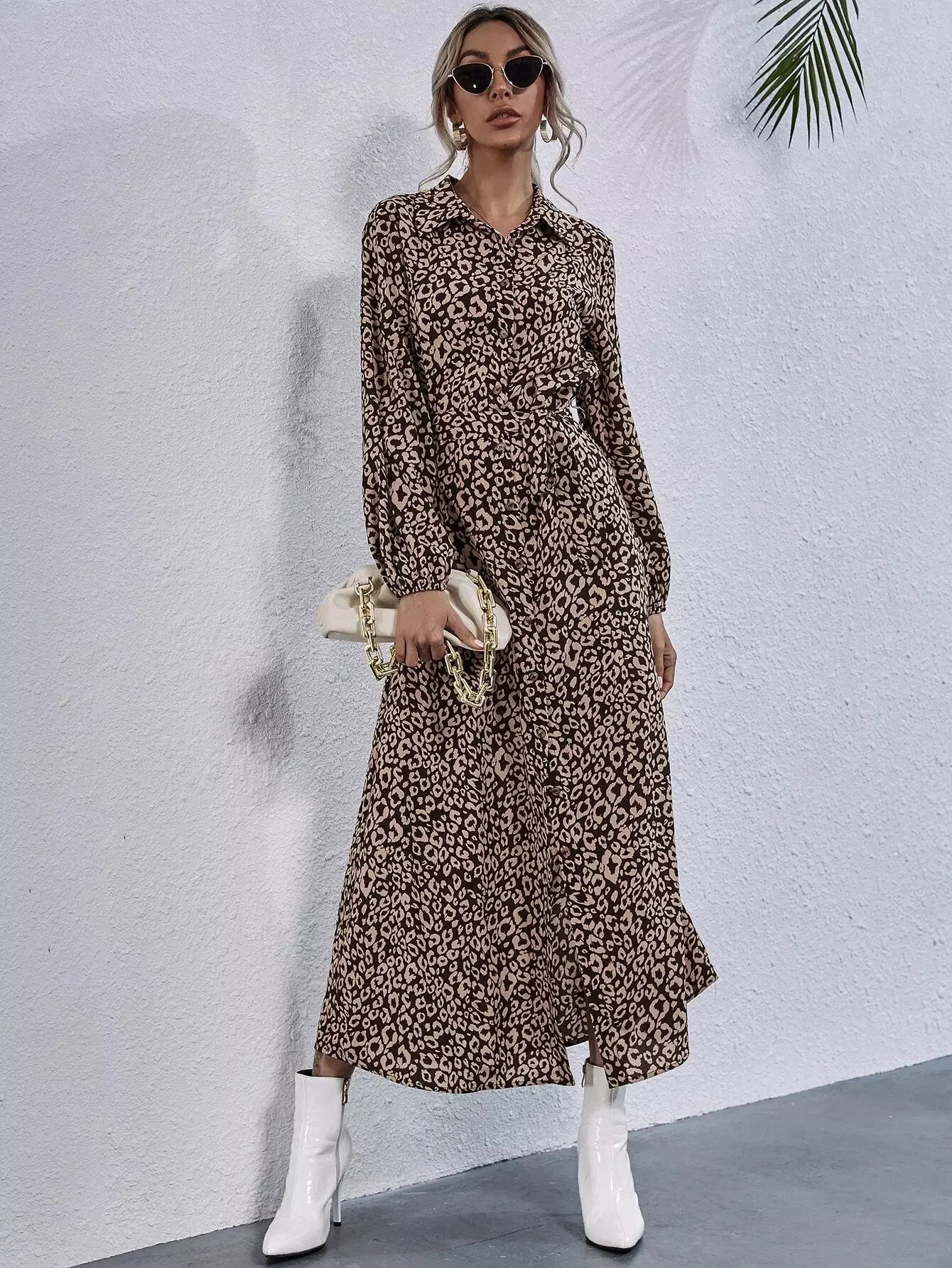 فستان بأزرار أمامية بأكمام فانوسية بأزرار منفتحة من الفخذين