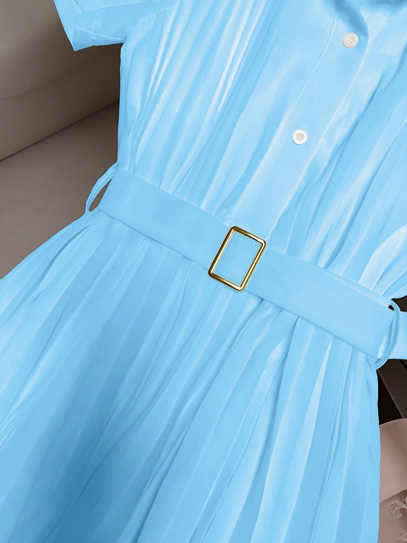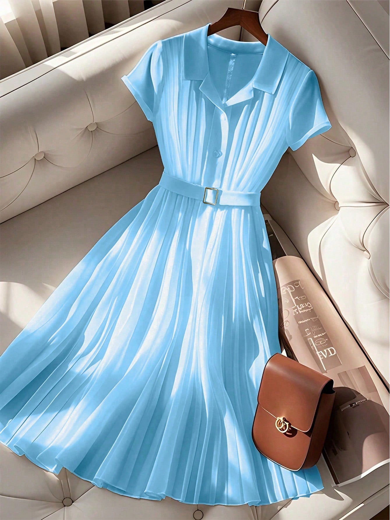 Clasi Fashionable New French Elegant Chiffon Pleated Short Sleeve Single-Breasted Summer Dress