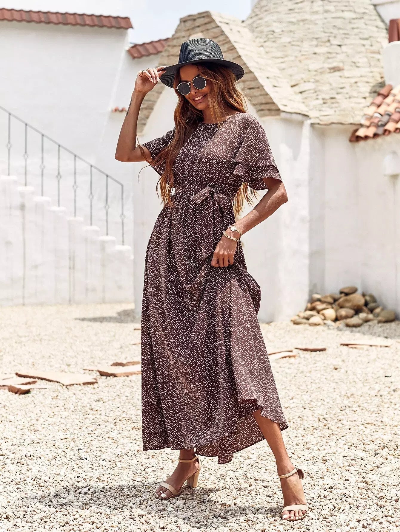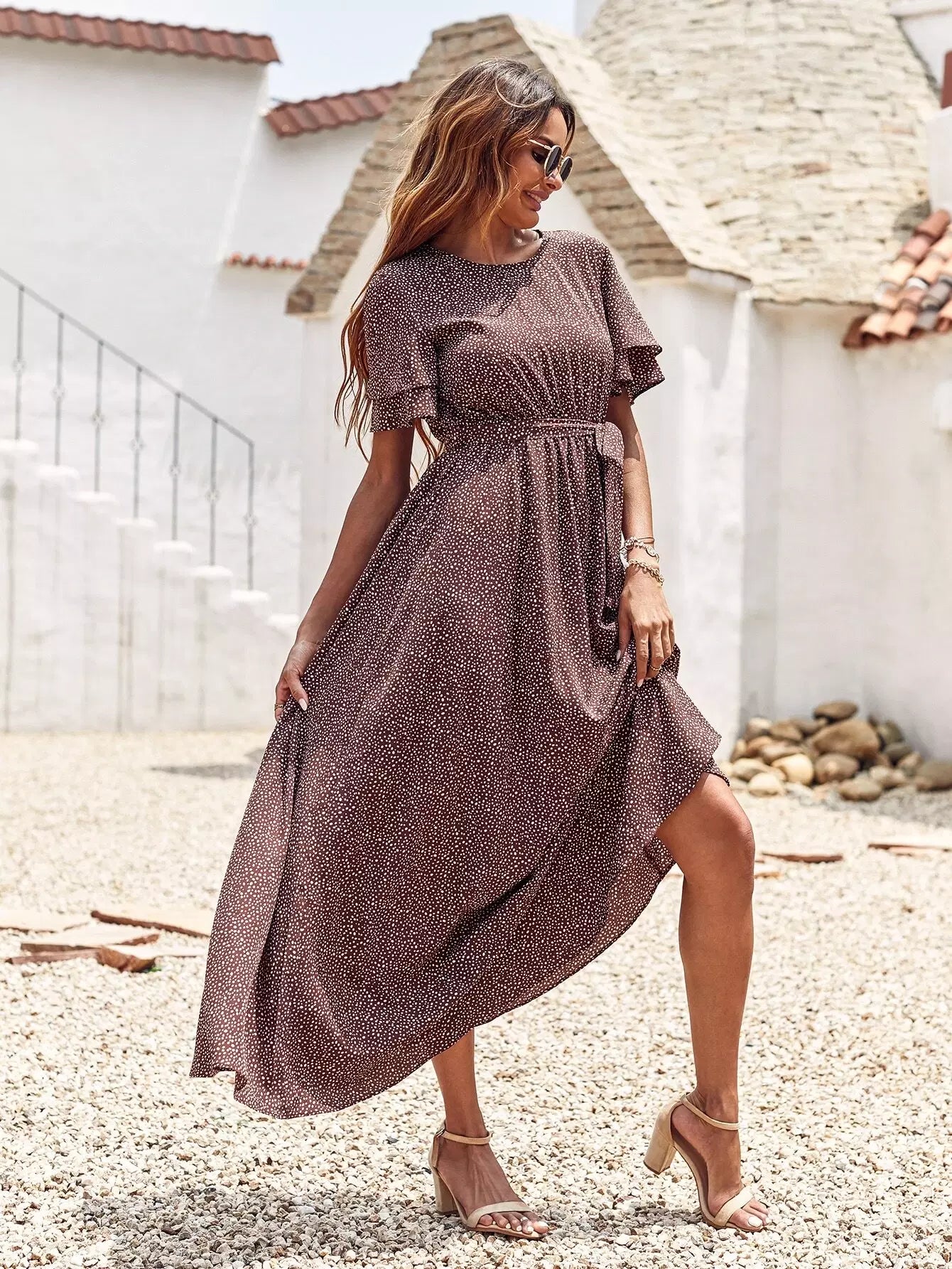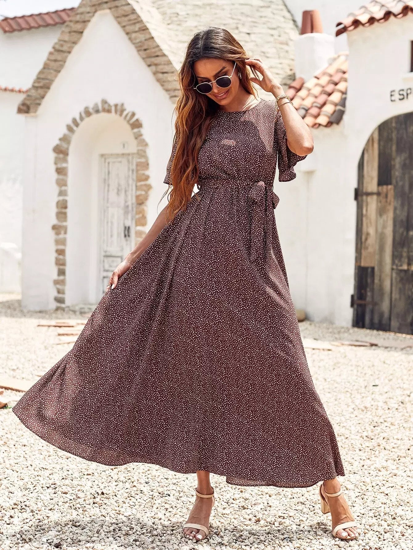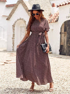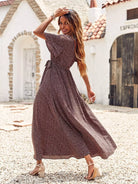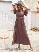 فستان ماكسي بطبعات قصاصات بدون حزام