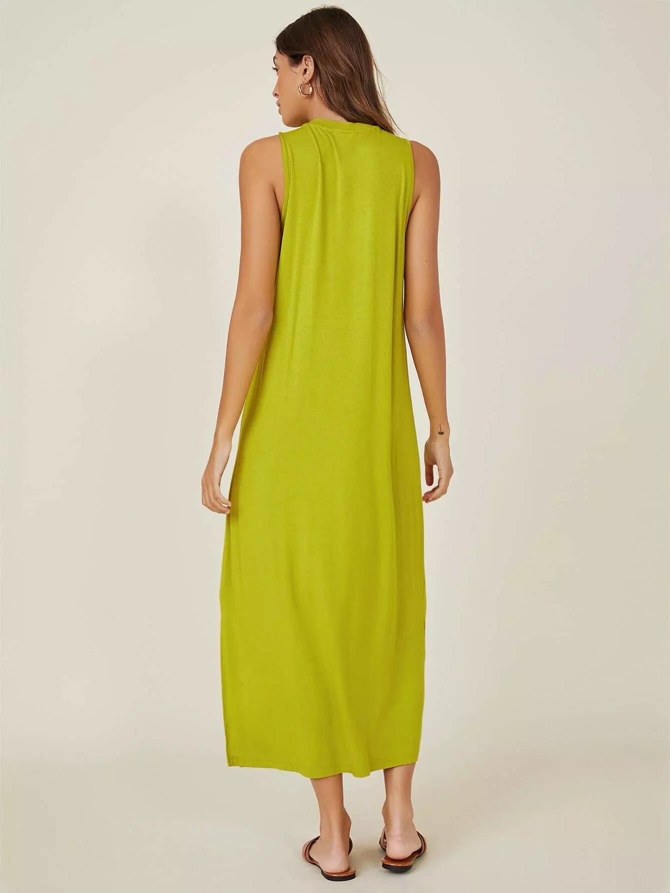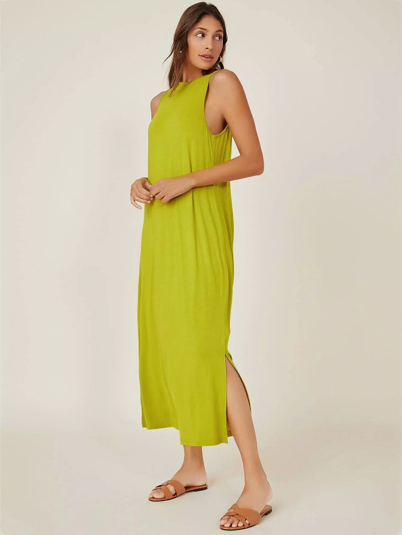 النساء - فستان سادة من القطن بحاشية مقسمة
