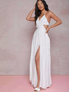 فستان ماكسي بفتحة رقبة بفتحة رقبة ذاتي بفتحة رقبة ذاتي بفتحة رقبة على الفخذين