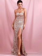 فستان دمشقي مشقوق الفخذين براق أنبوبي للحفلات الراقصة