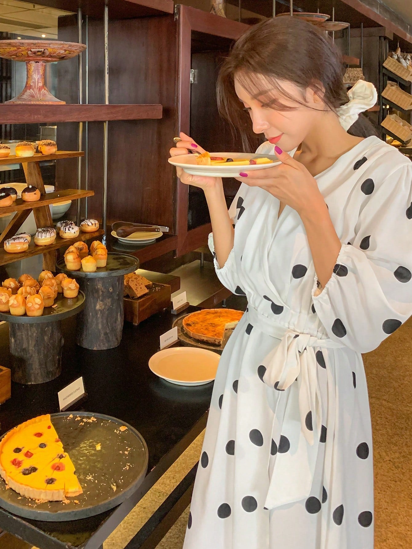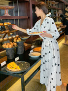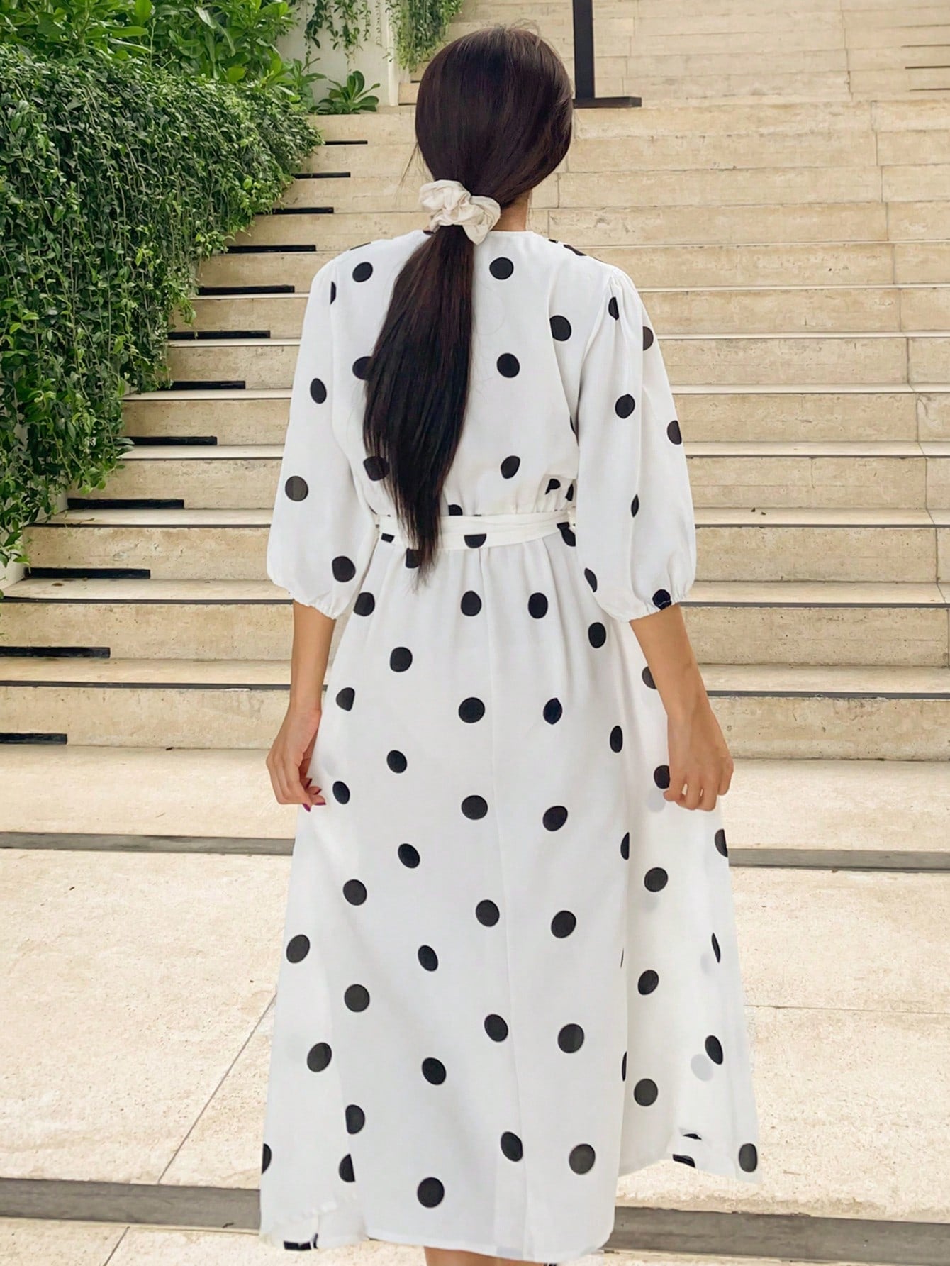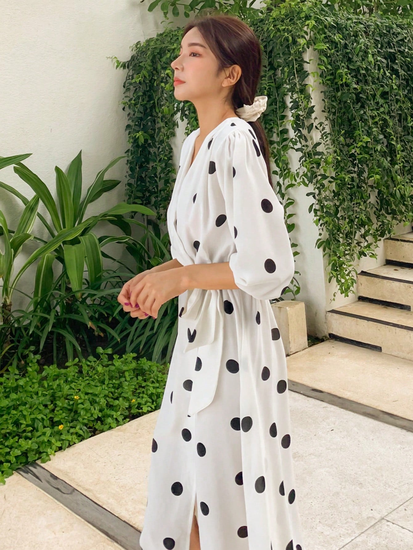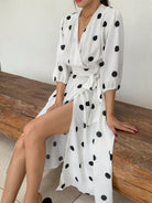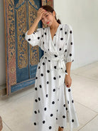 فستان DAZY الملفوف بطبعة نقاط البولكا وفتحة رقبة على شكل حرف V مع فستان صيفي بأكمام فانوس