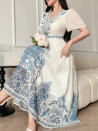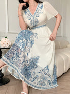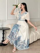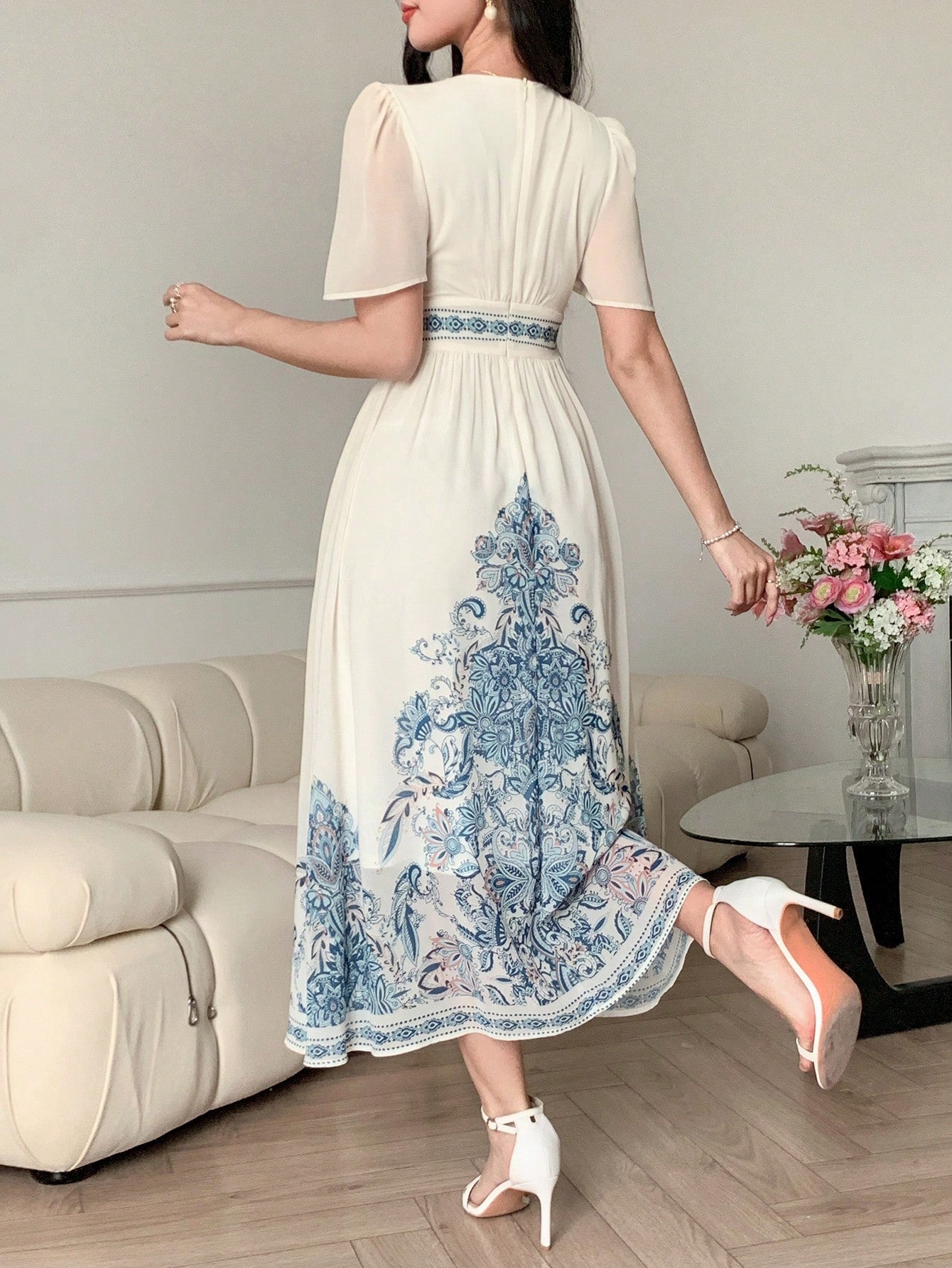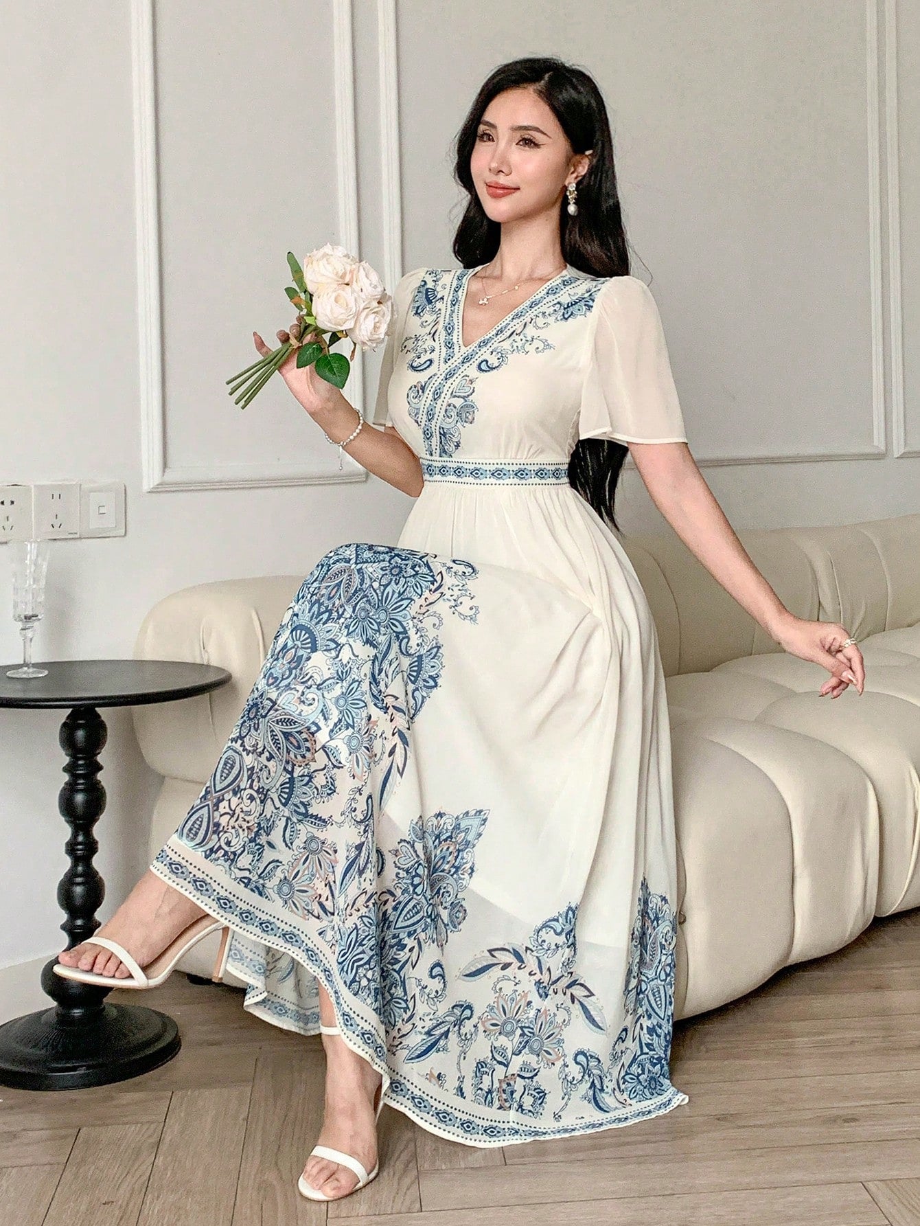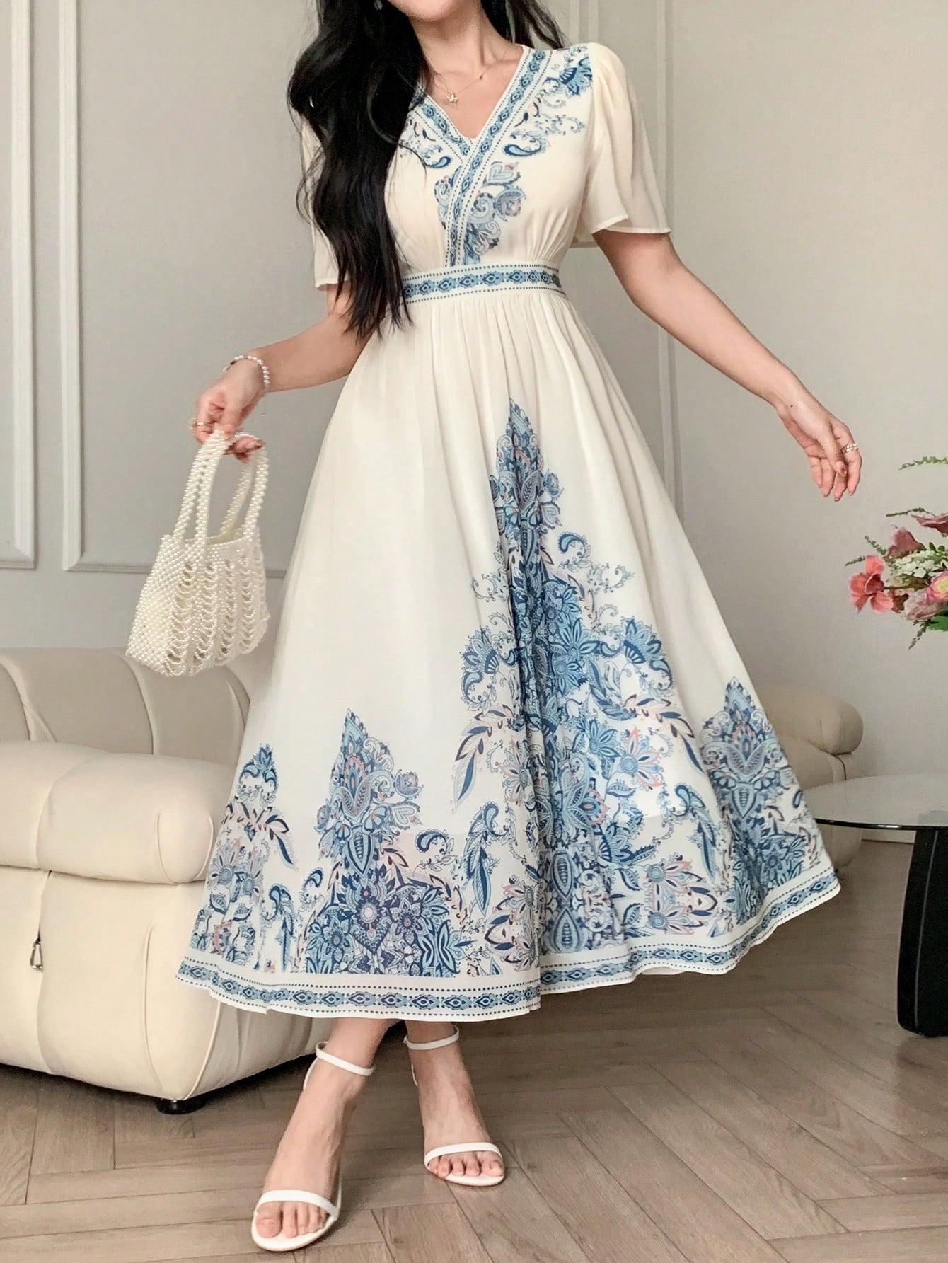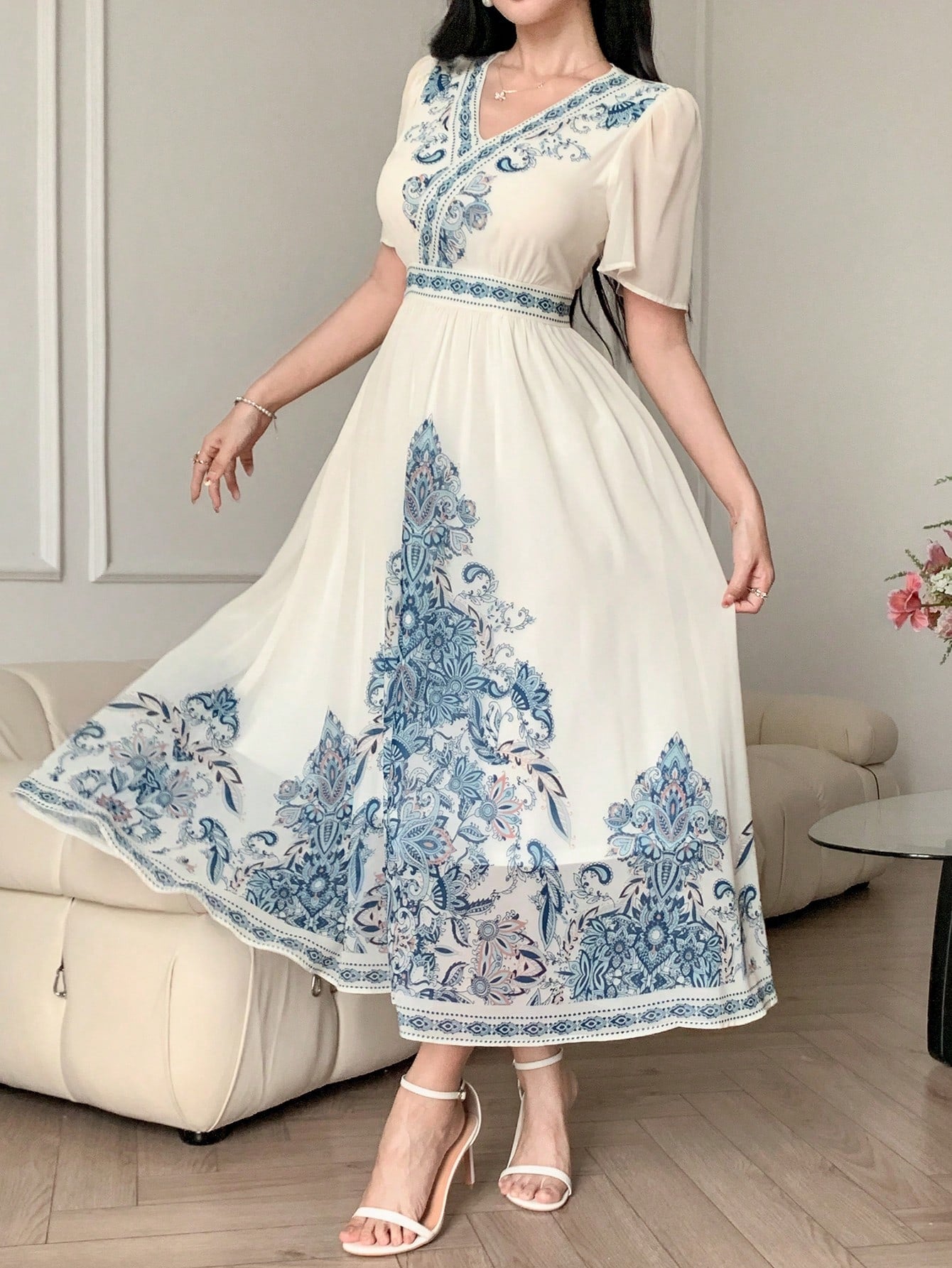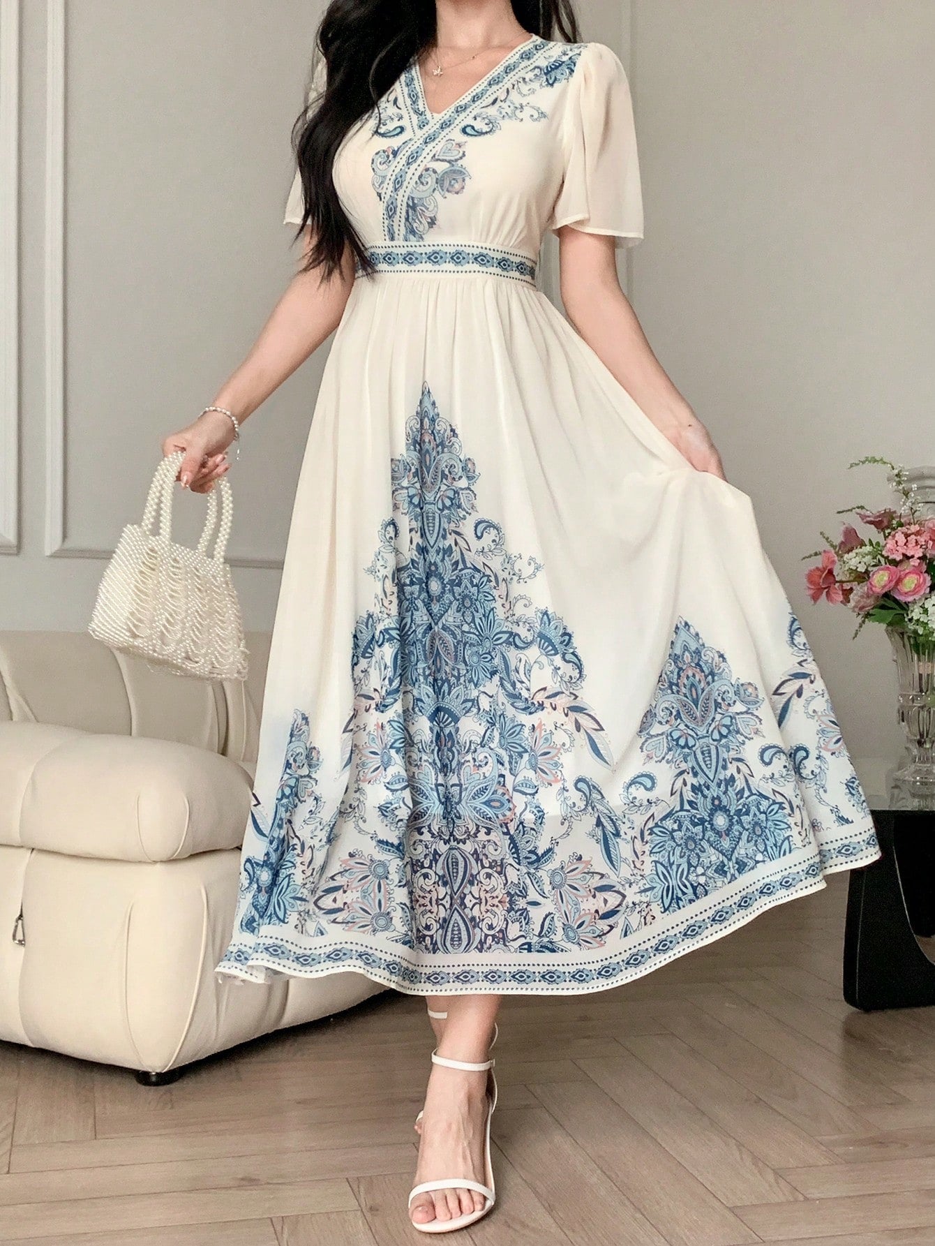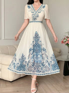 فستان DAZY النسائي متوسط الطول برباط على الخصر وأكمام مكشكشة وفتحة رقبة على شكل حرف V، ملابس العودة إلى المدرسة