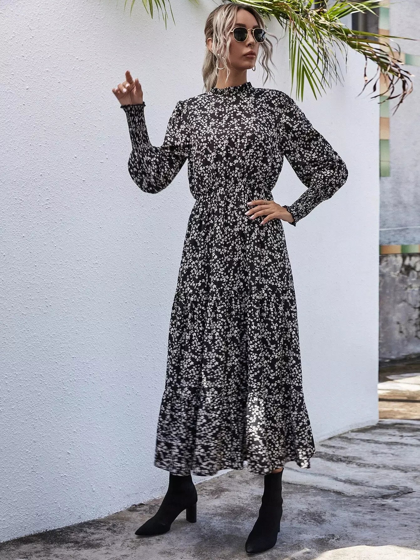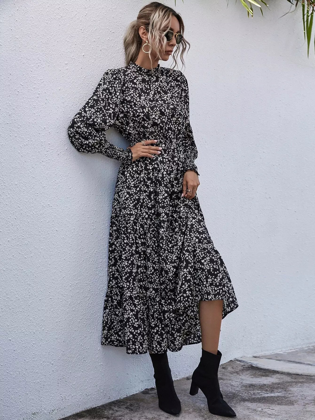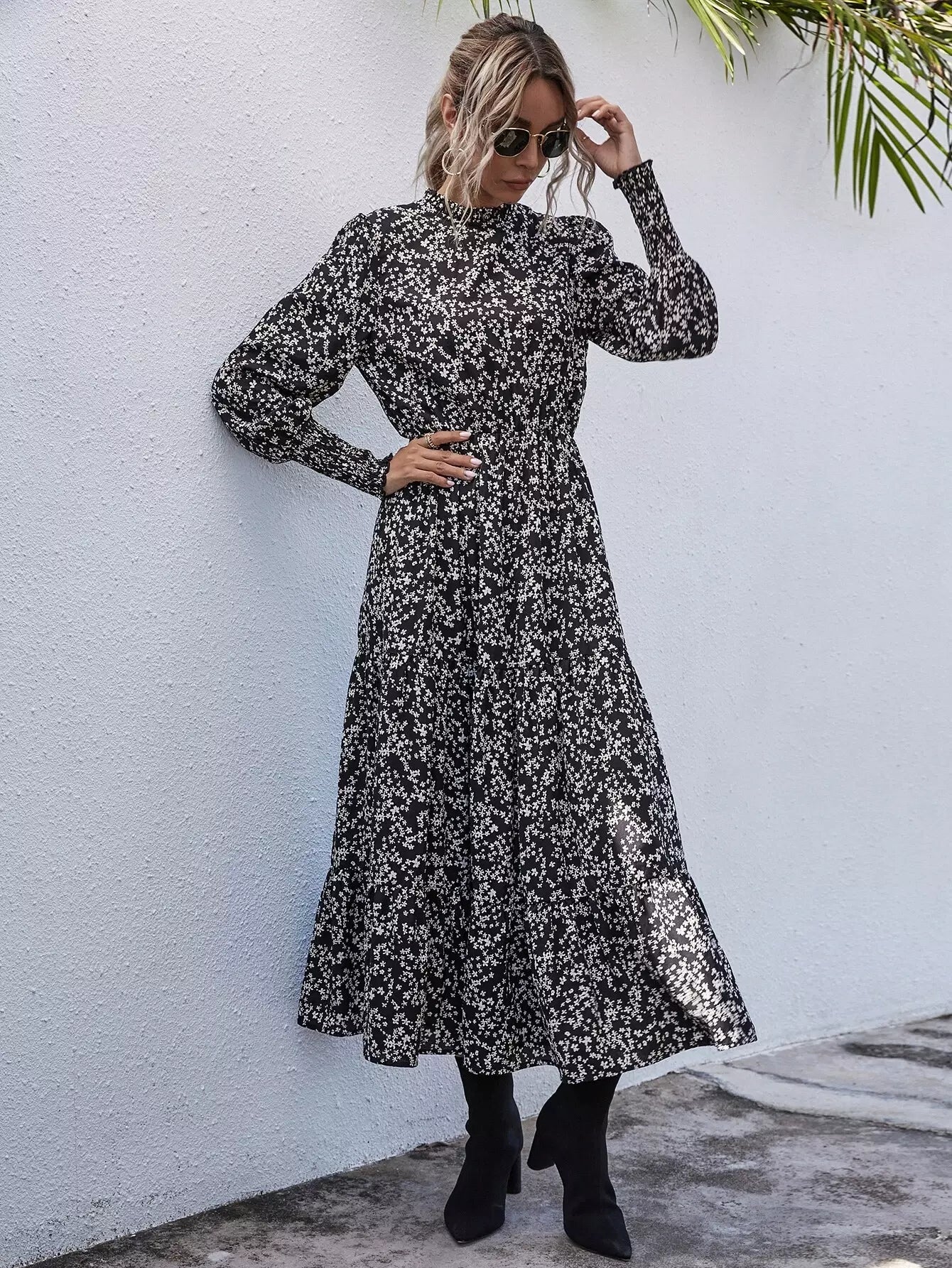 فستان برقبة كشكش بفتحة رقبة كشكش ديتسي مزين بالزهور