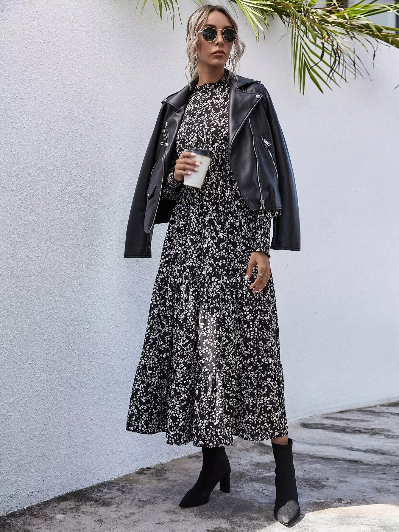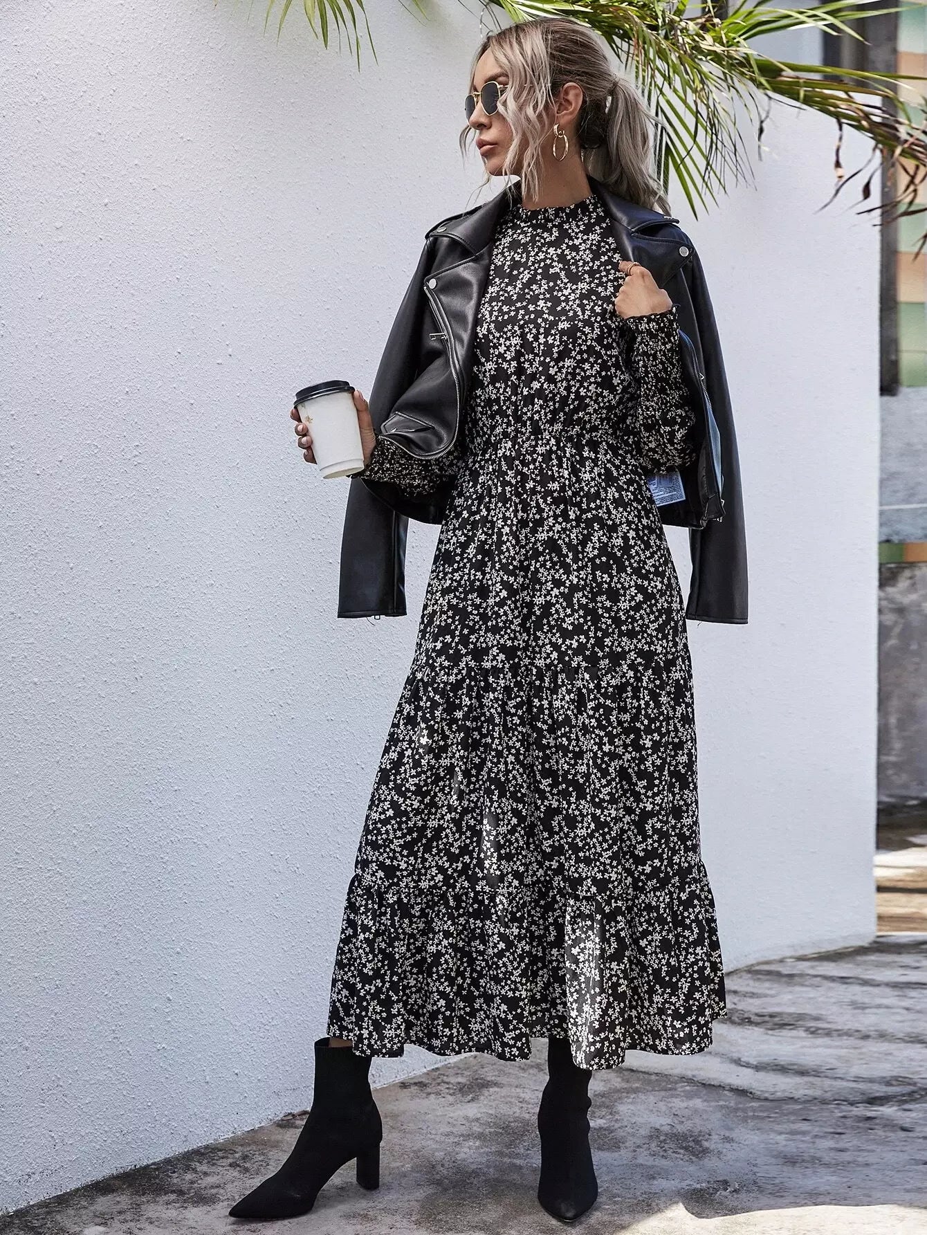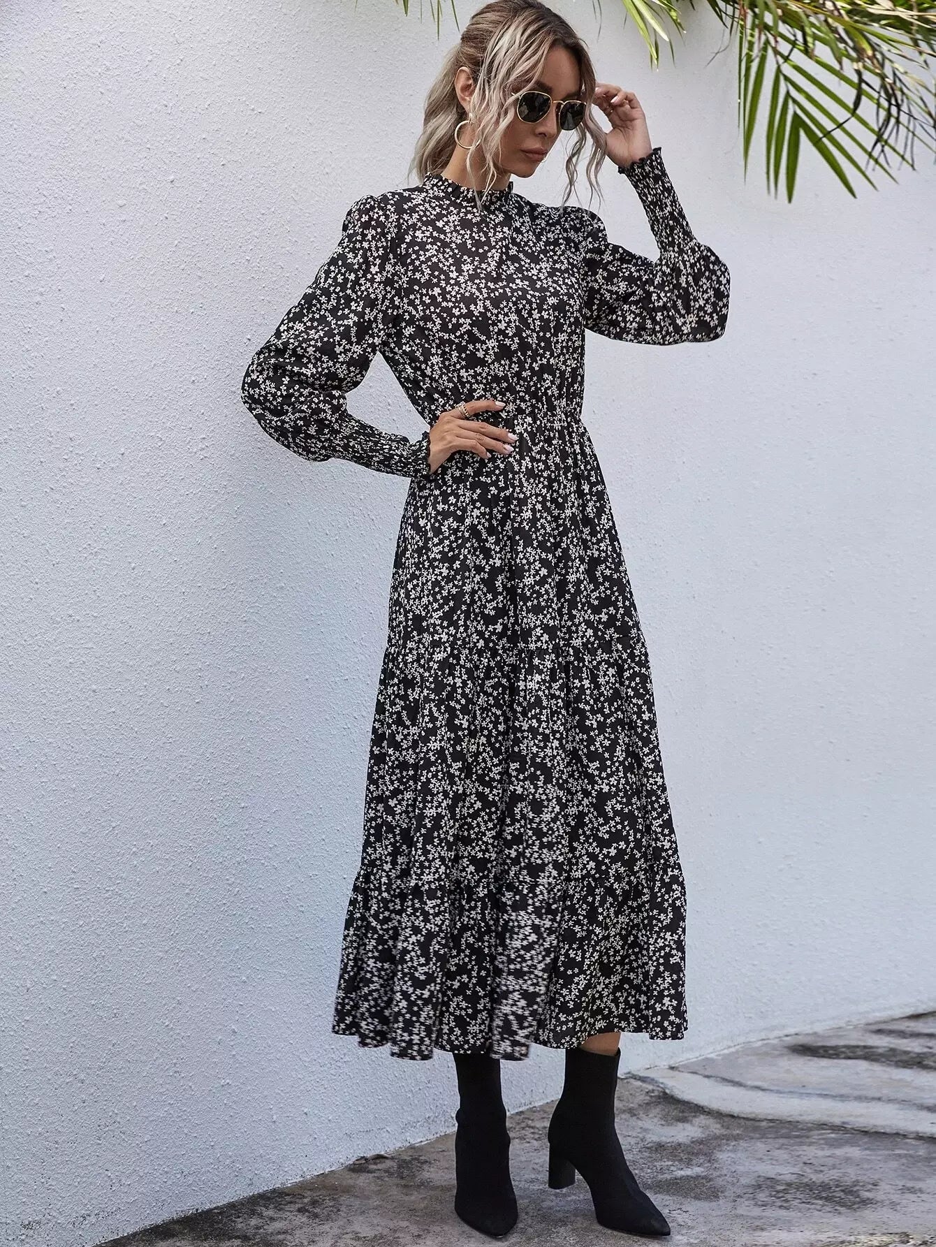 فستان برقبة كشكش بفتحة رقبة كشكش ديتسي مزين بالزهور