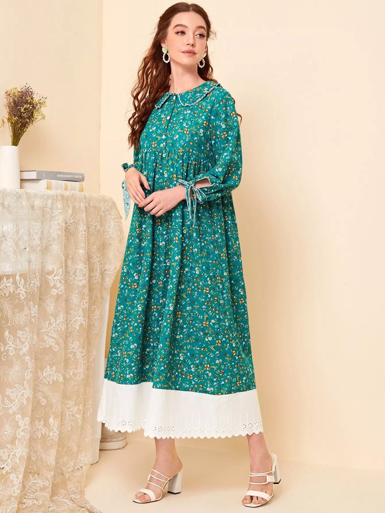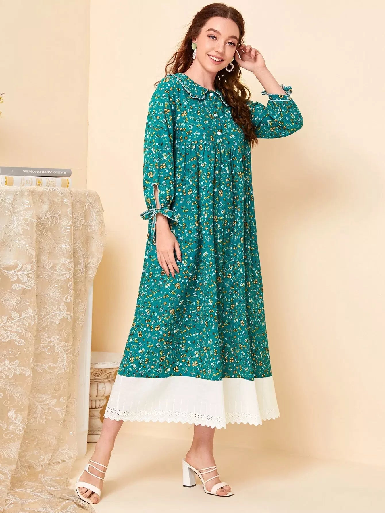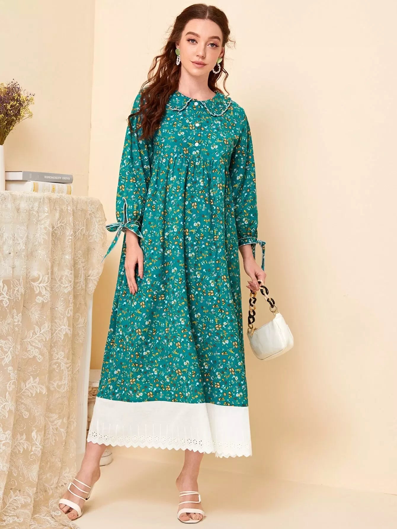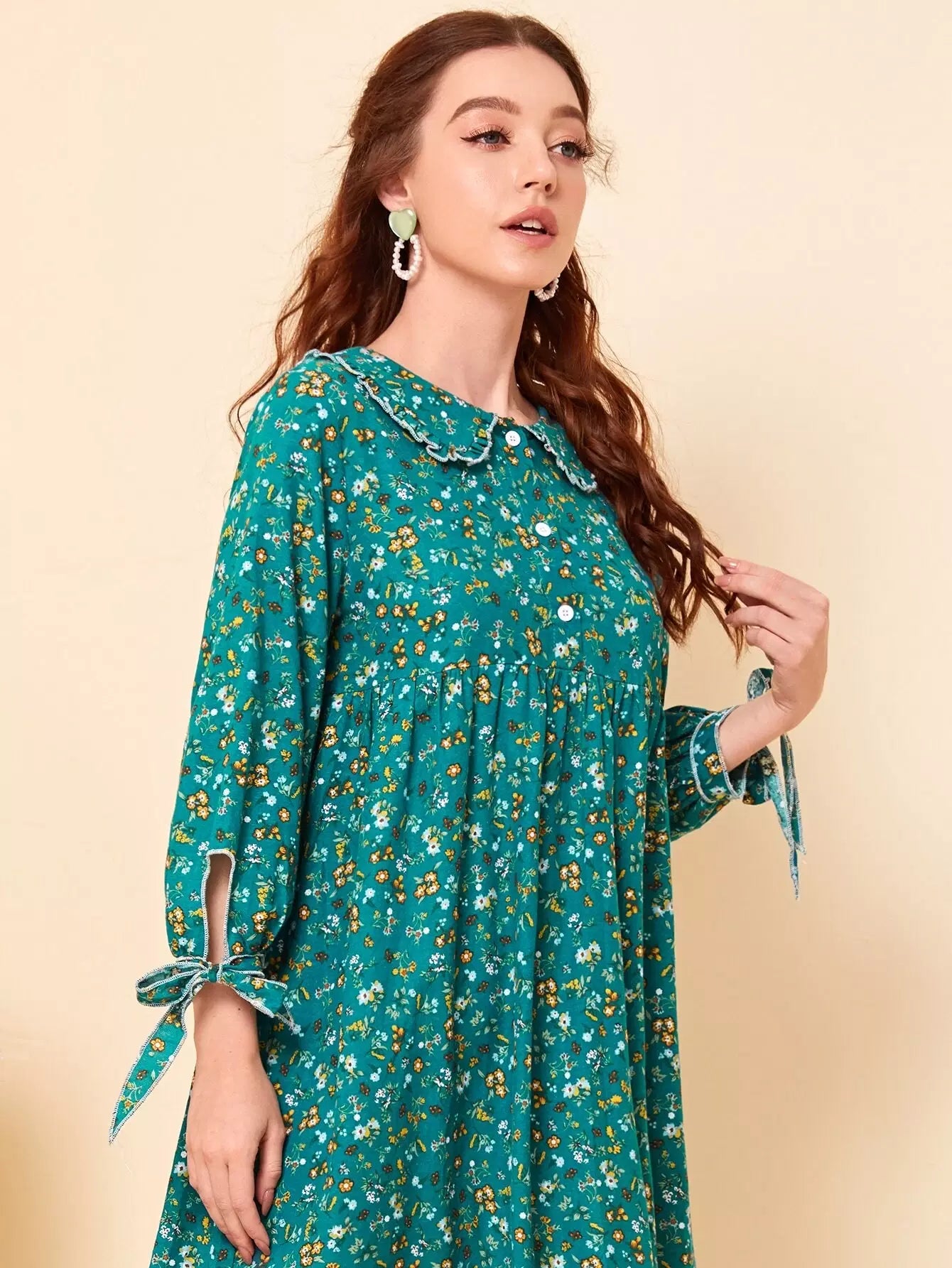 فستان ديتسي مزين بعقدة زهرية ذات أكمام من الأكمام