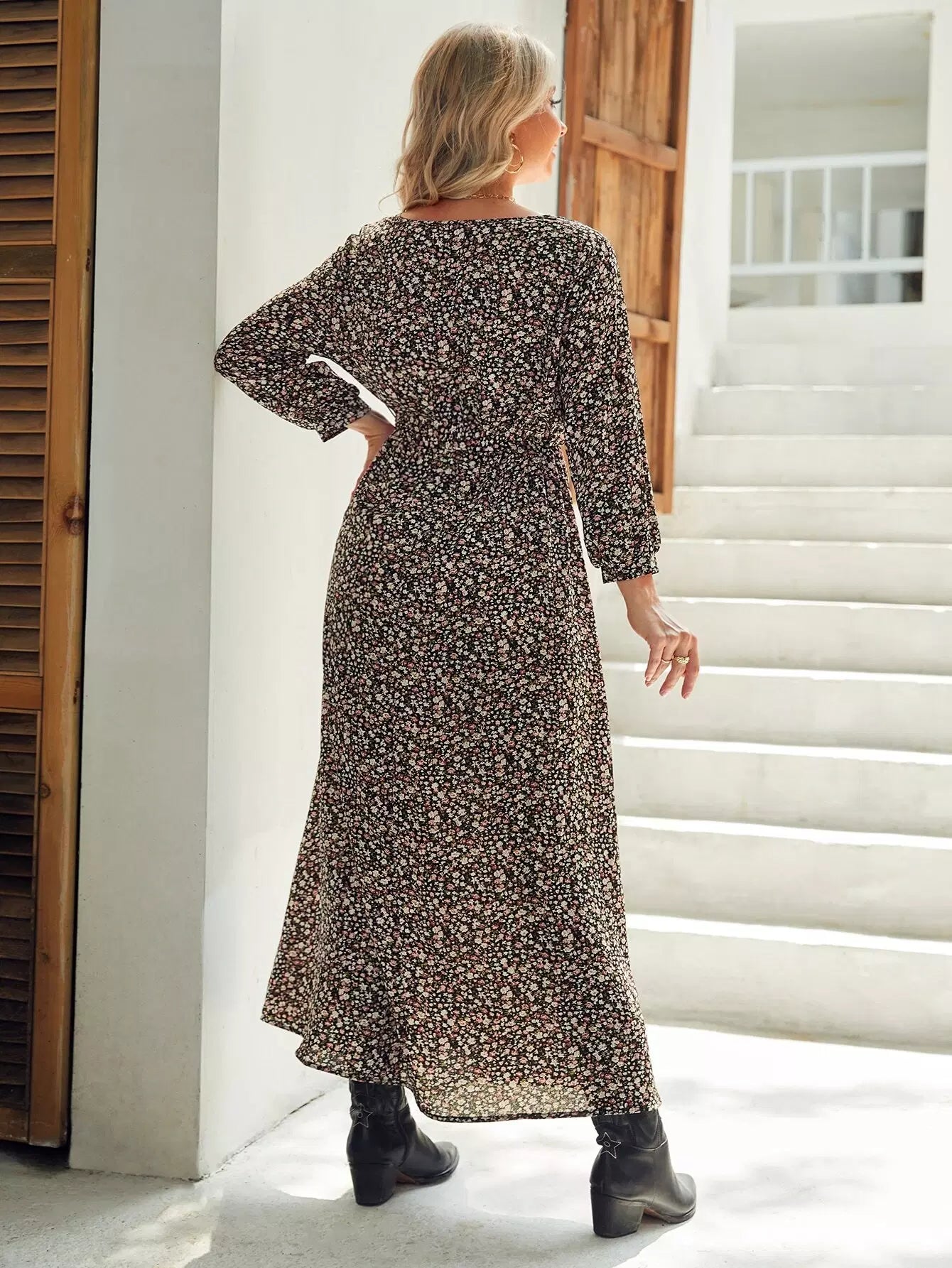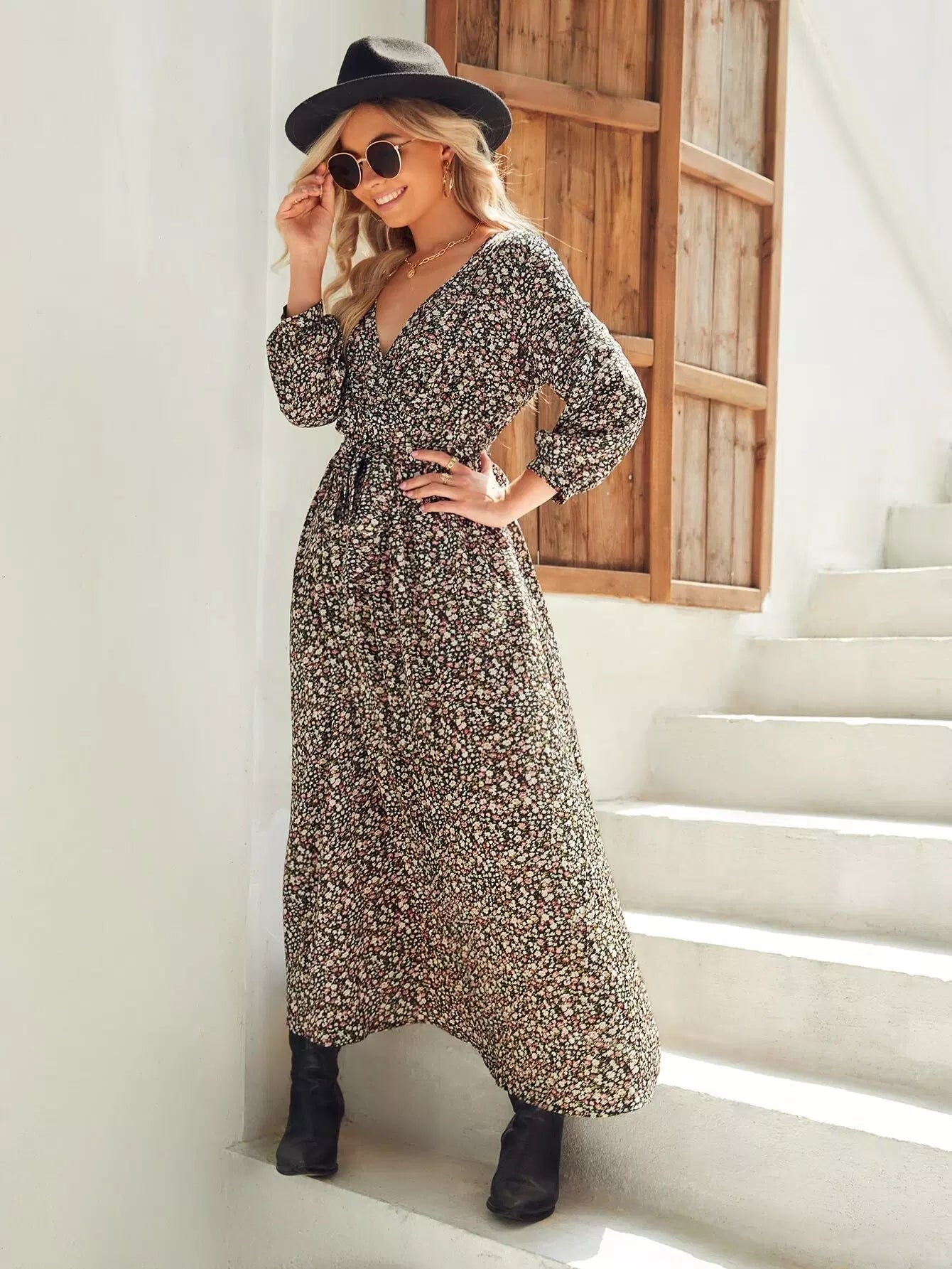 فستان بياقة متداخلة وزهور من Ditsy بدون حزام
