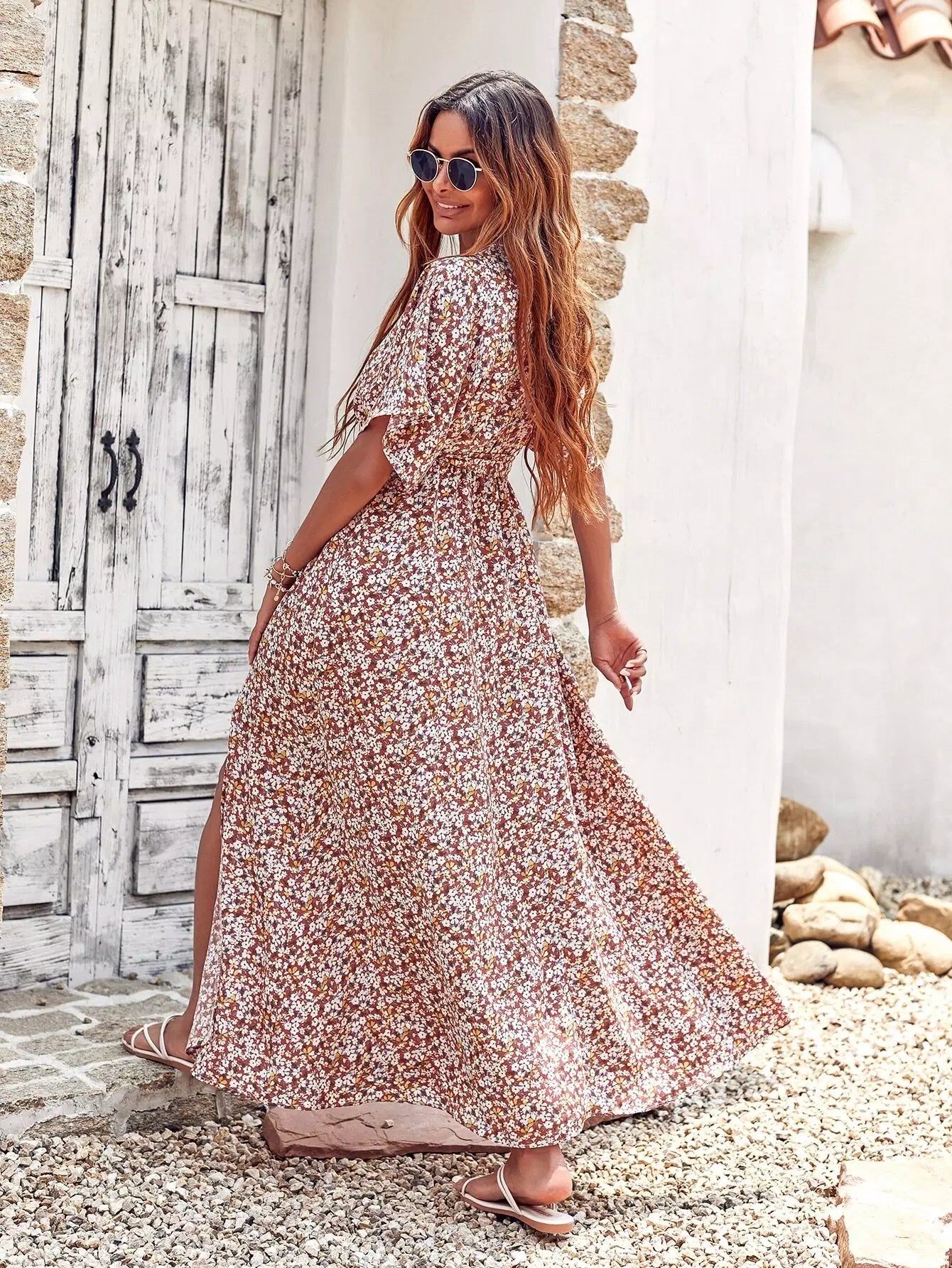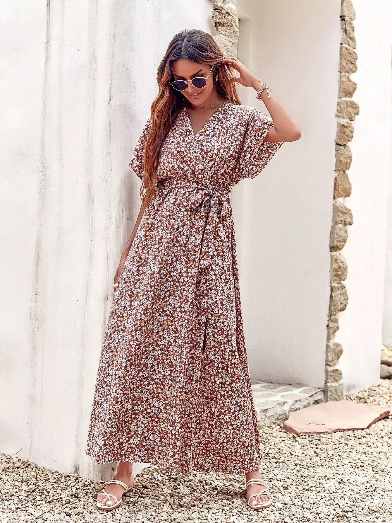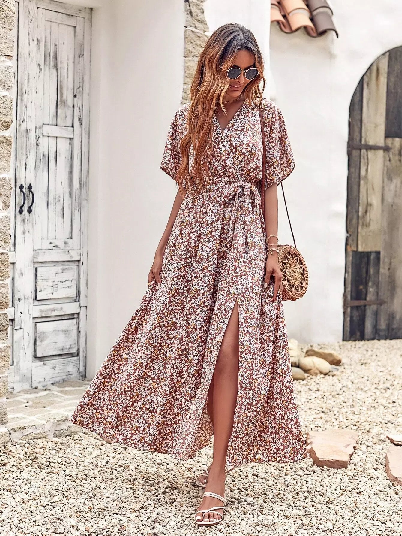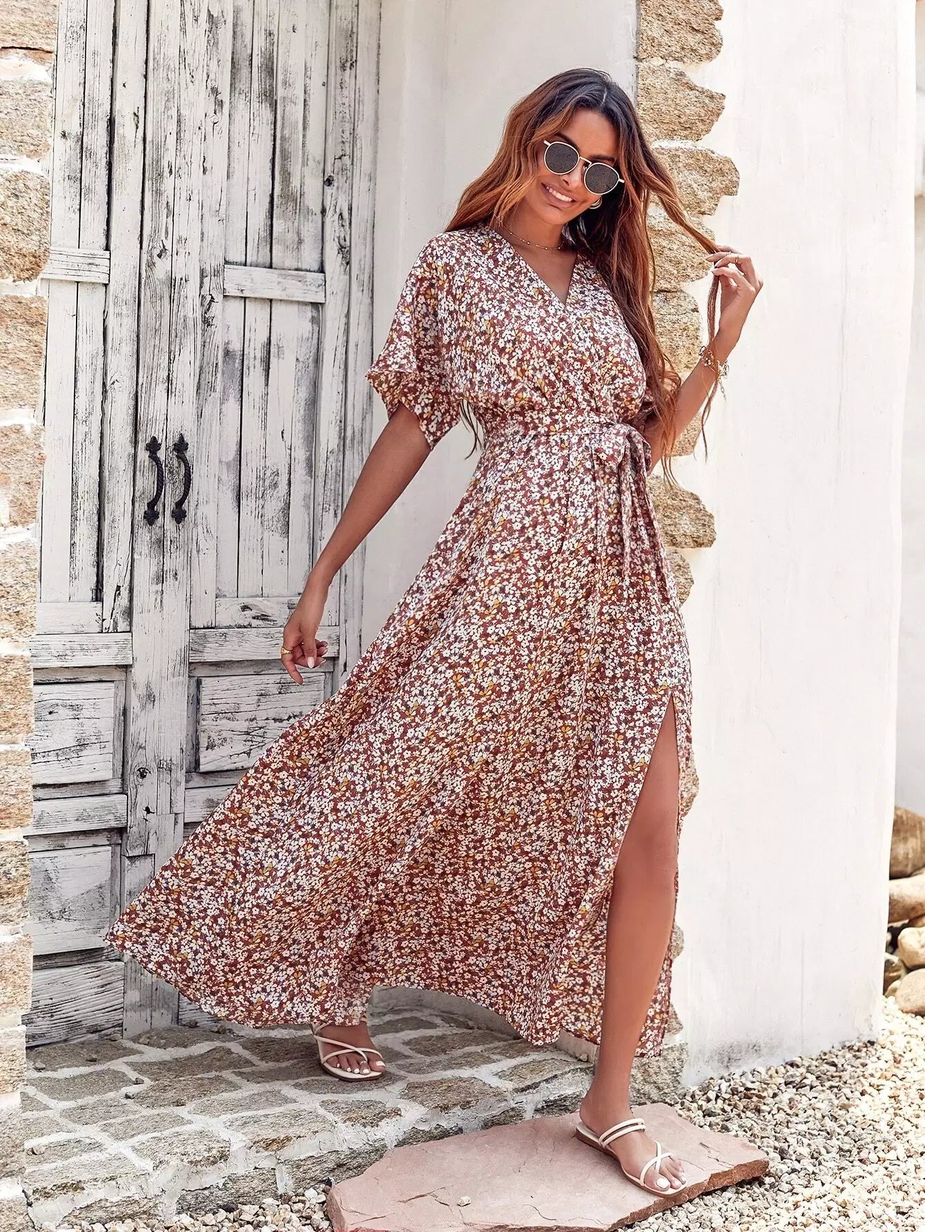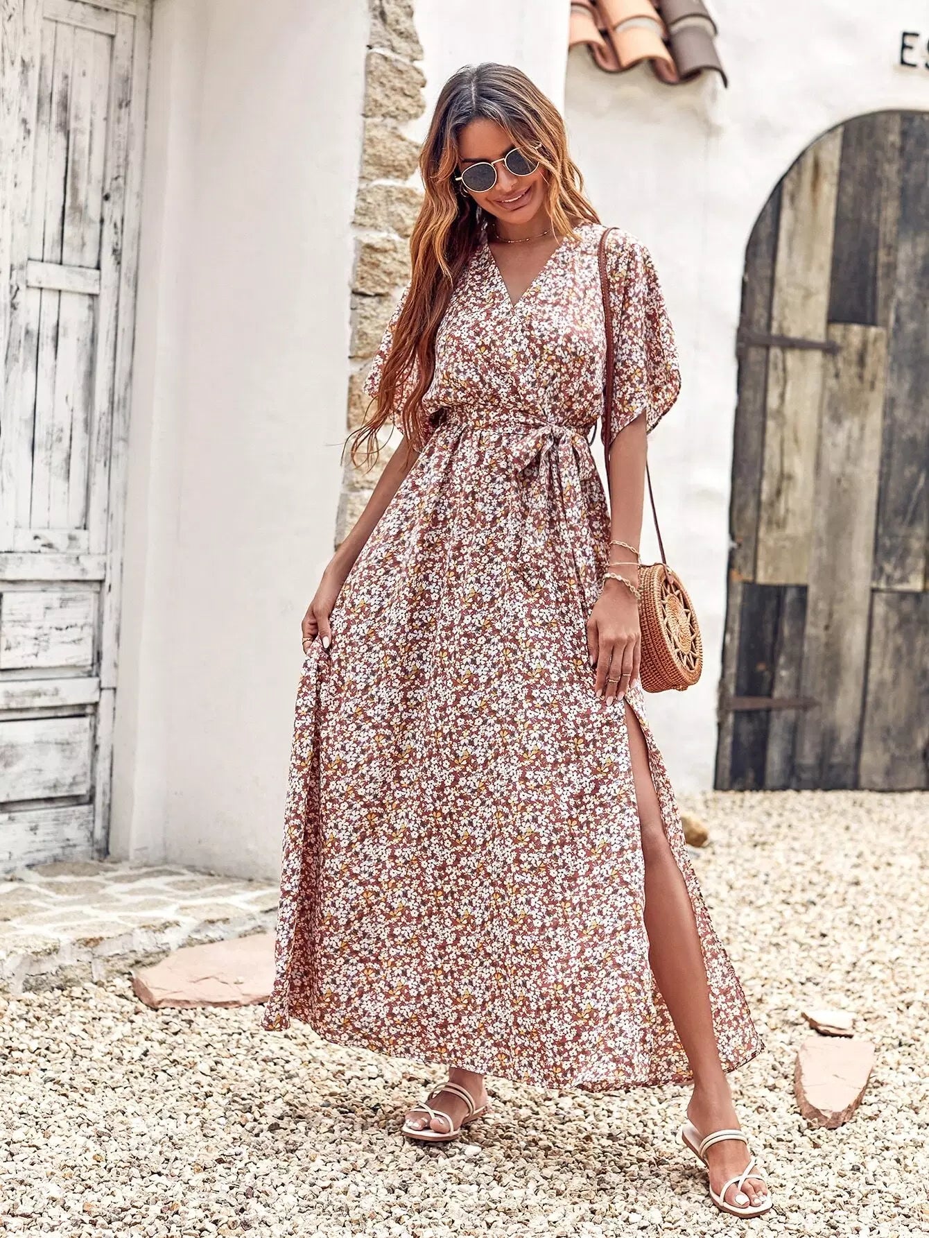 فستان Ditsy بنقشة الزهور وفتحة الفخذ بدون حزام