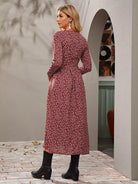 للنساء - زر رقبة على شكل حرف V مزين بالزهور من خلال الفستان بدون حزام