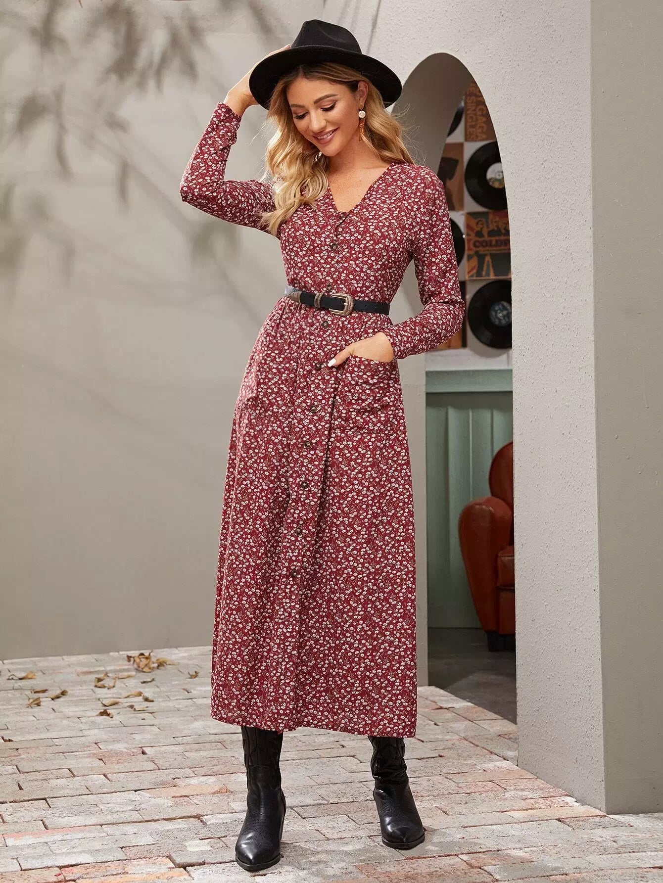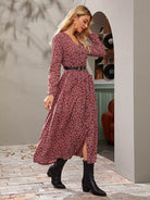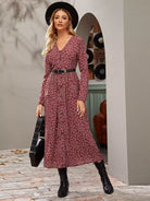فستان بياقة على شكل V بياقة على شكل زهور على شكل V بدون حزام