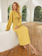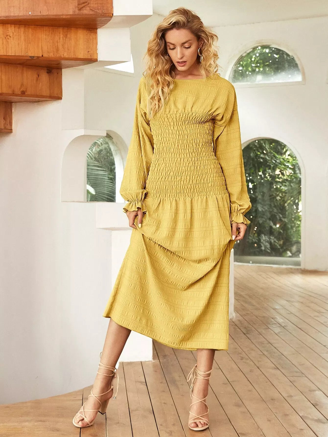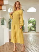 فستان ذو أكتاف منسدلة بأكمام كشكش كشكش منسدلة على الأكتاف