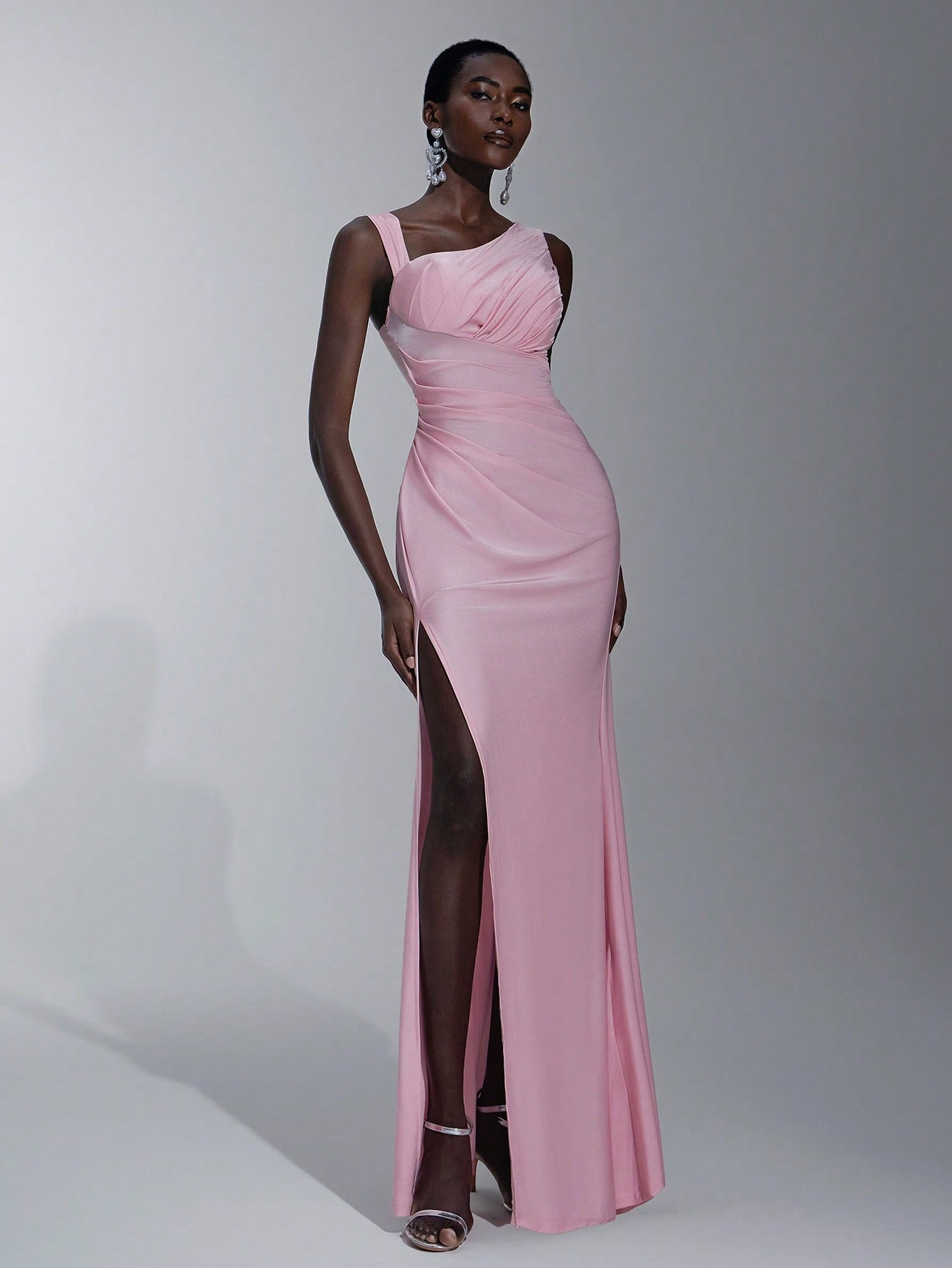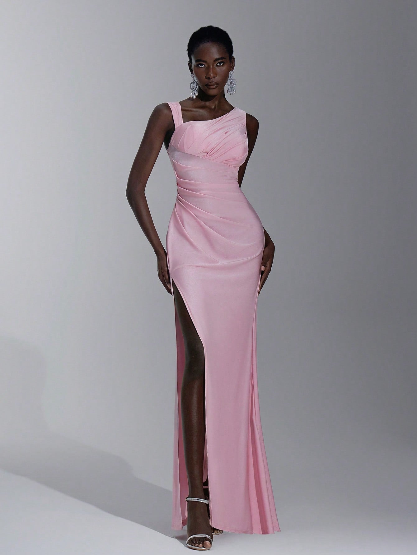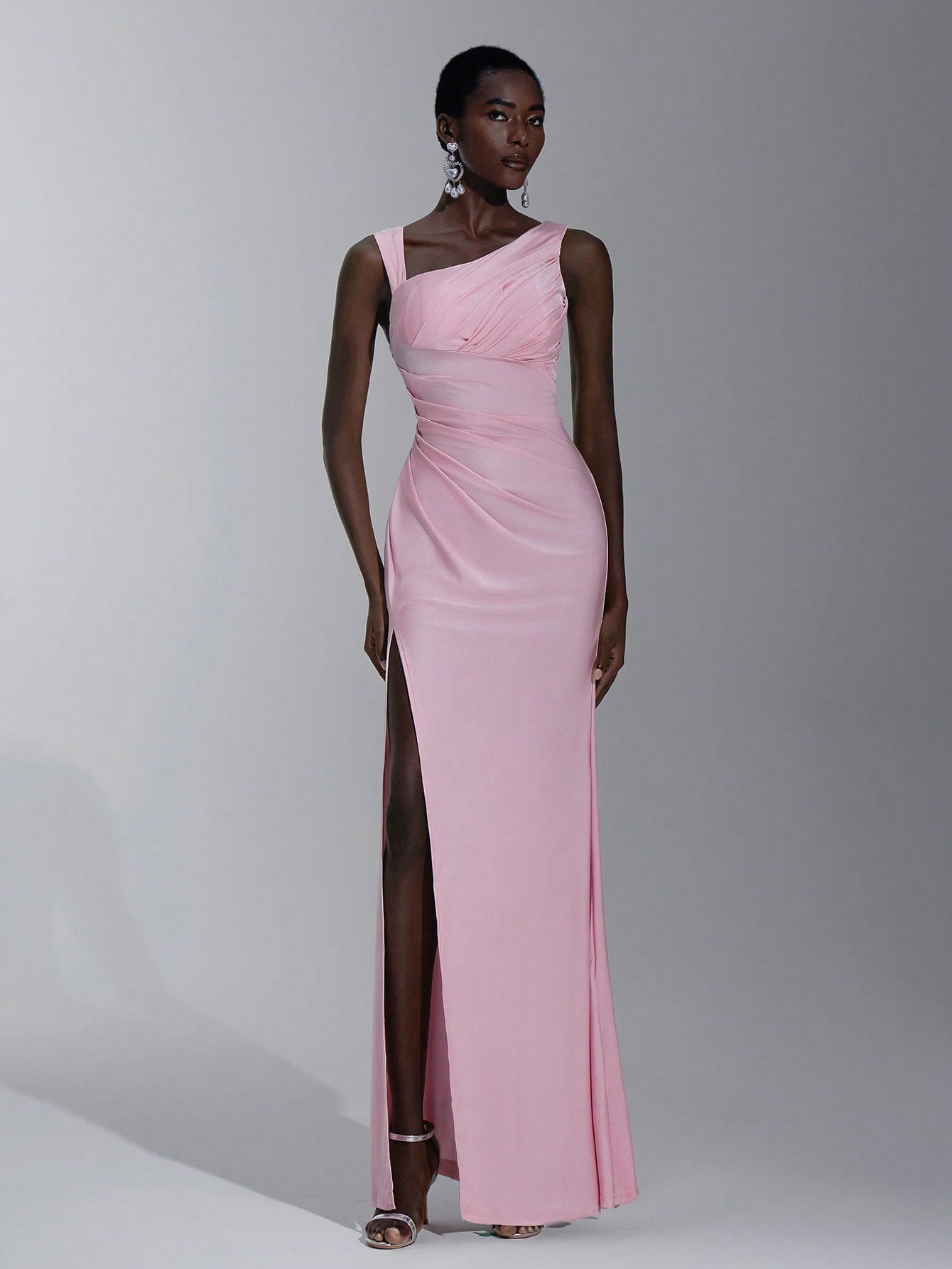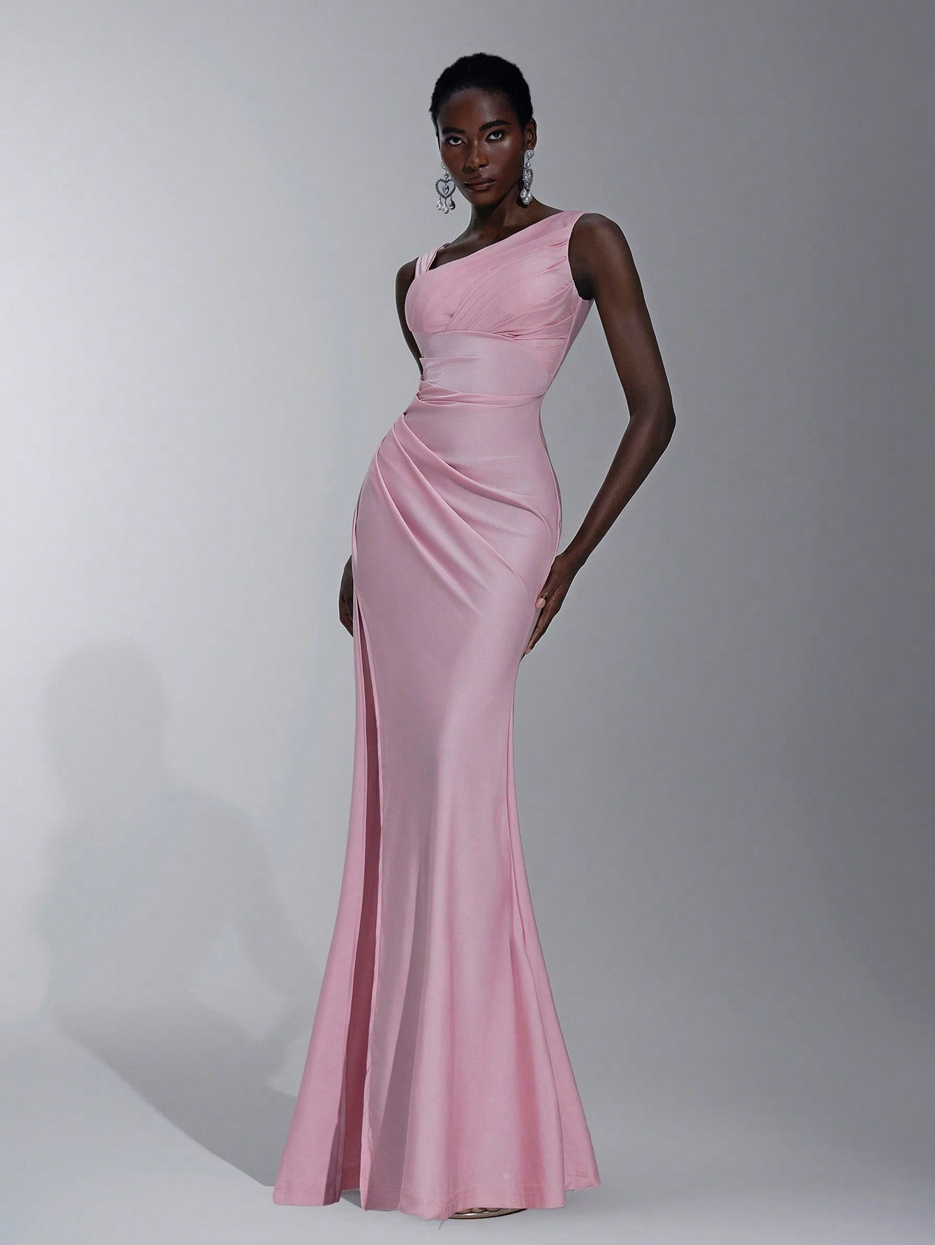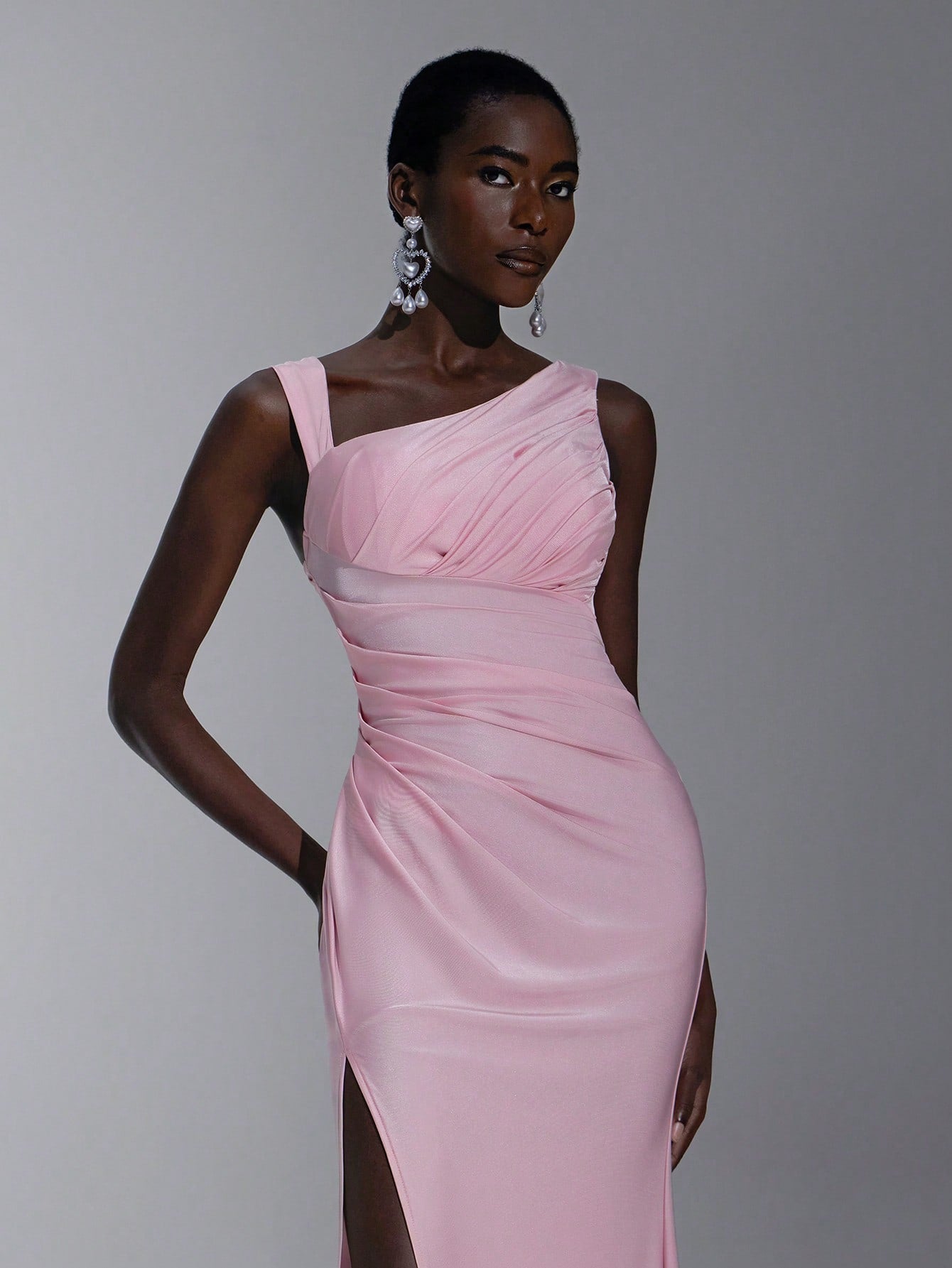 Elitara Elegant, Romantic, Dignified, Sexy, Spring And Summer, Pink, Knitted Stretch Fabric, Asymmetrical
