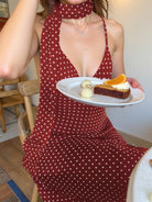Essnce Women's Sexy V-Neck Polka Dot Print Maxi Slip Dress