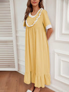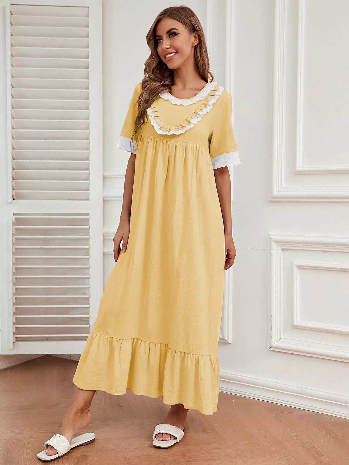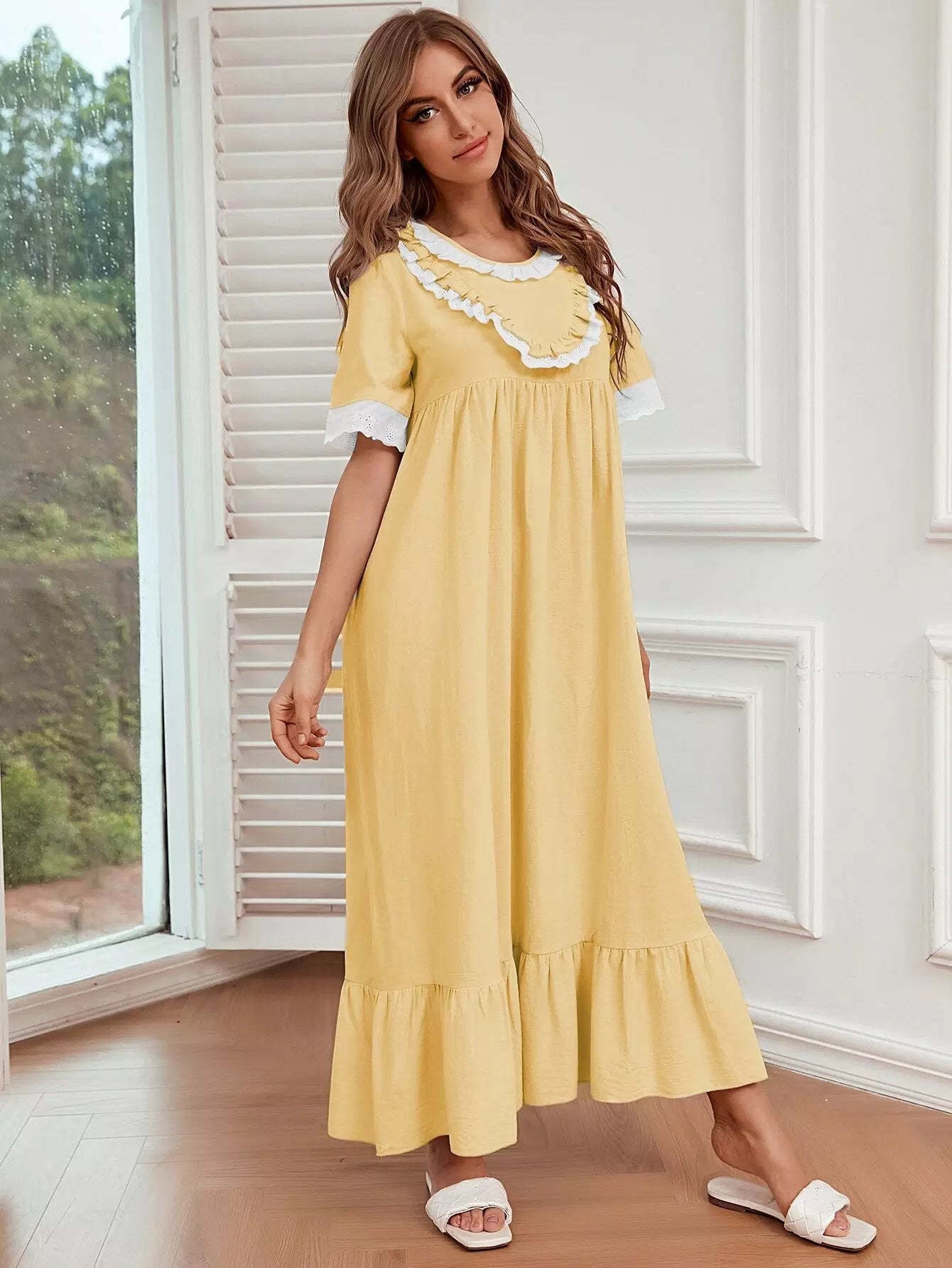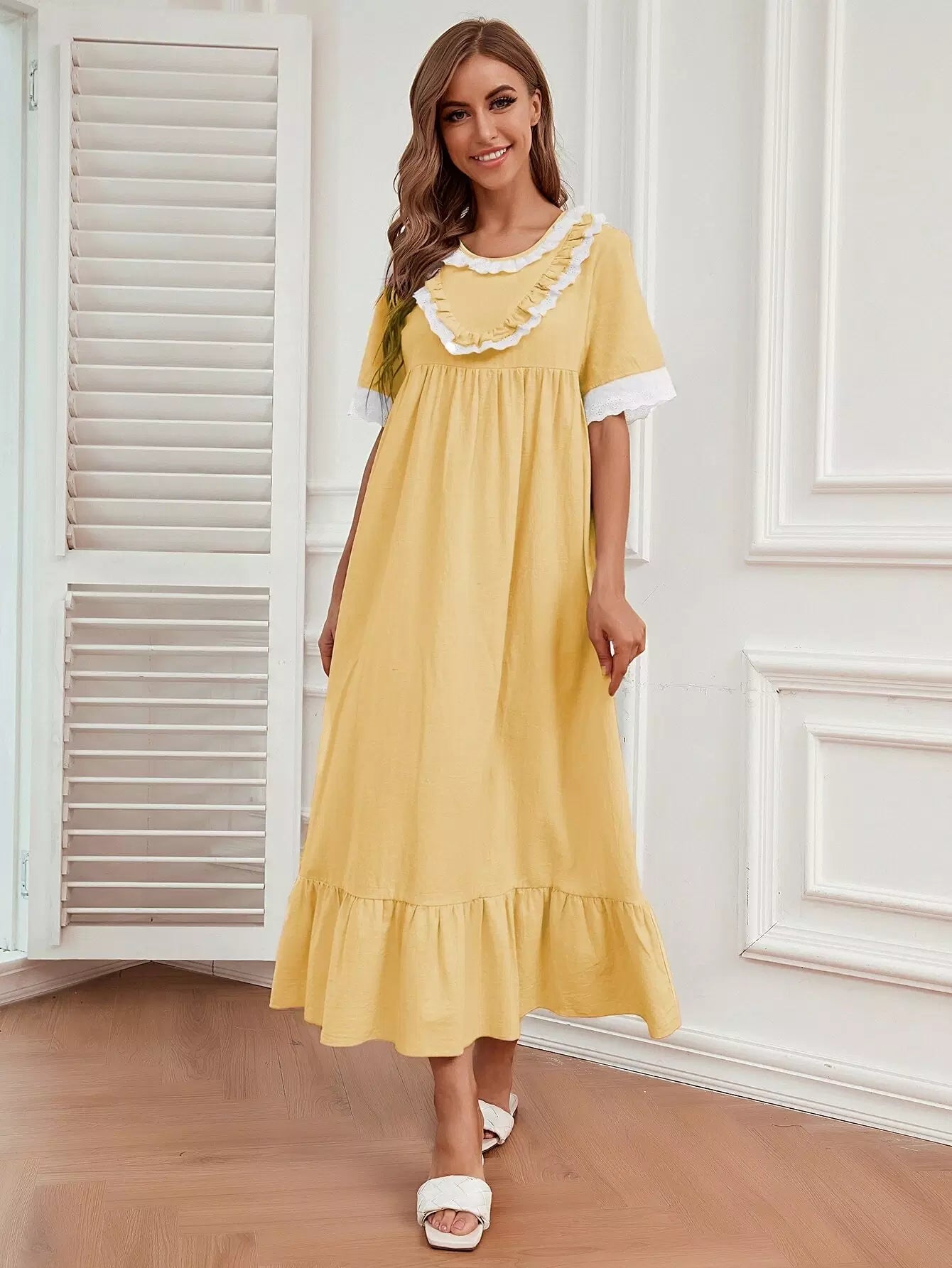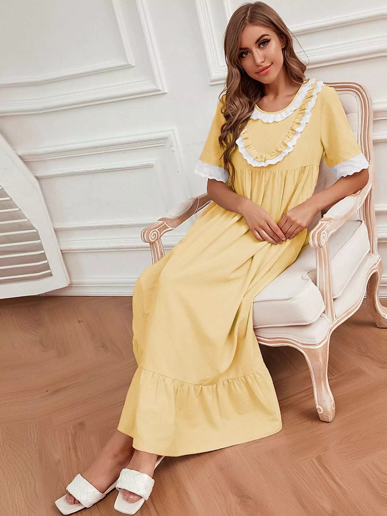 فستان قصير مزين بكشكشة وتطريز على شكل عين
