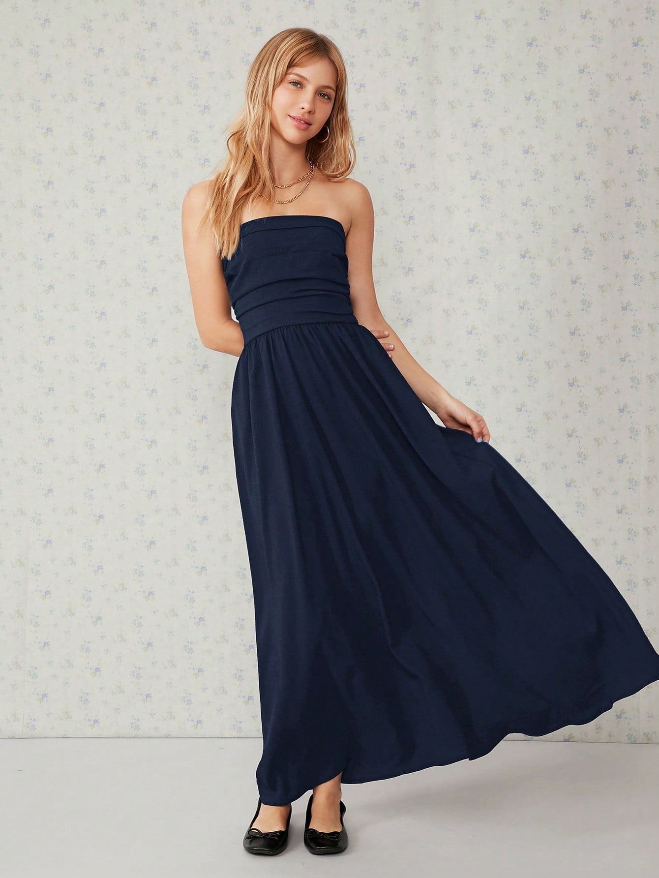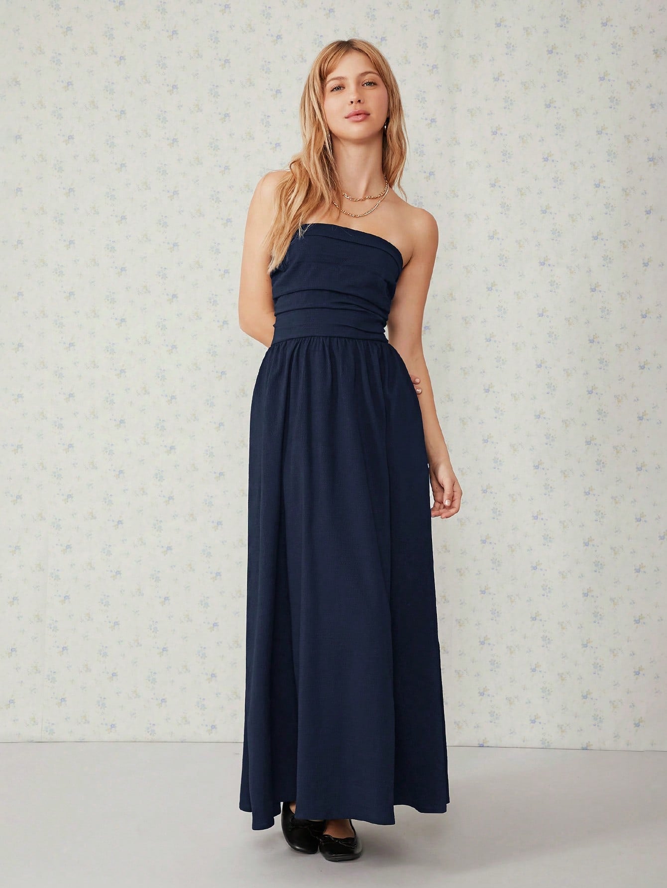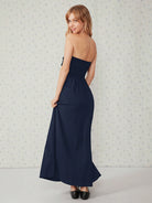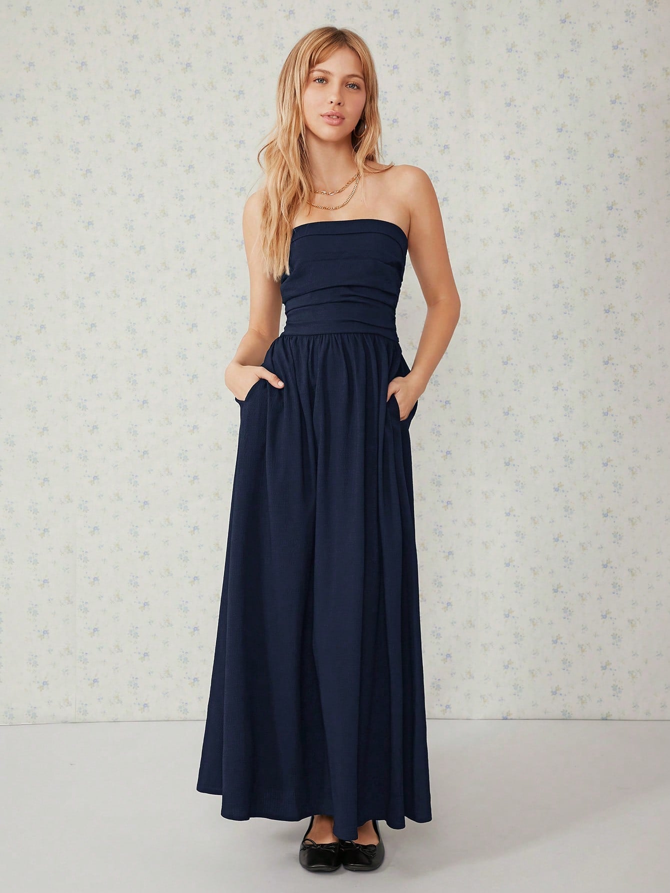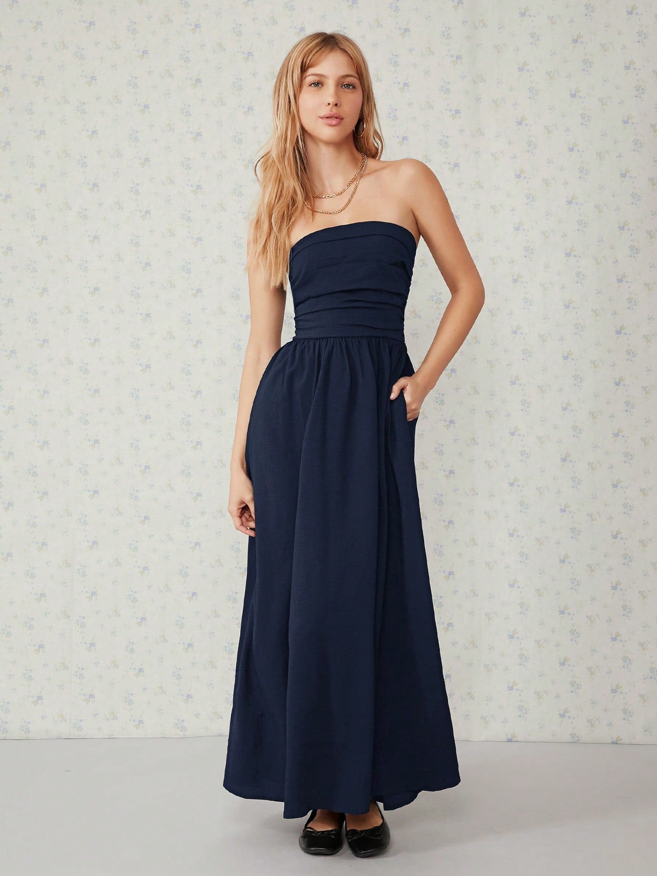 فستان EZwear طويل أسود سادة بجيوب مائلة