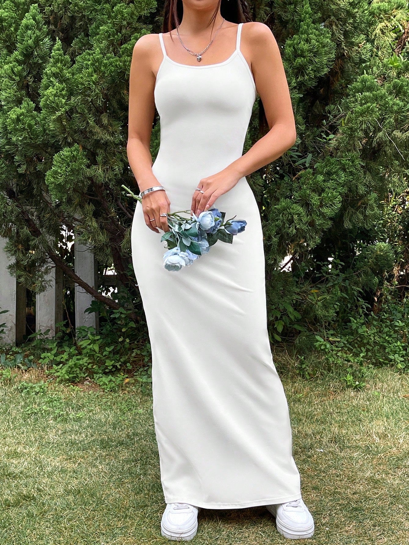 فستان أبيض أساسي بحمالات رفيعة من إيزي وير للنساء، فساتين صيفية للنساء، فستان أبيض لحفلات الشاي