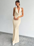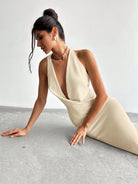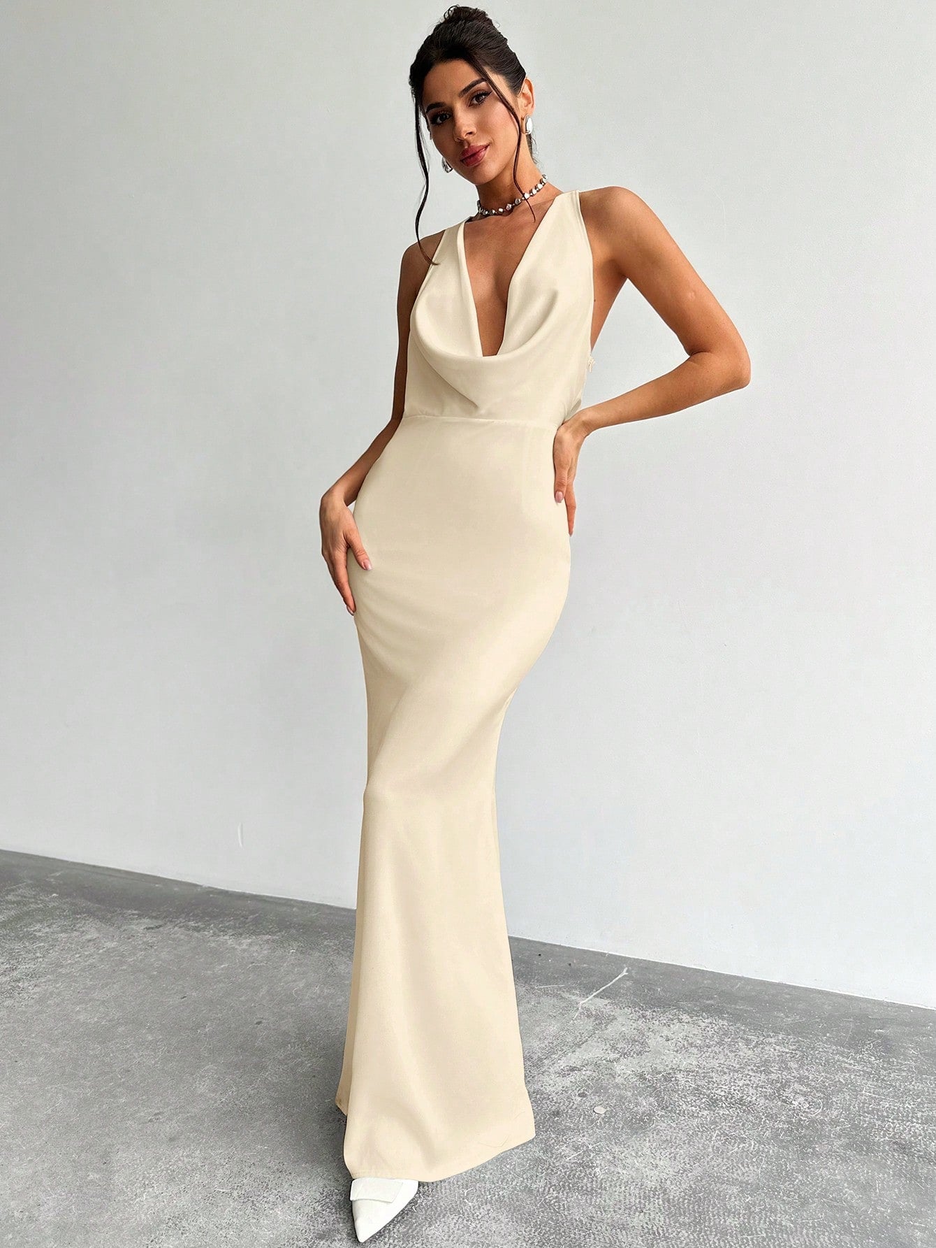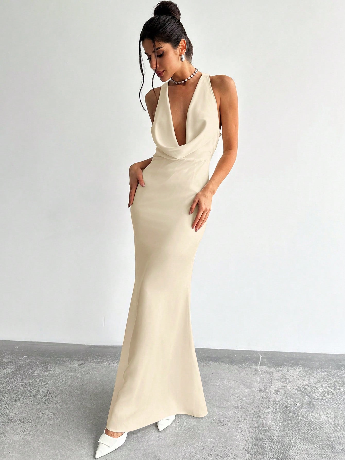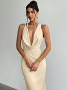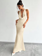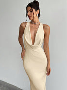 Firerie New Romantic Date Night Sexy Deep V-Neck Backless A-Line White Long Dress For Festival, Elegant