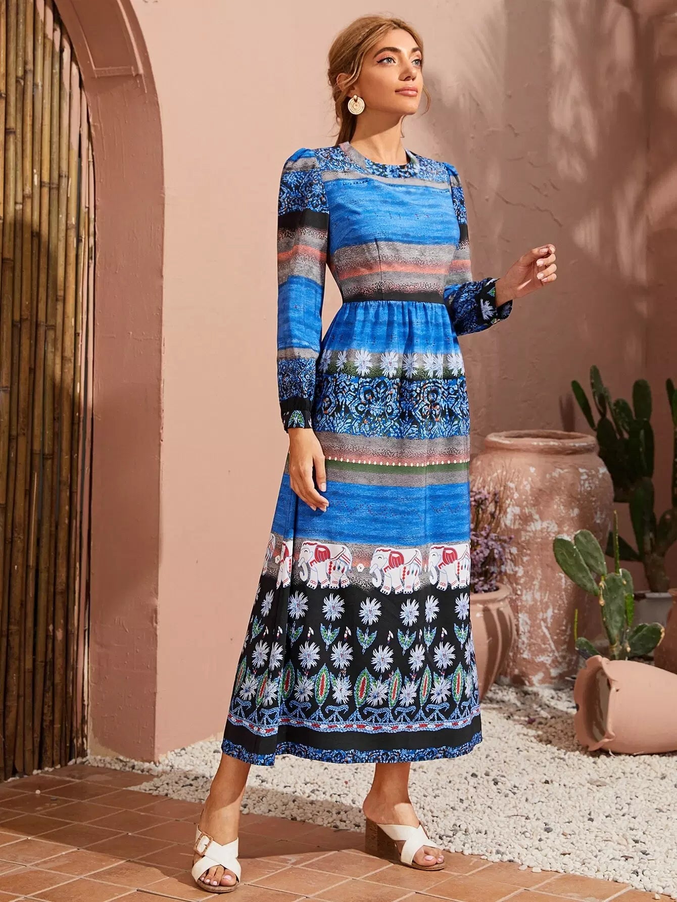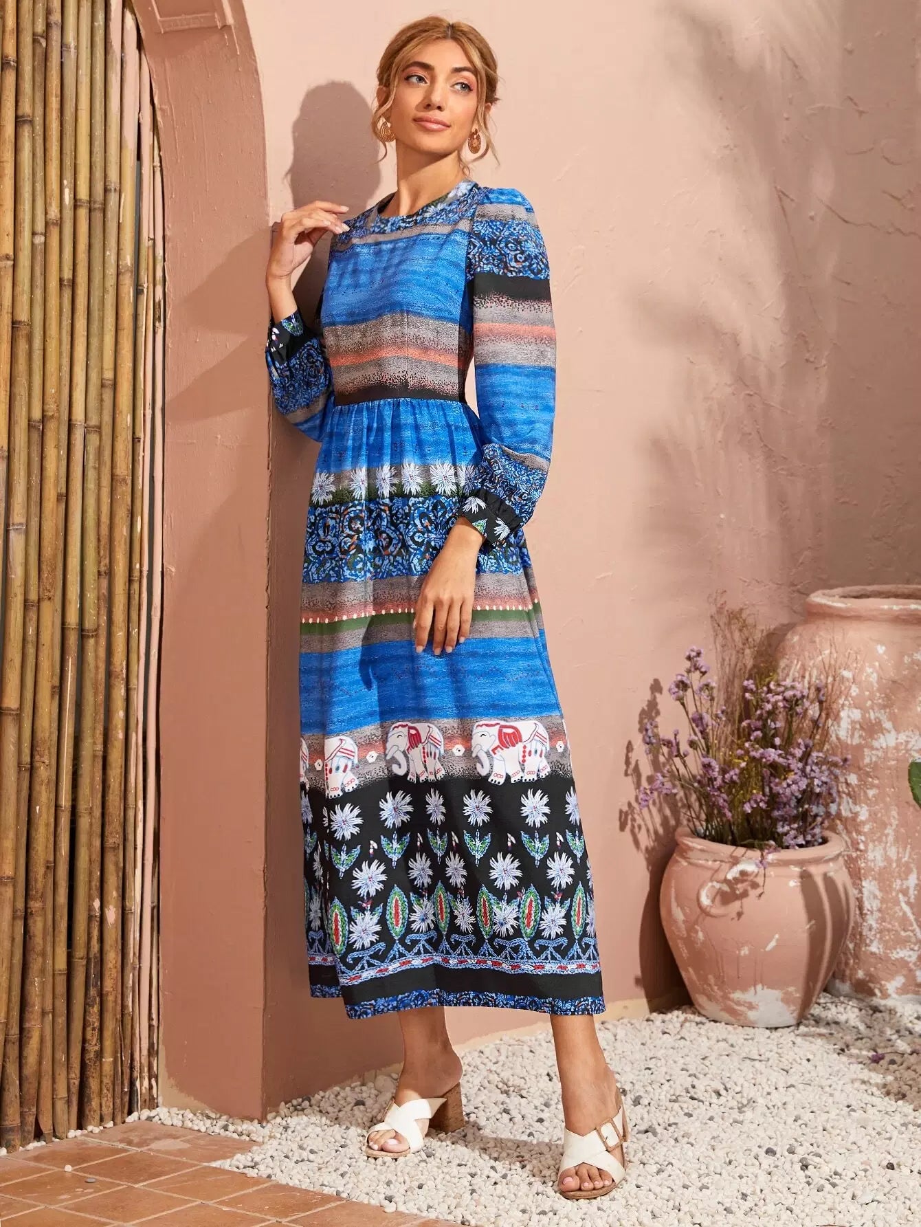 فستان بطبعة زهور على شكل حرف A