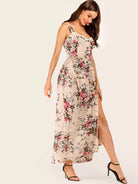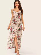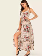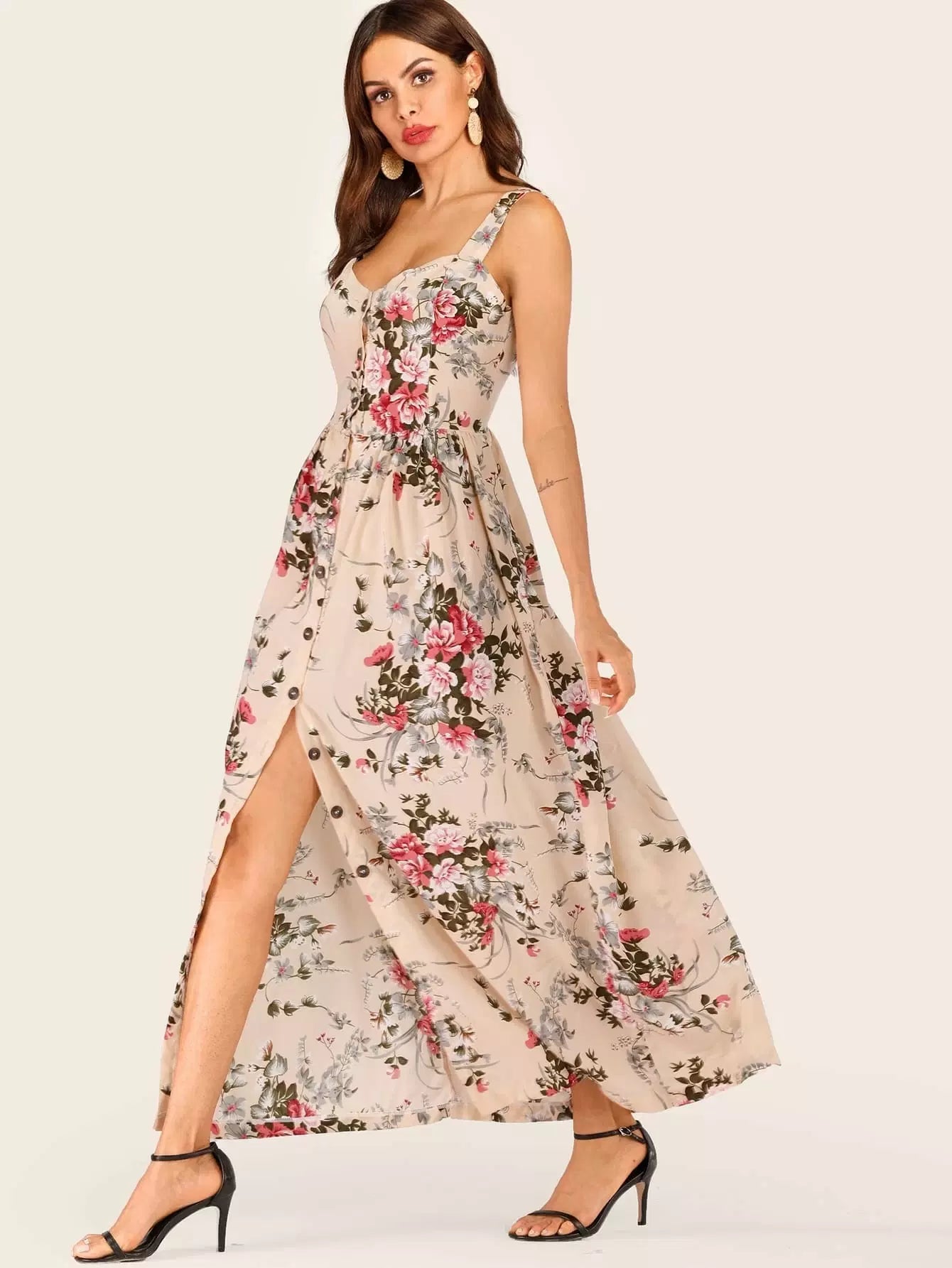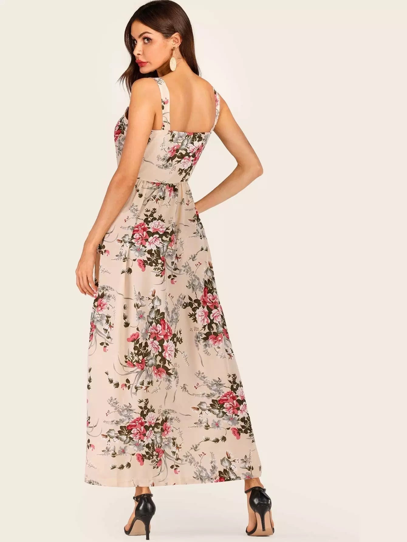فستان كامي بطبعة أزرار أمامي بأزرار مطبوعة بالزهور
