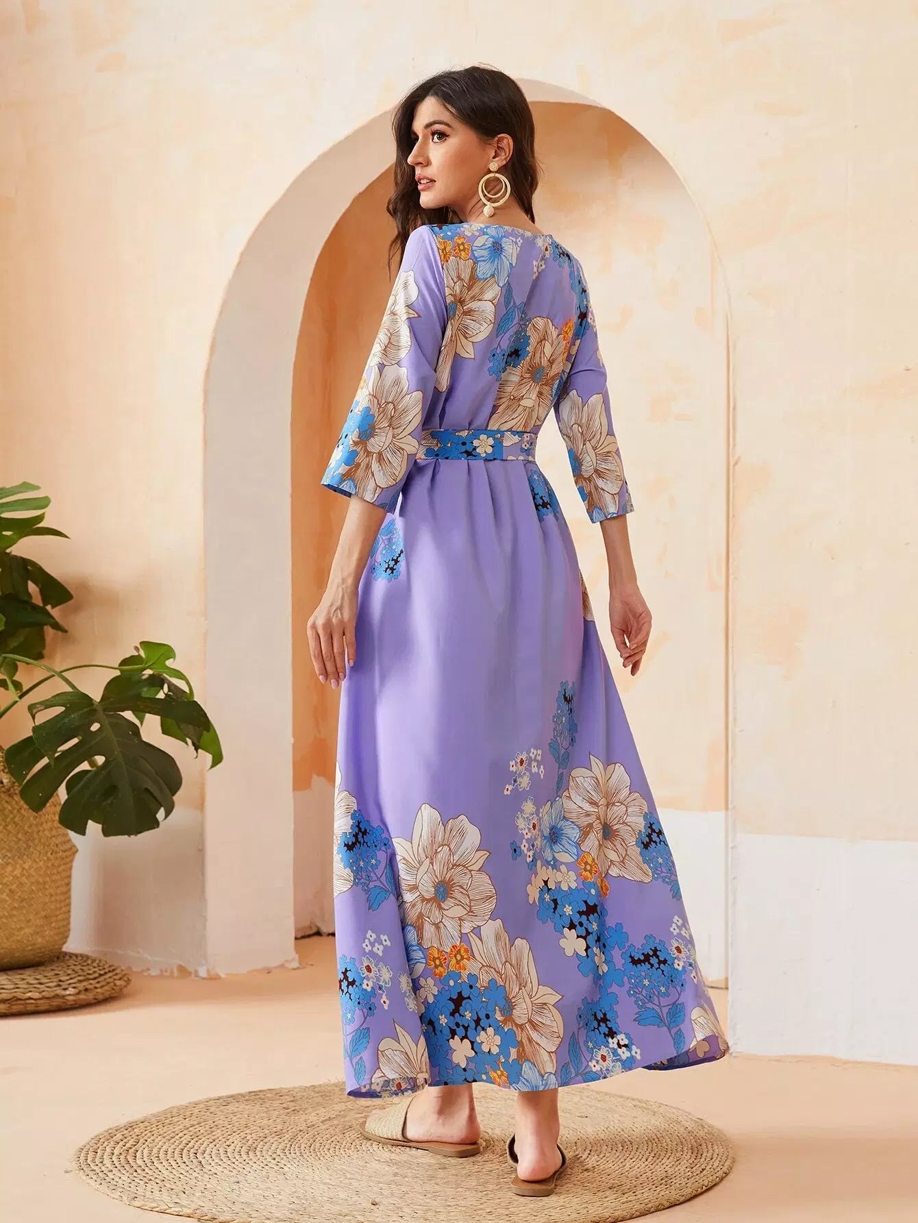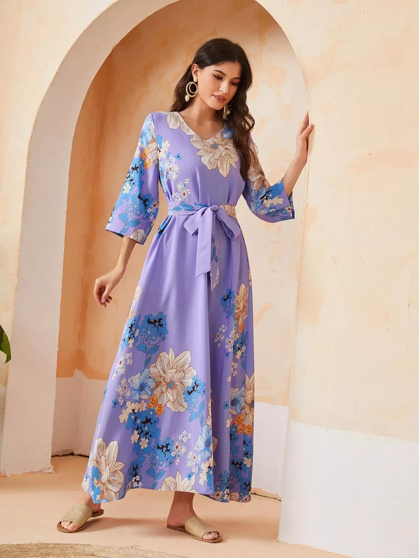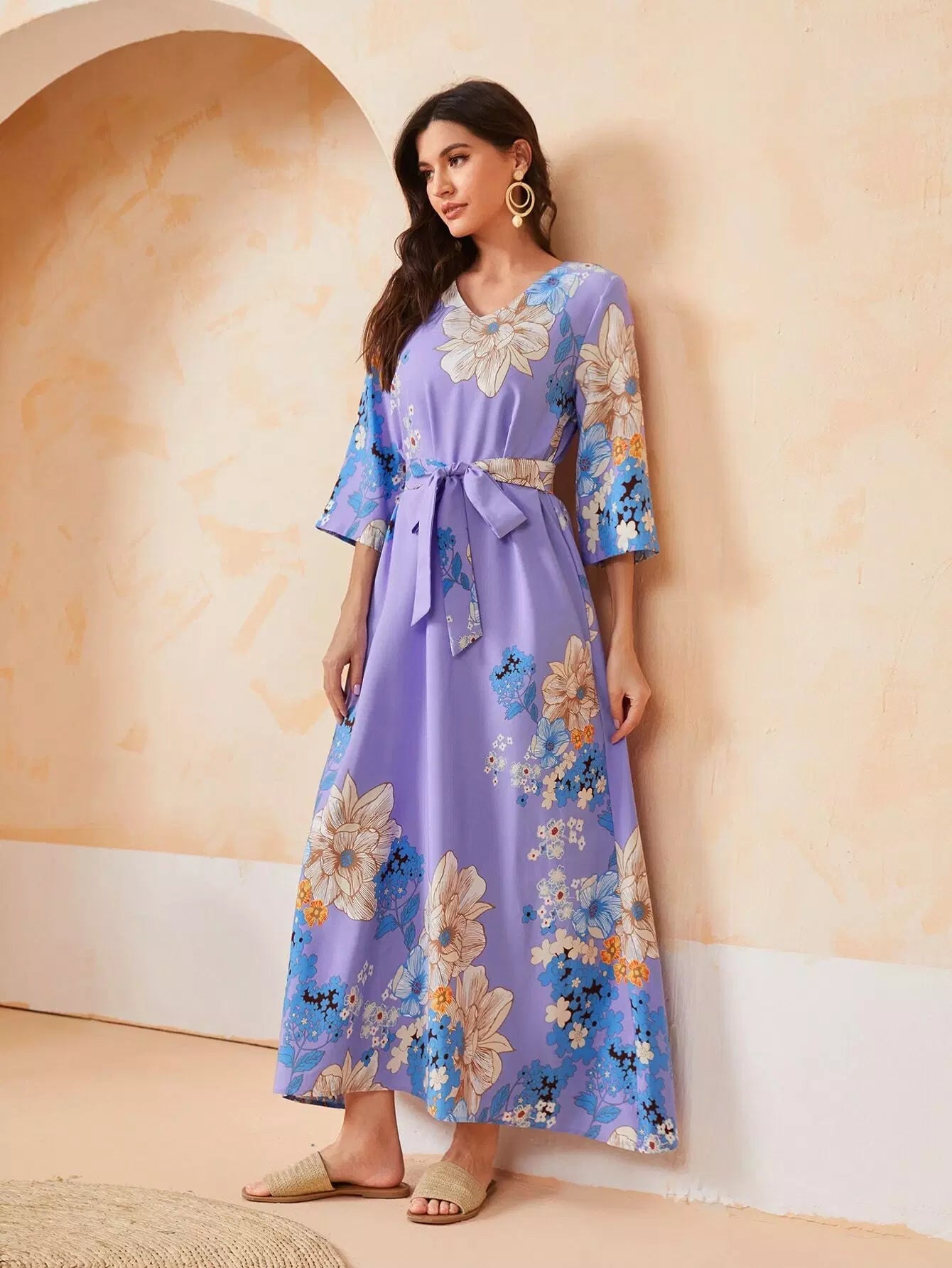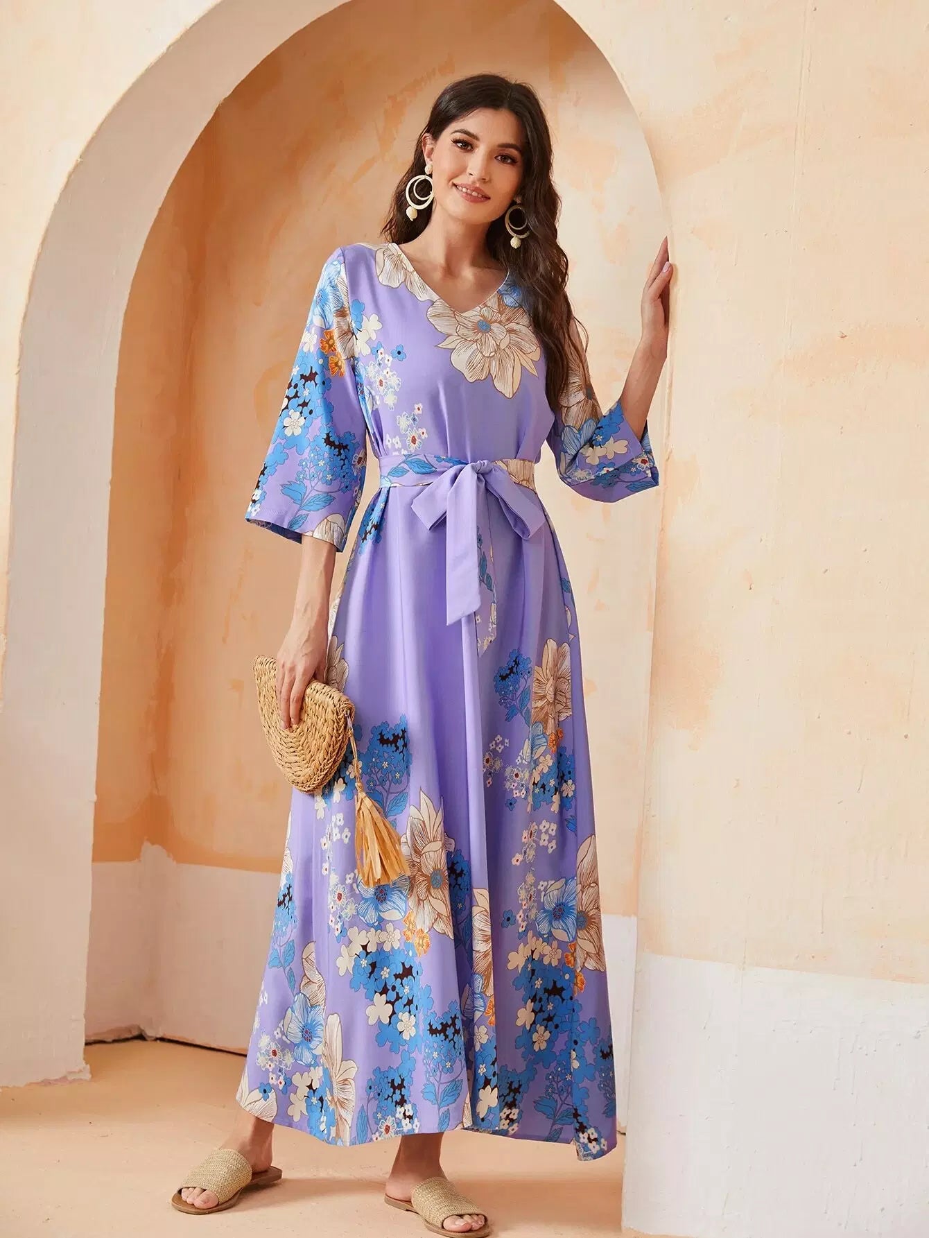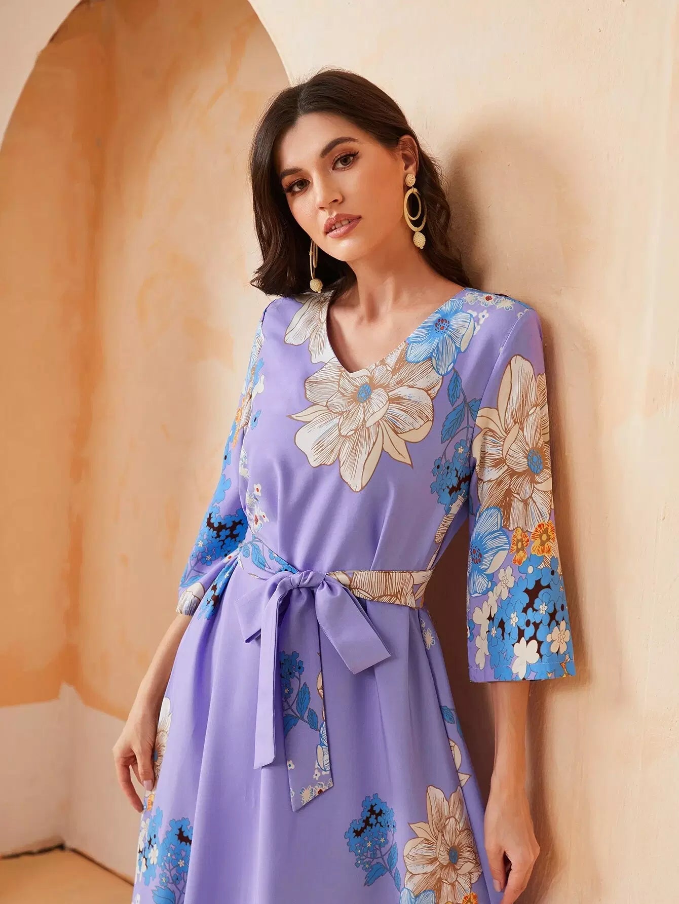 فستان بطبعات الأزهار مع ربطة عنق ذاتية