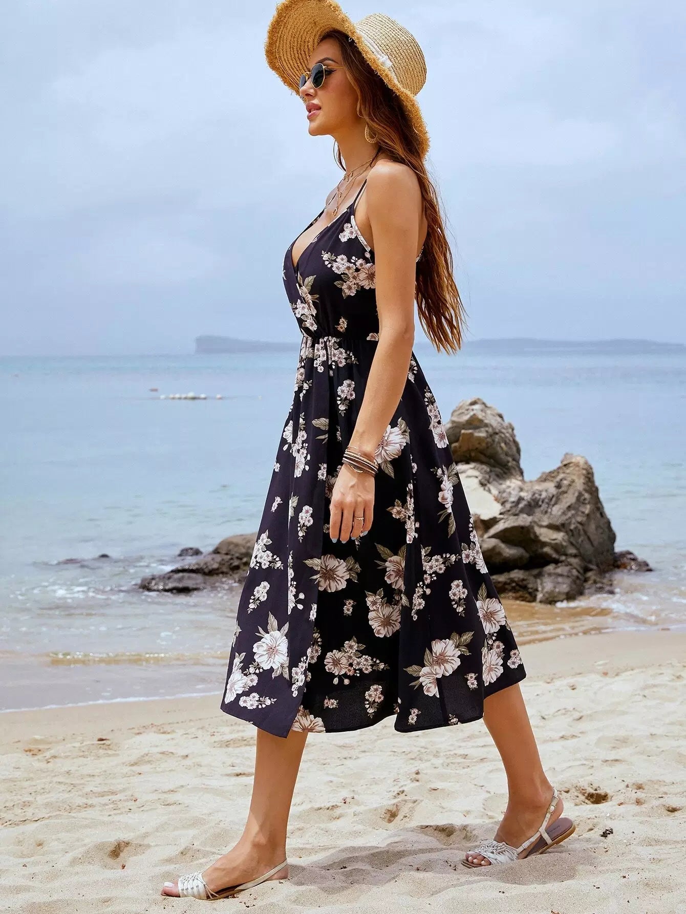 فستان كامي بطبعة زهور مطبوع على الفخذين منقوش بطباعة زهور