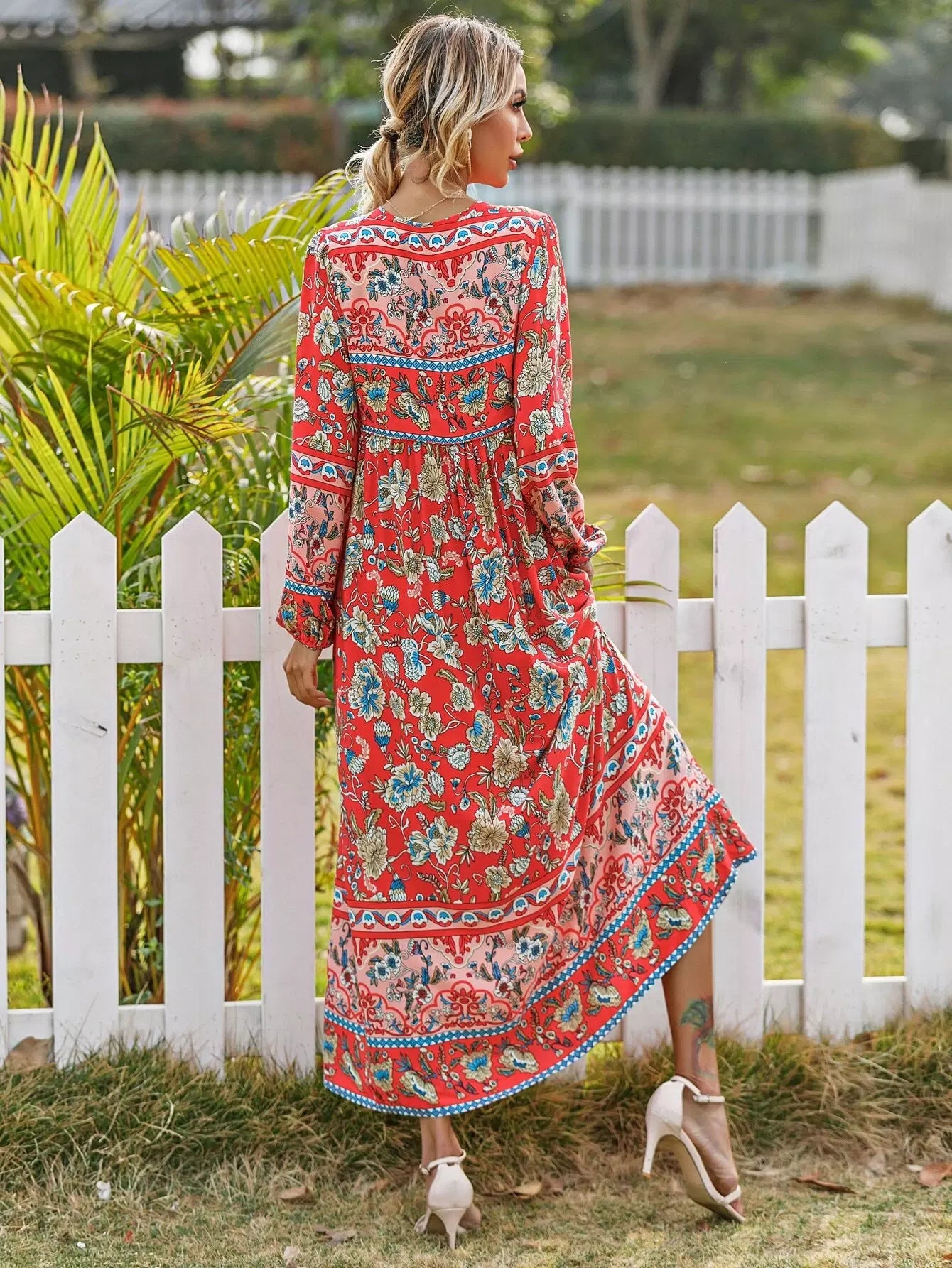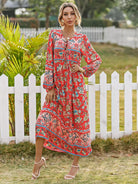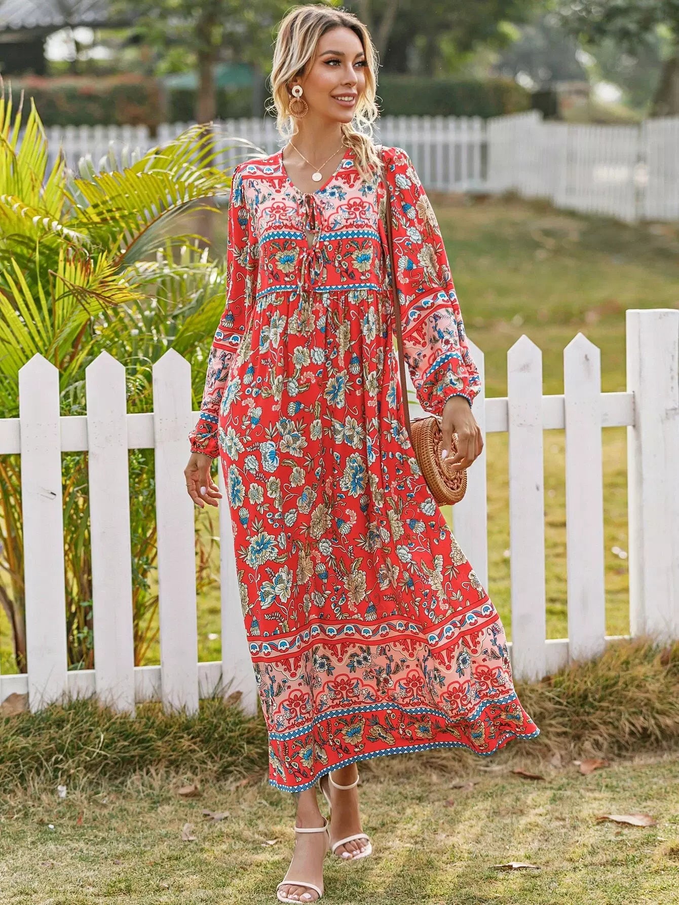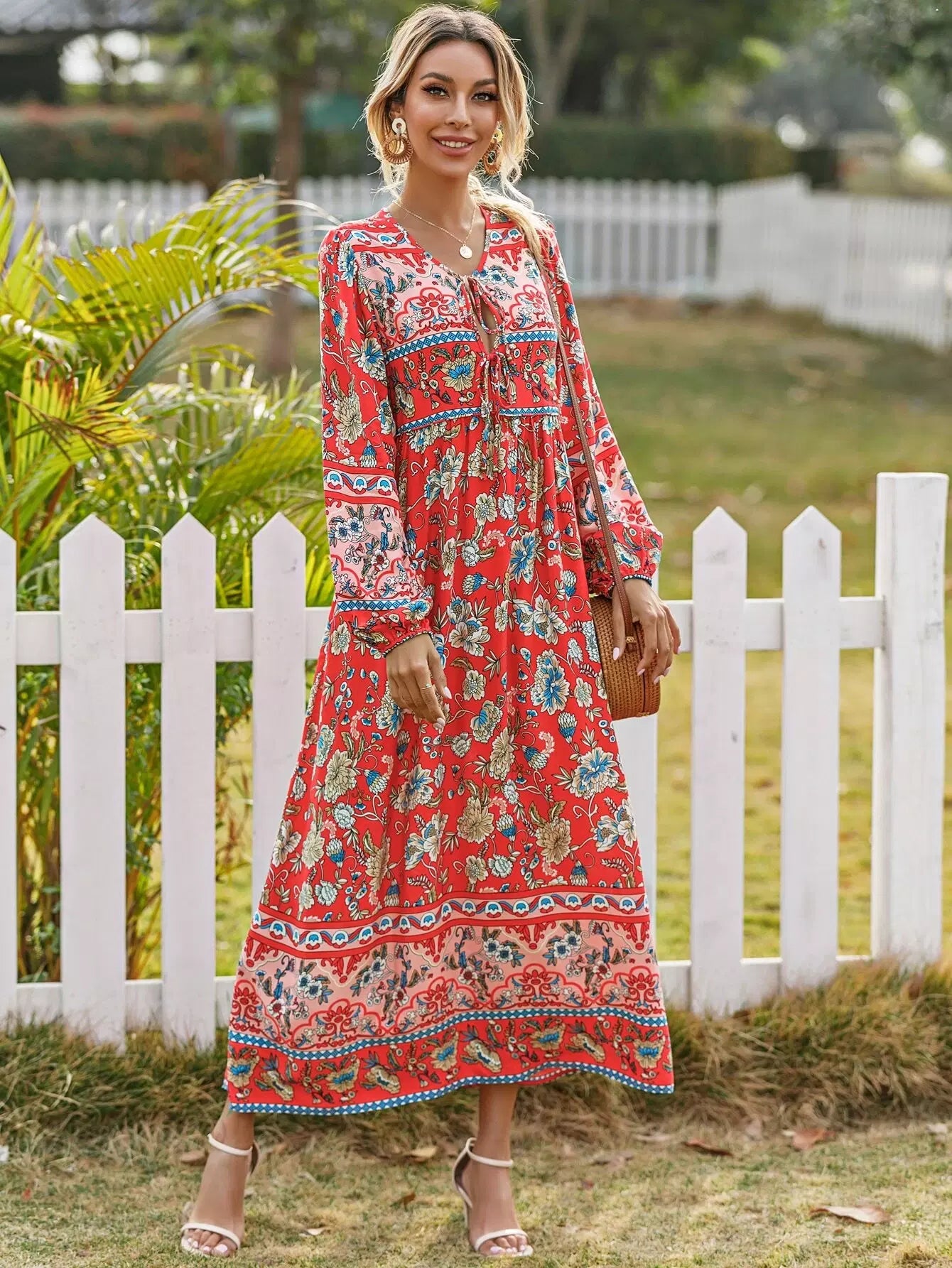 فستان سموك برقبة عنق ربطة عنق مطبوع بالزهور