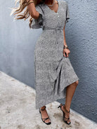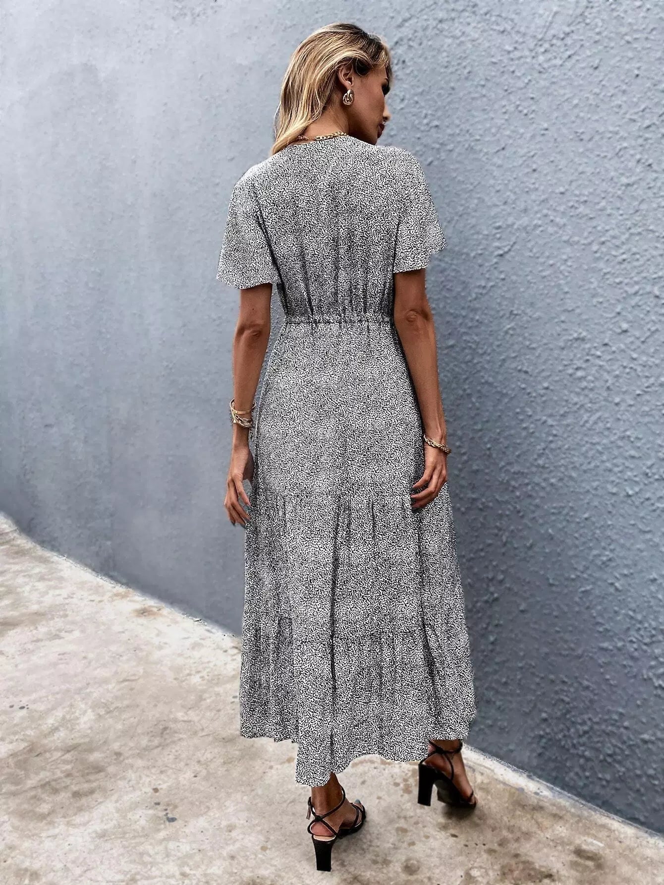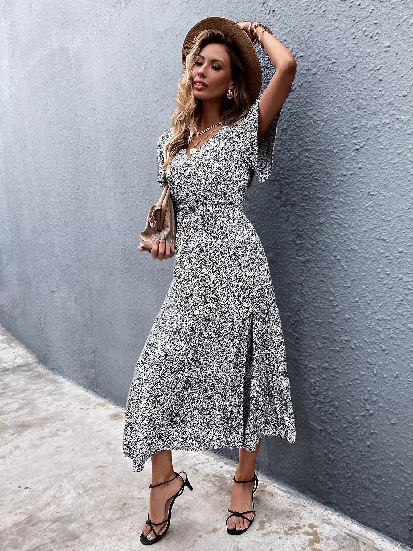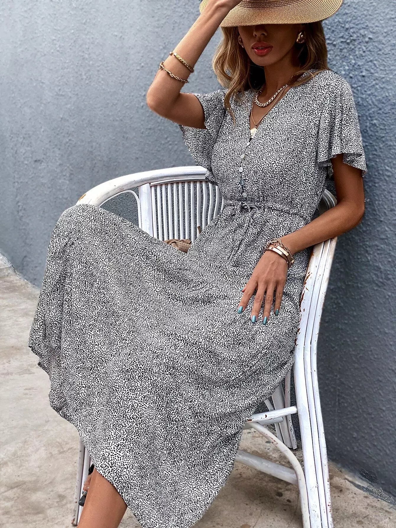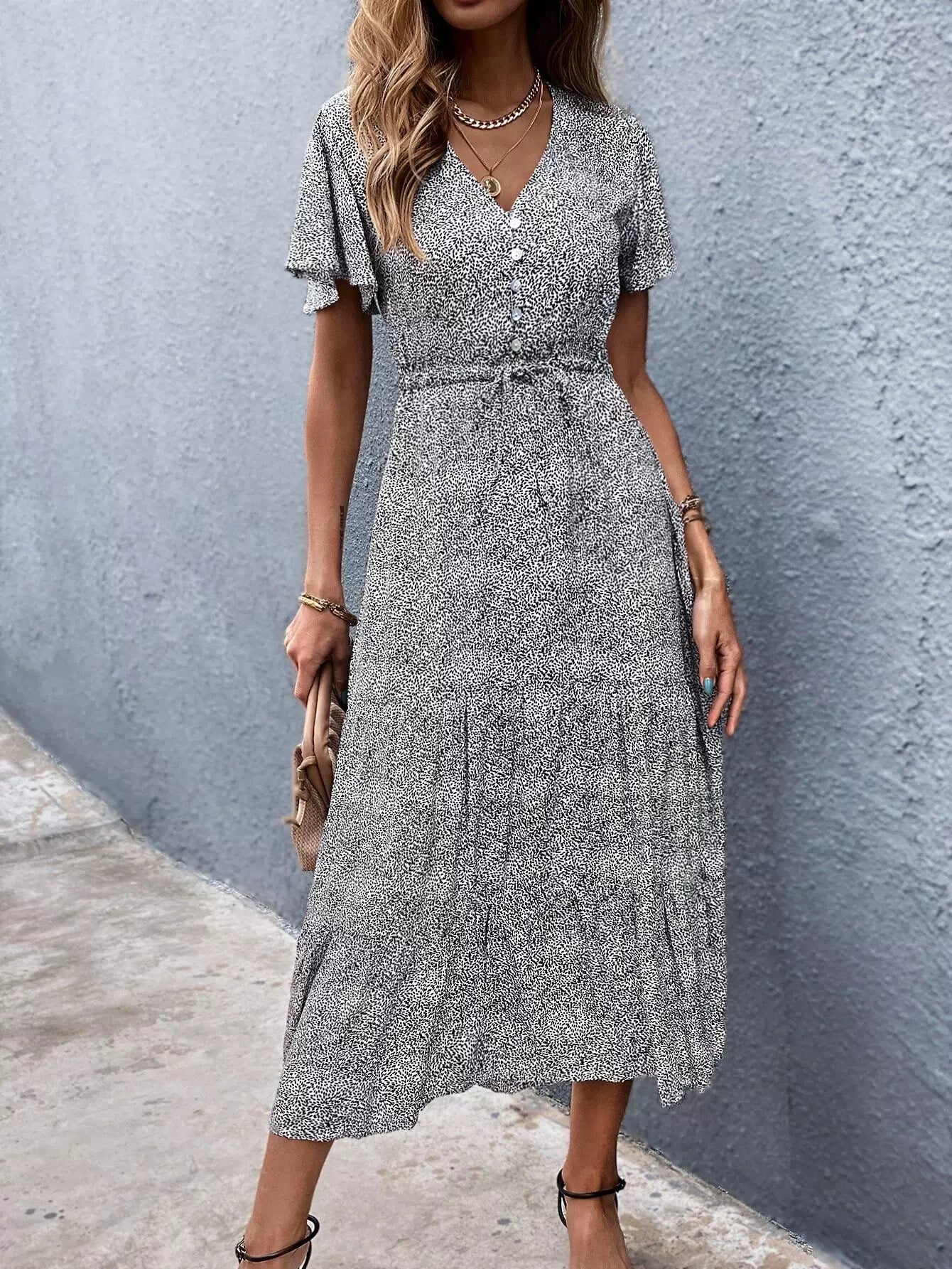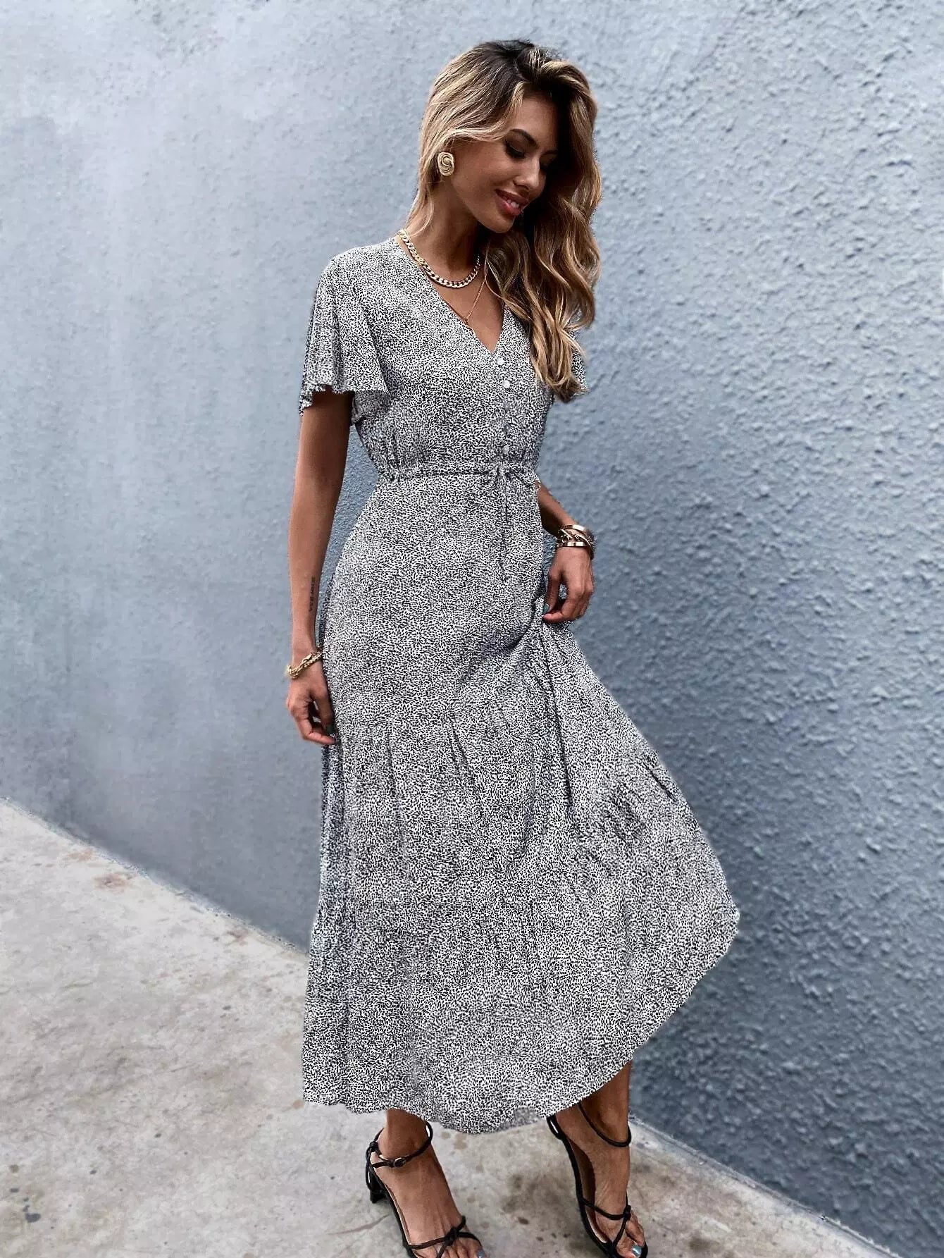 فستان بأكمام رفرفة برباط خصر كشكش بحافة كشكش