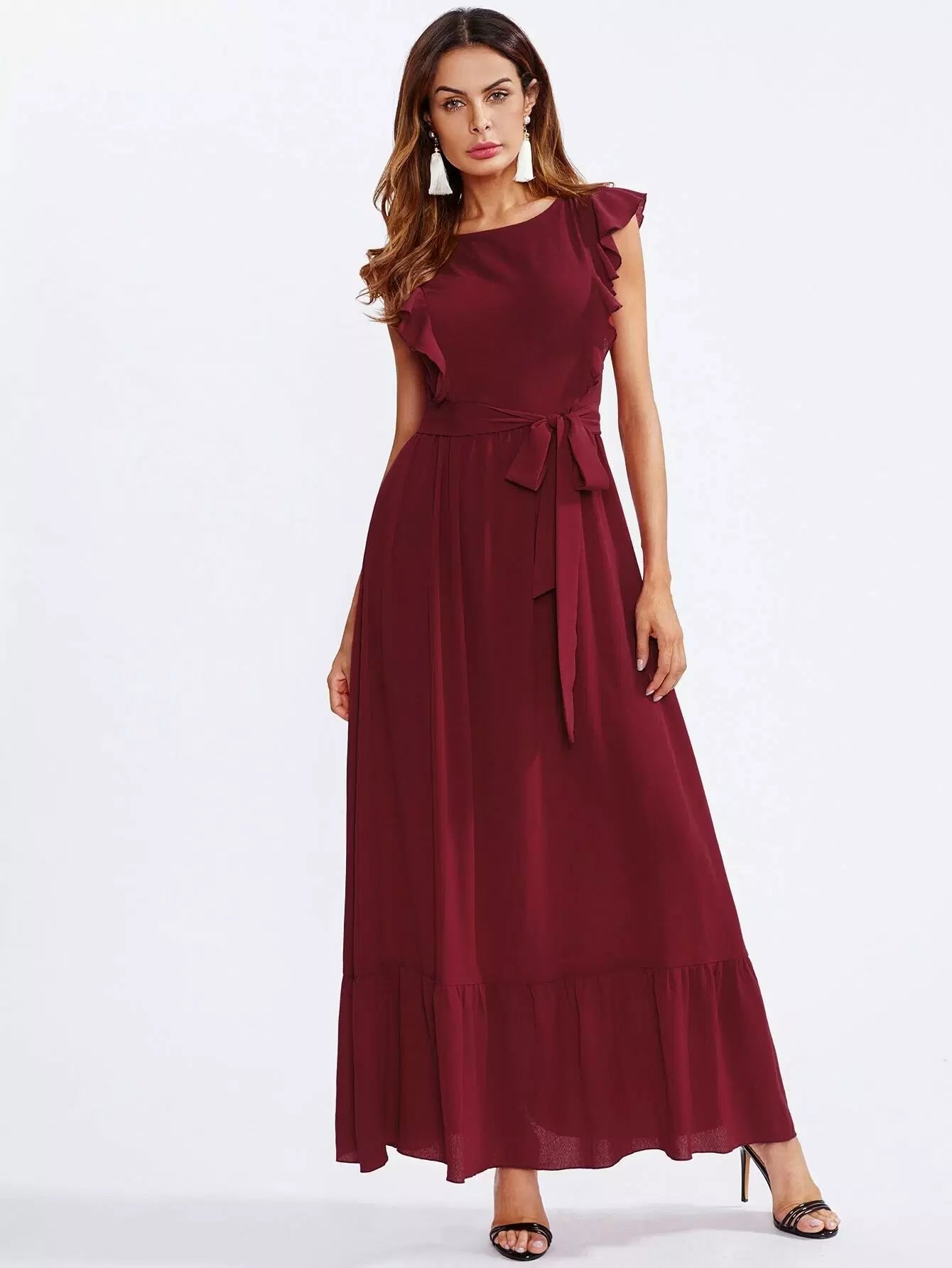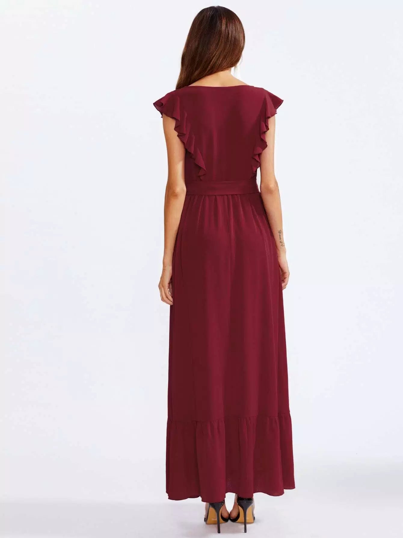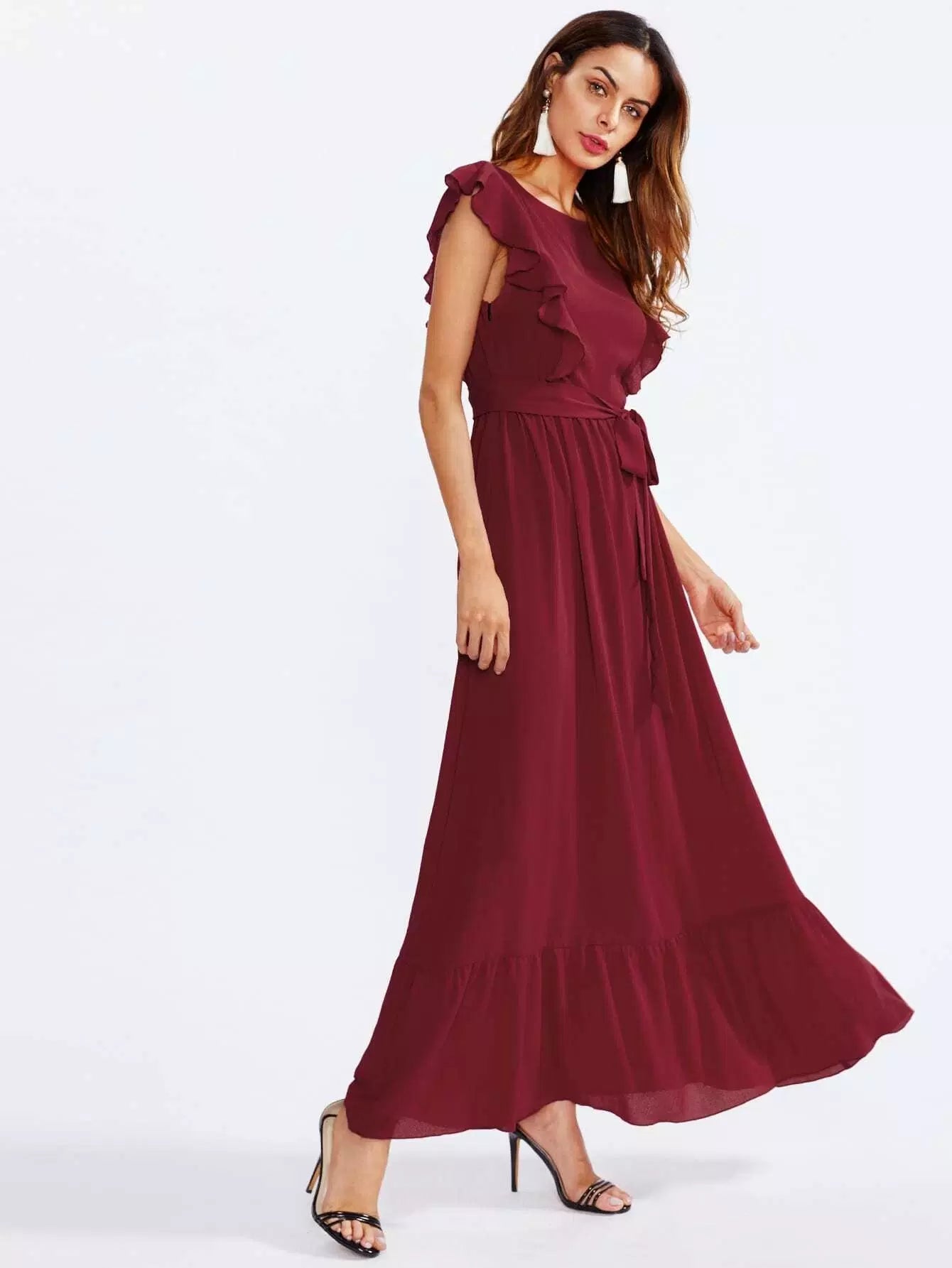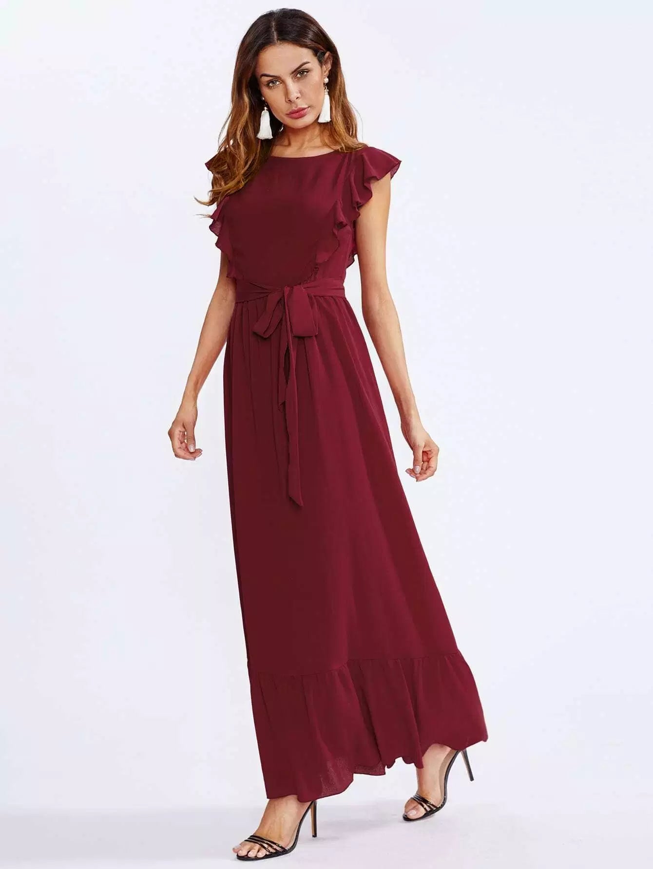 فستان بكشكش على الكتفين والحاشية بدون حزام