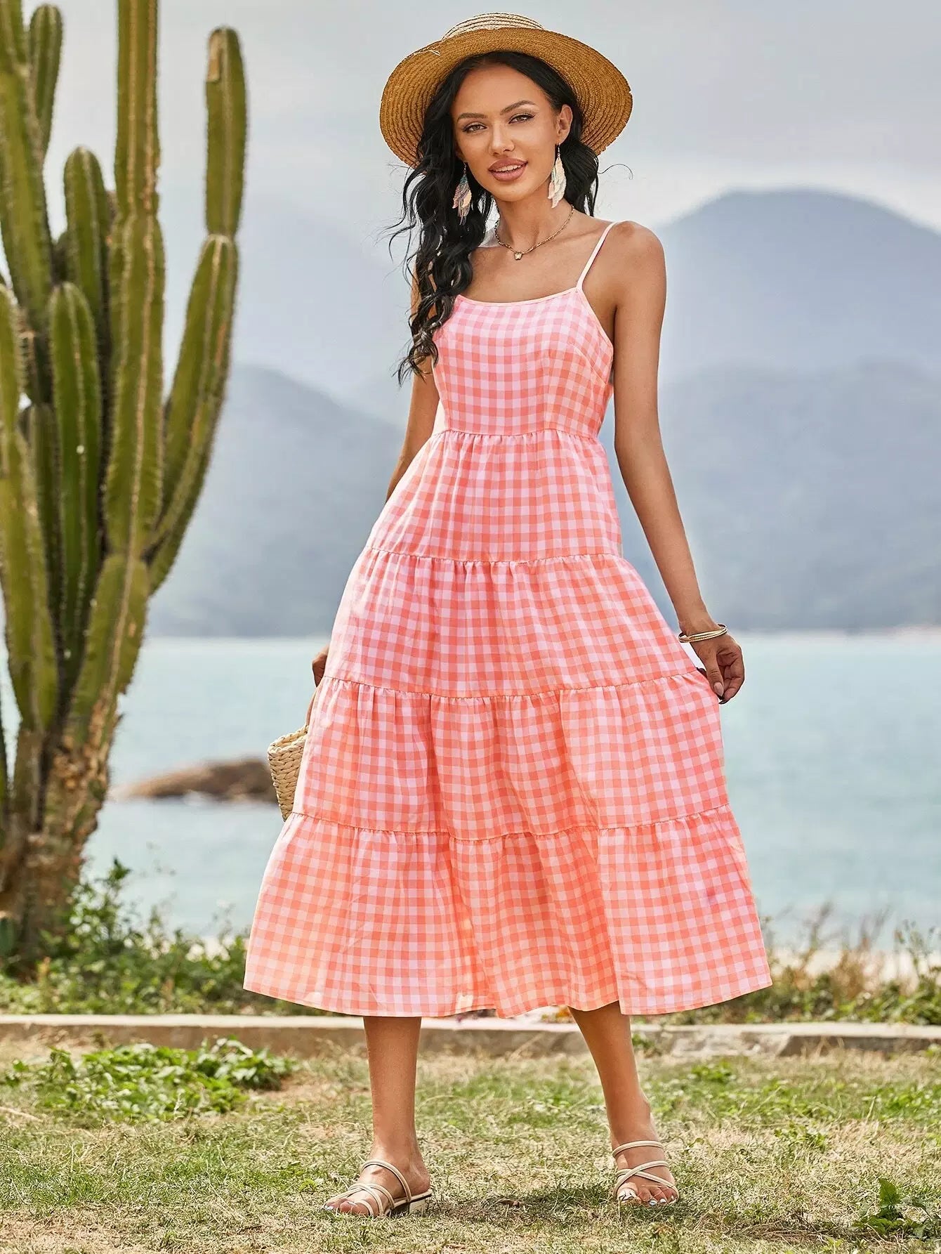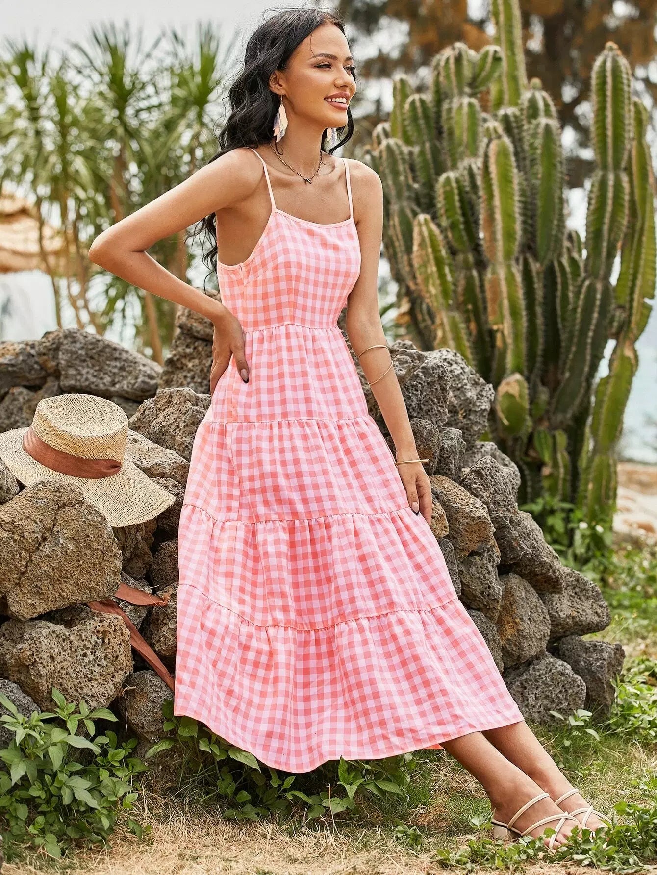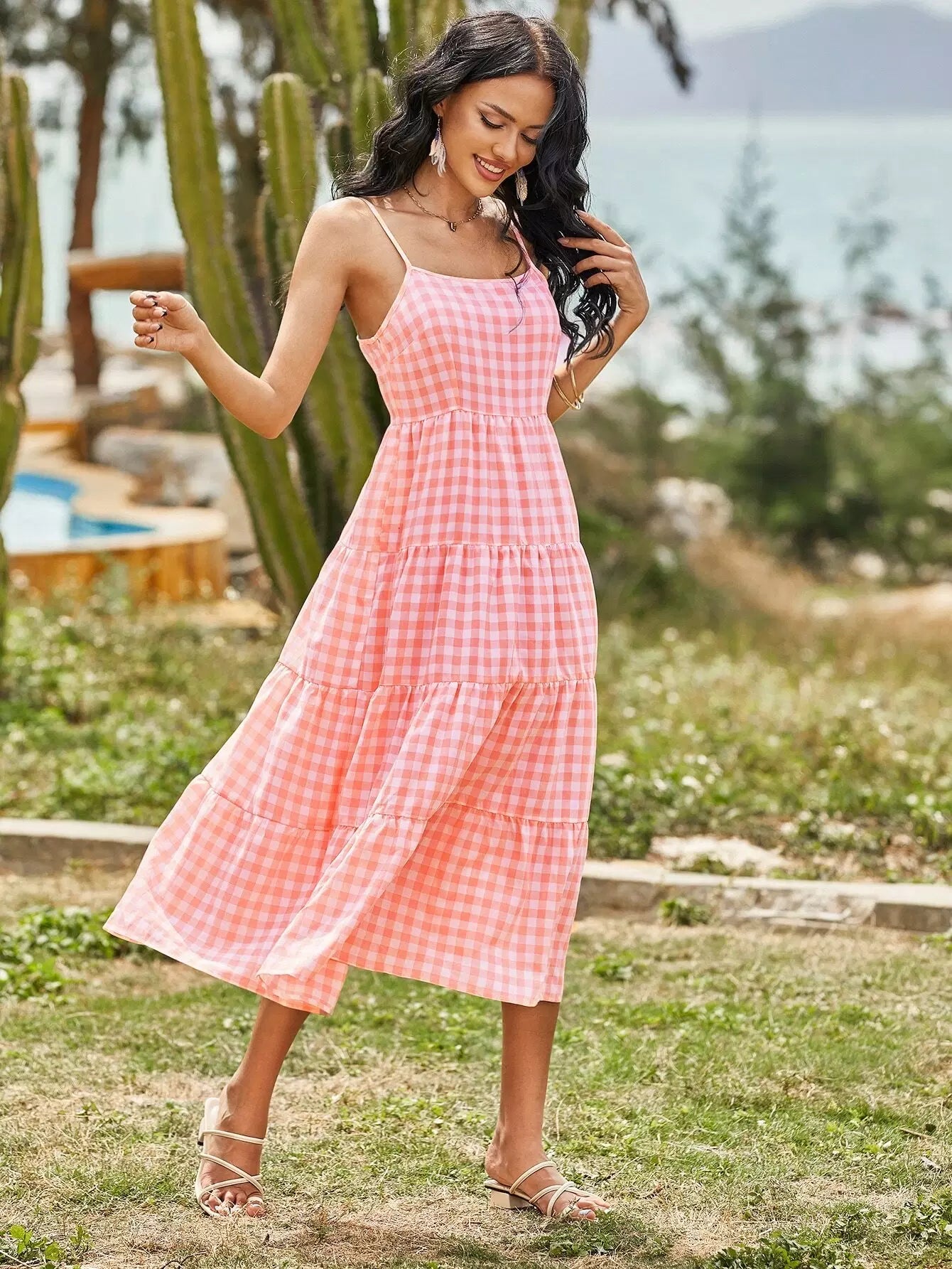 فستان قطني مكشكش بحواف مكشكشة من القماش القطني