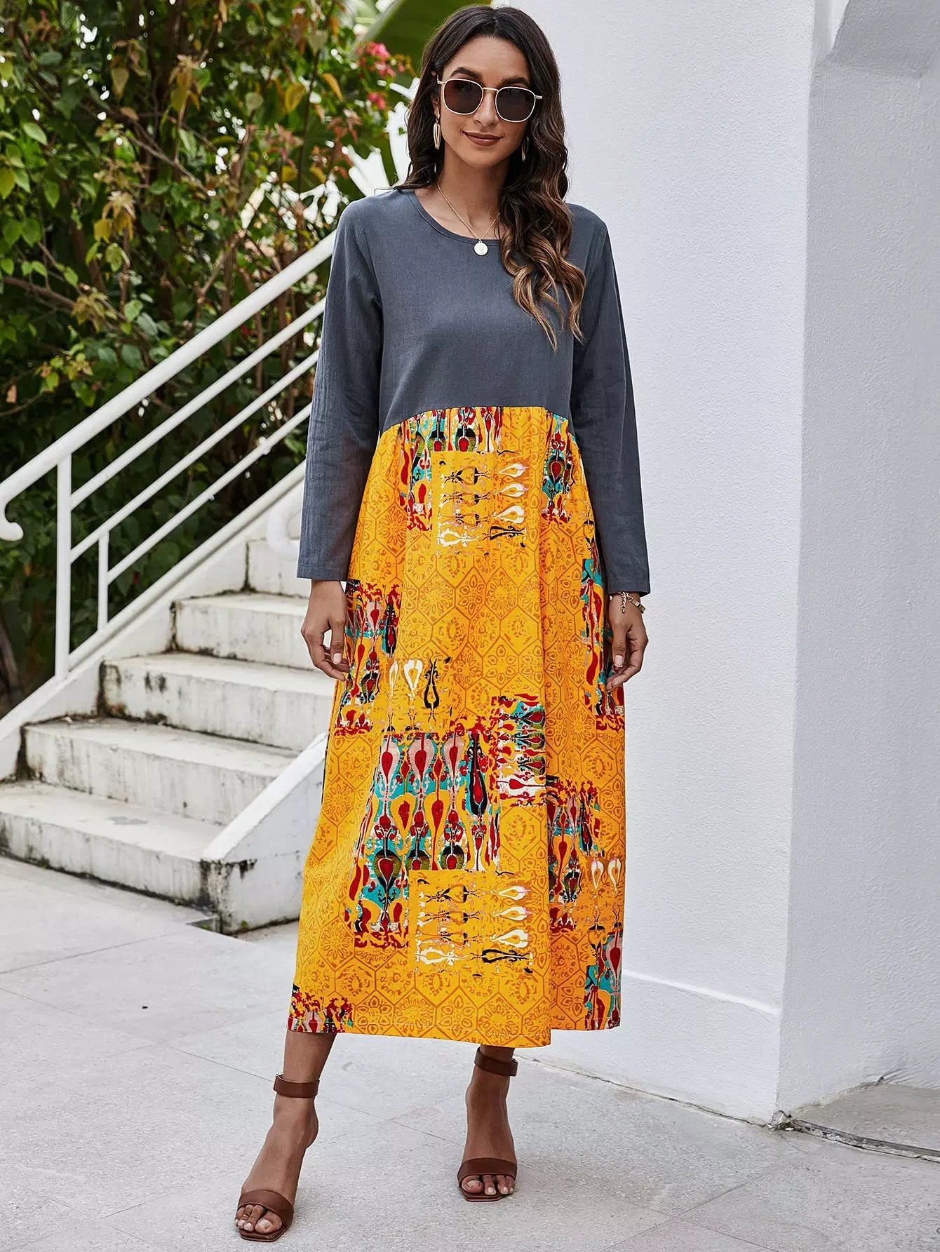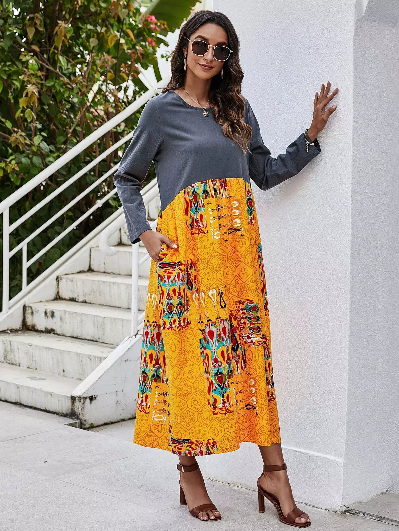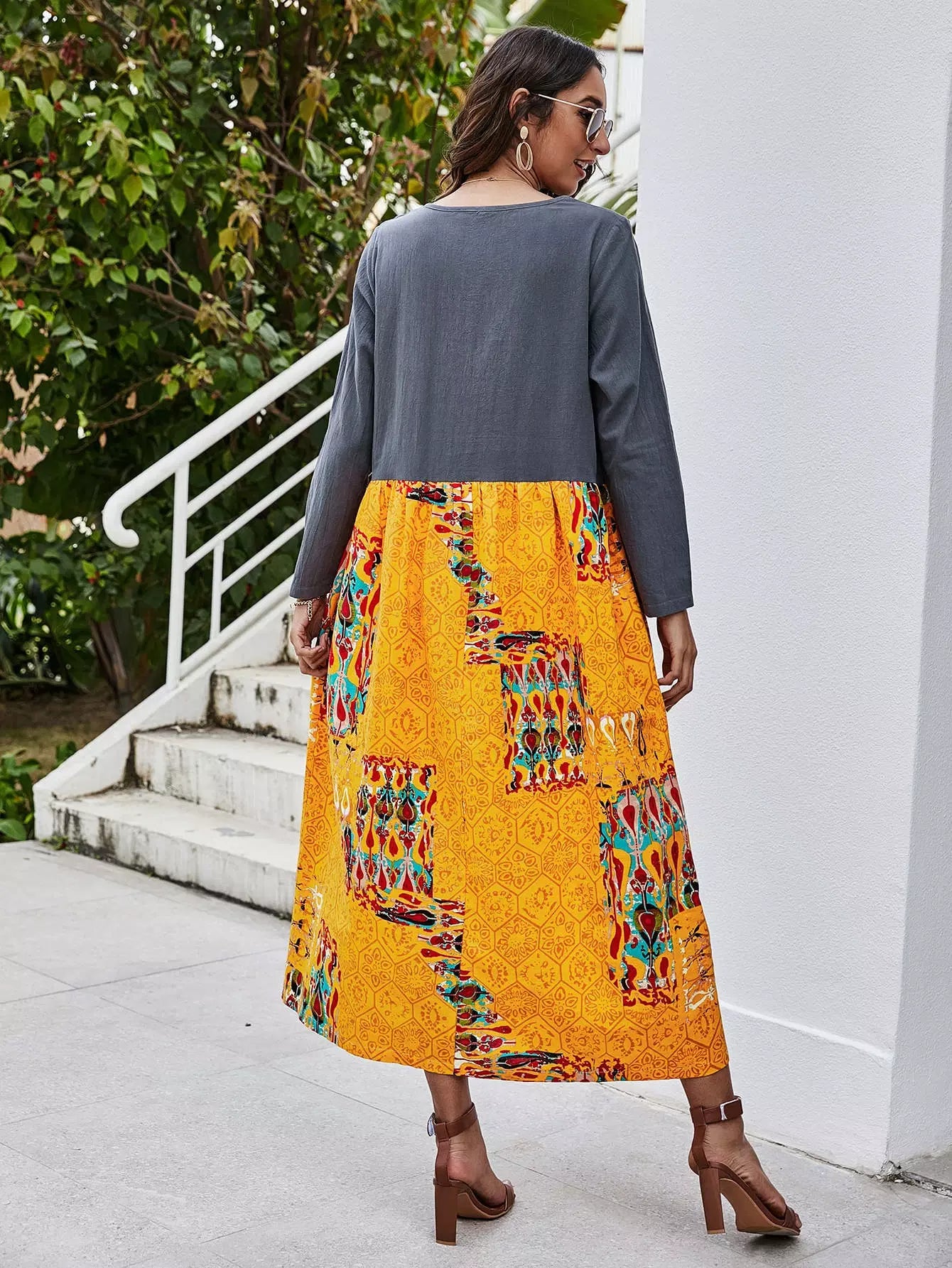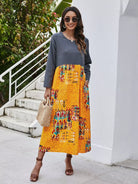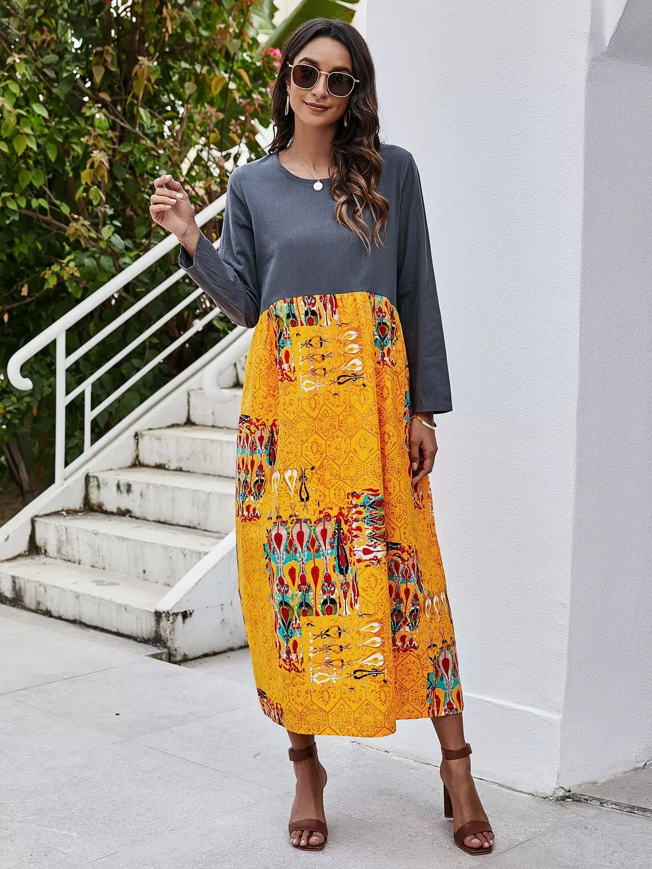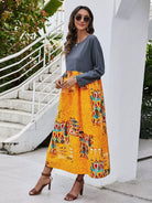 فستان قصير بطبعة جرافيكية وجيب مائل