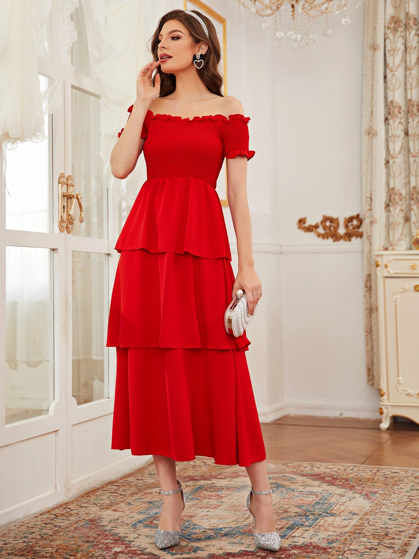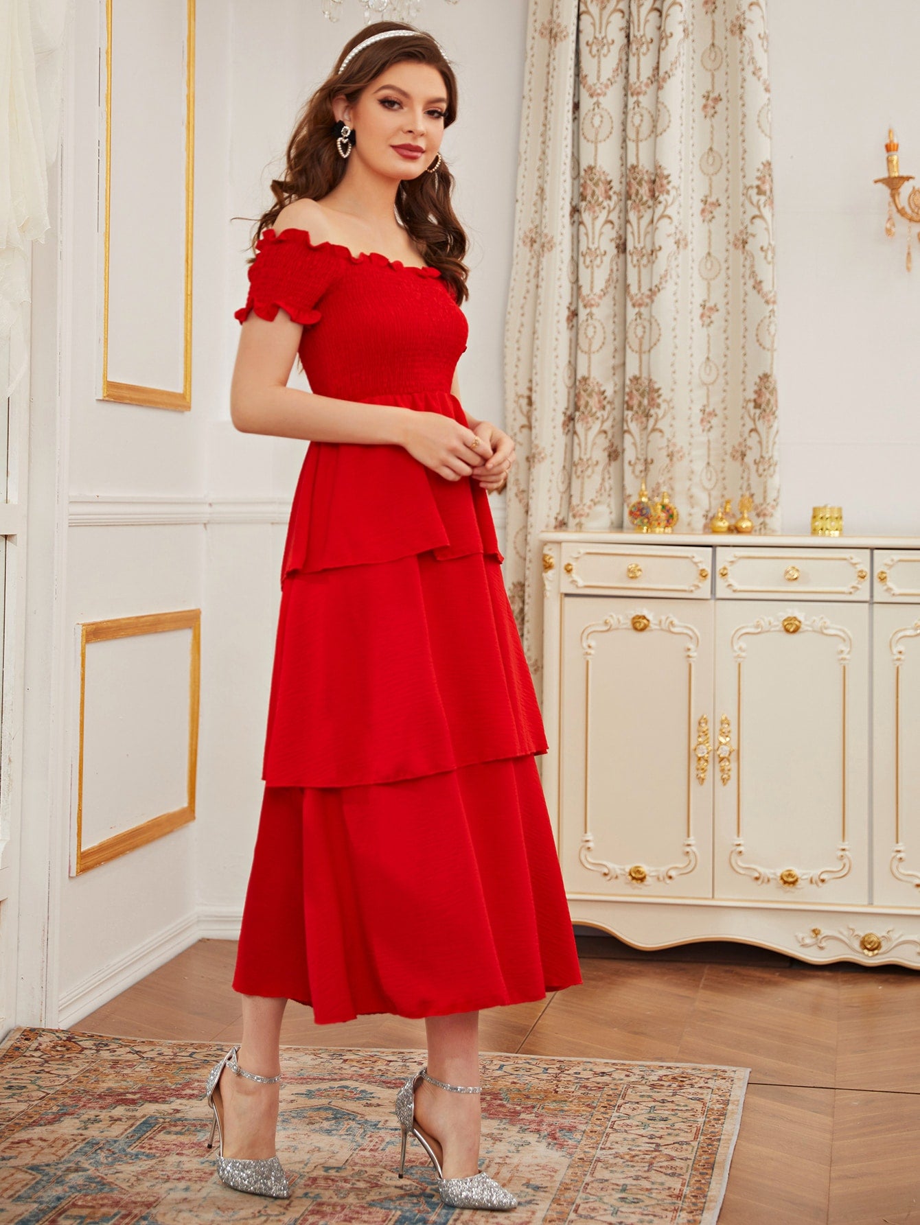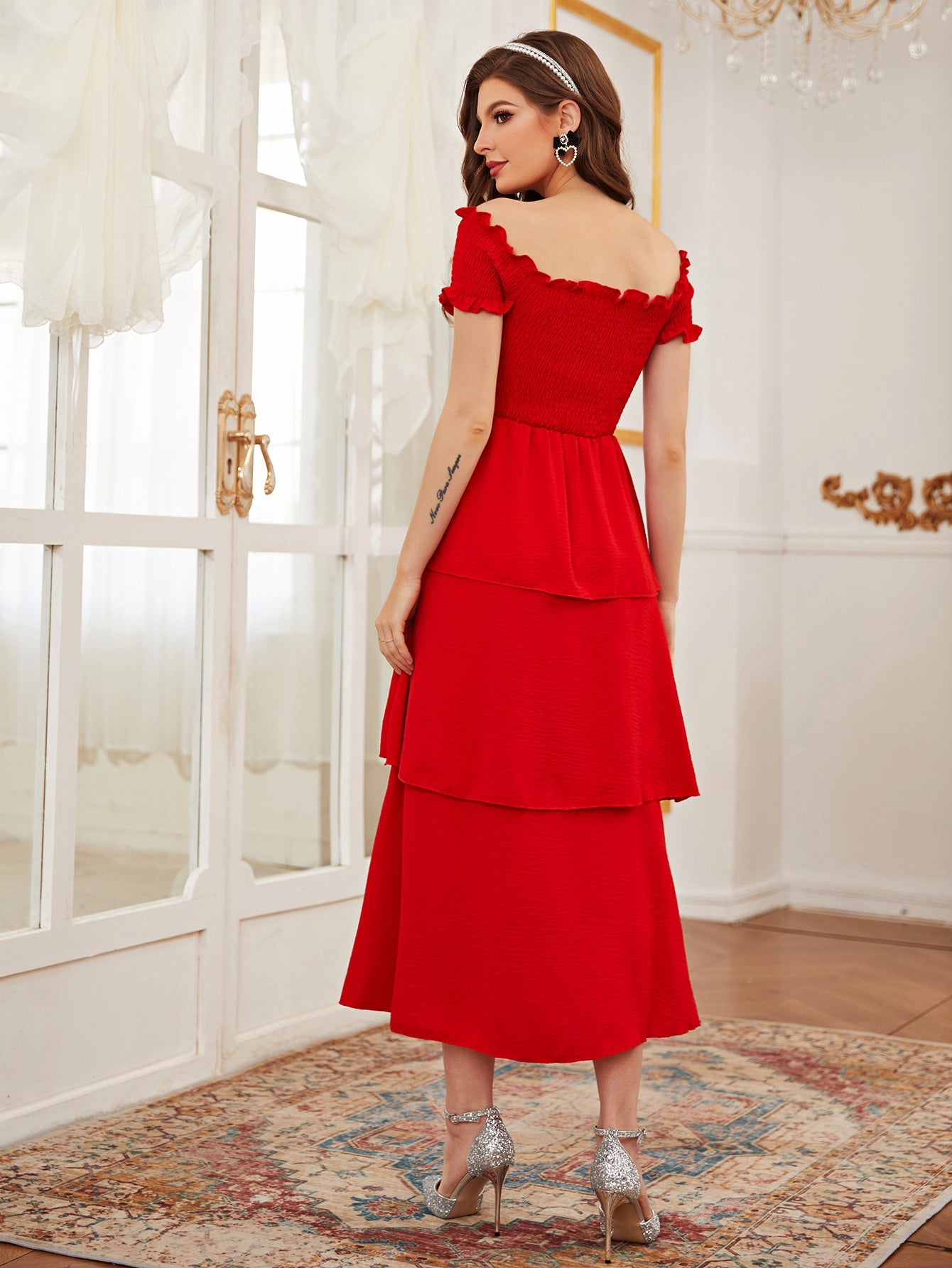 فستان قميص بحاشية وشاح بنصف زر بدون حزام