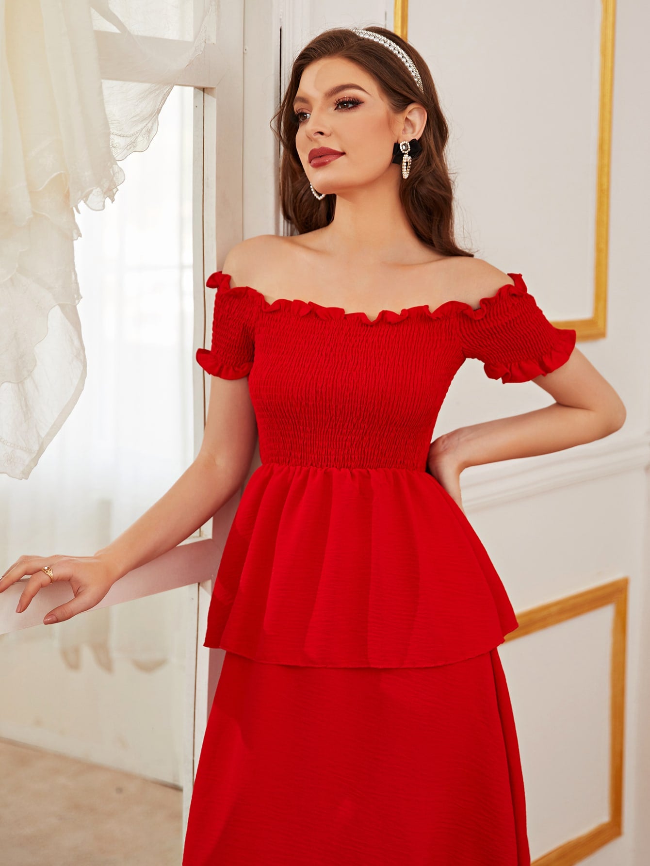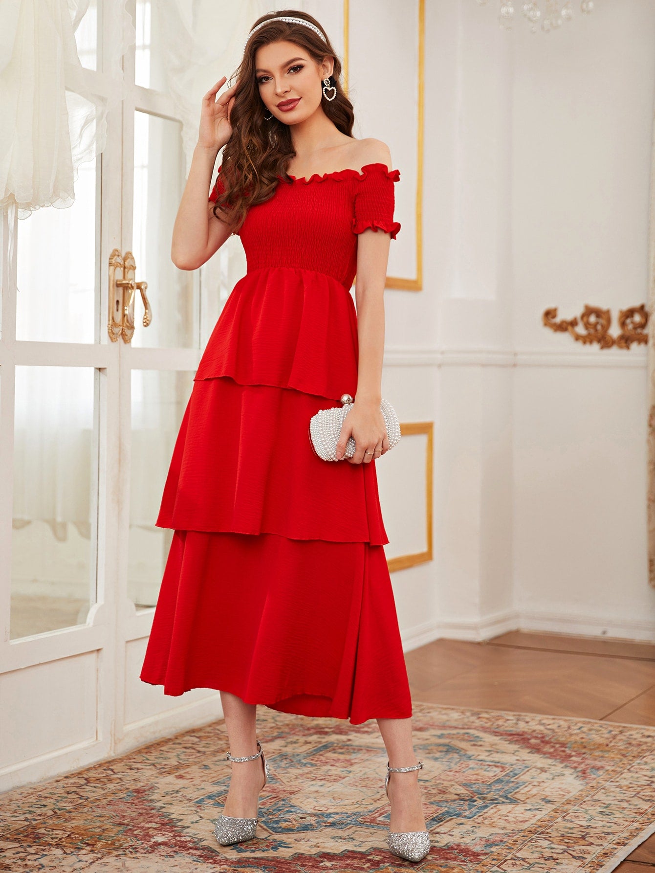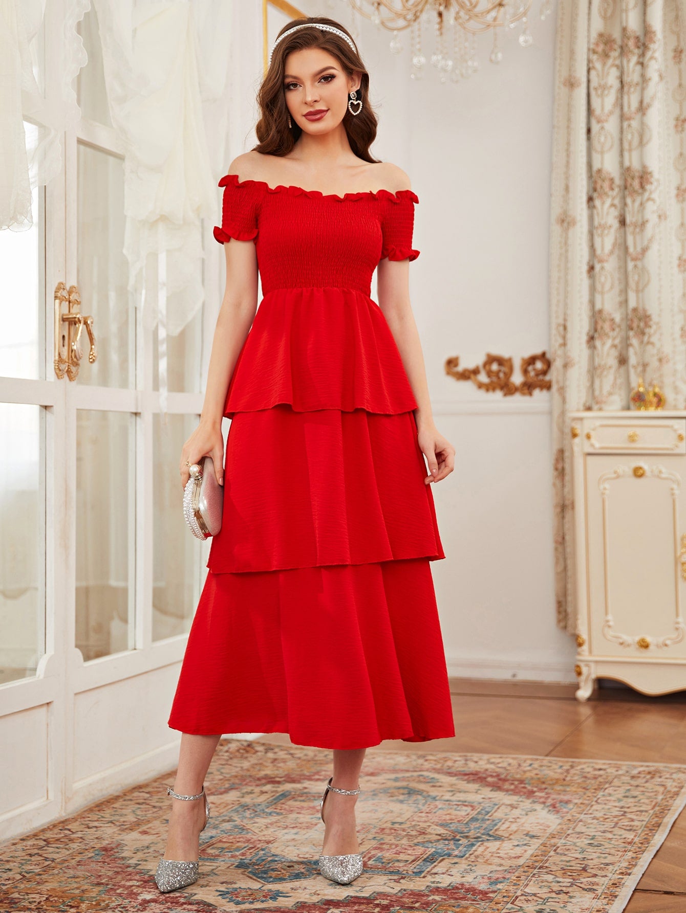 فستان قميص بحاشية وشاح بنصف زر بدون حزام