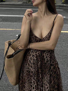 فستان نسائي صيفي من INAWLY بطبعة جلد النمر وحمالات رفيعة