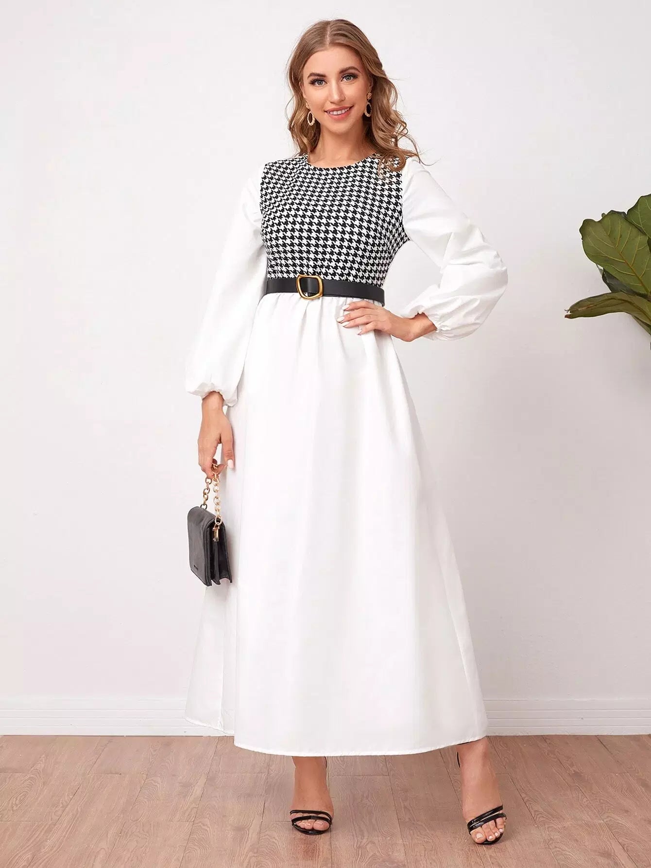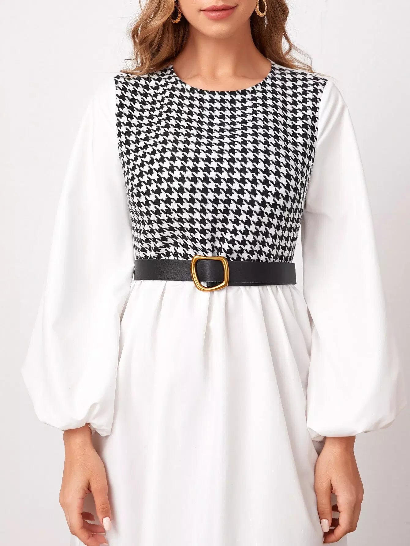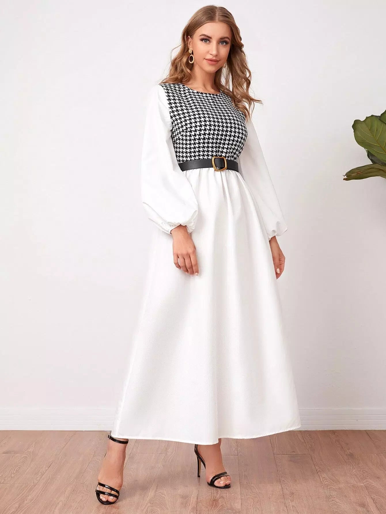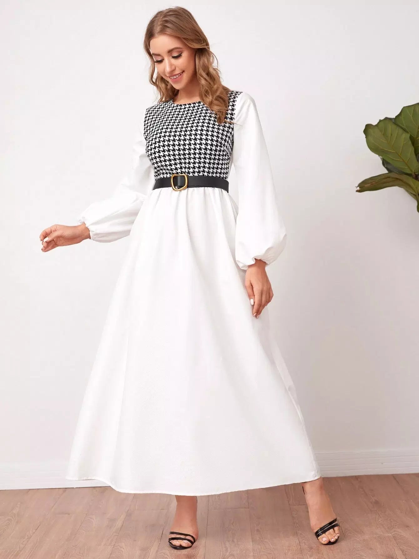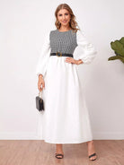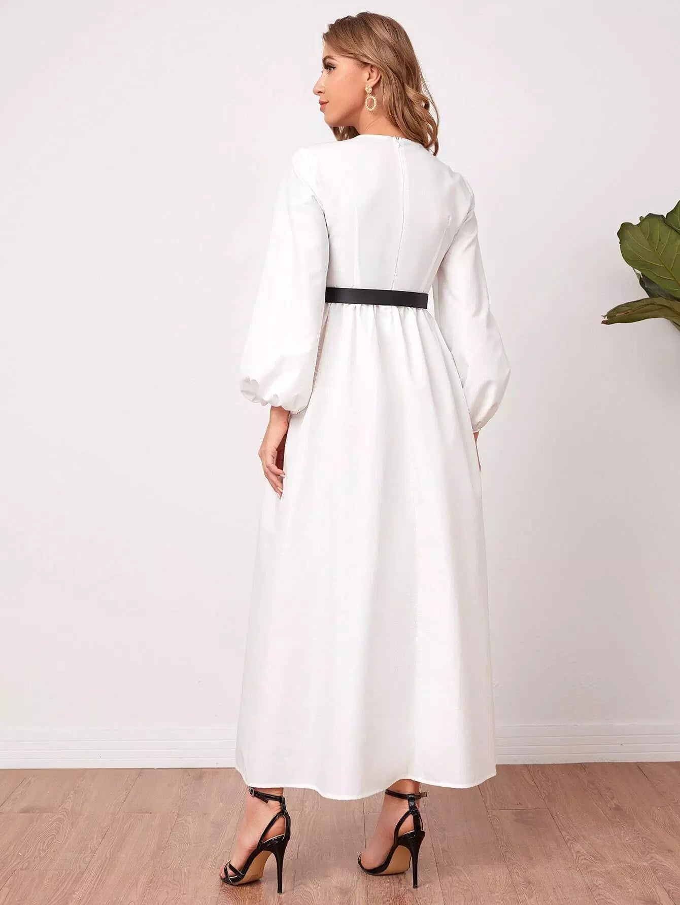فستان بأكمام فانوس بأكمام فانوسية بصدور مربعة بدون حزام