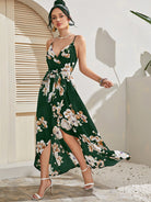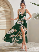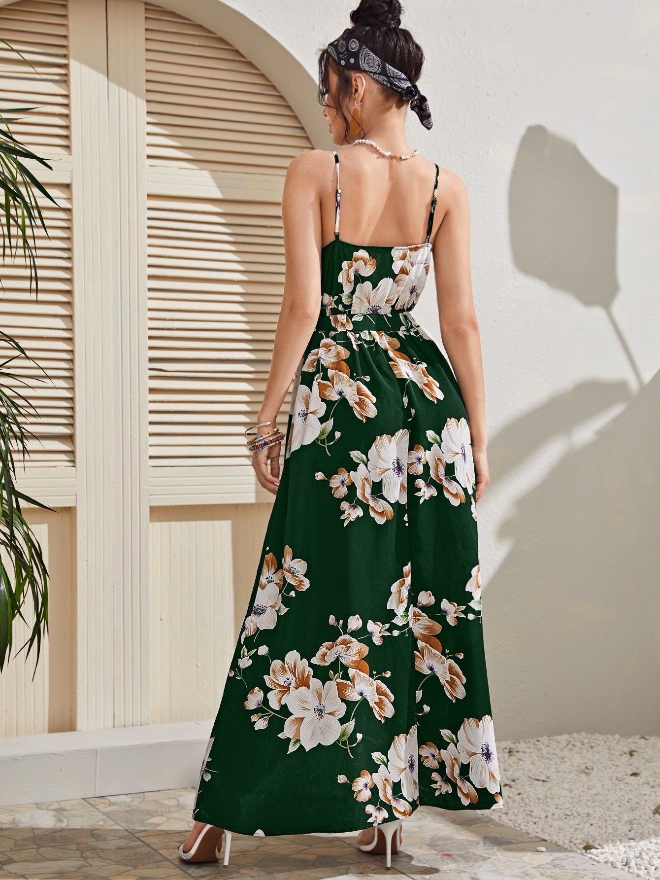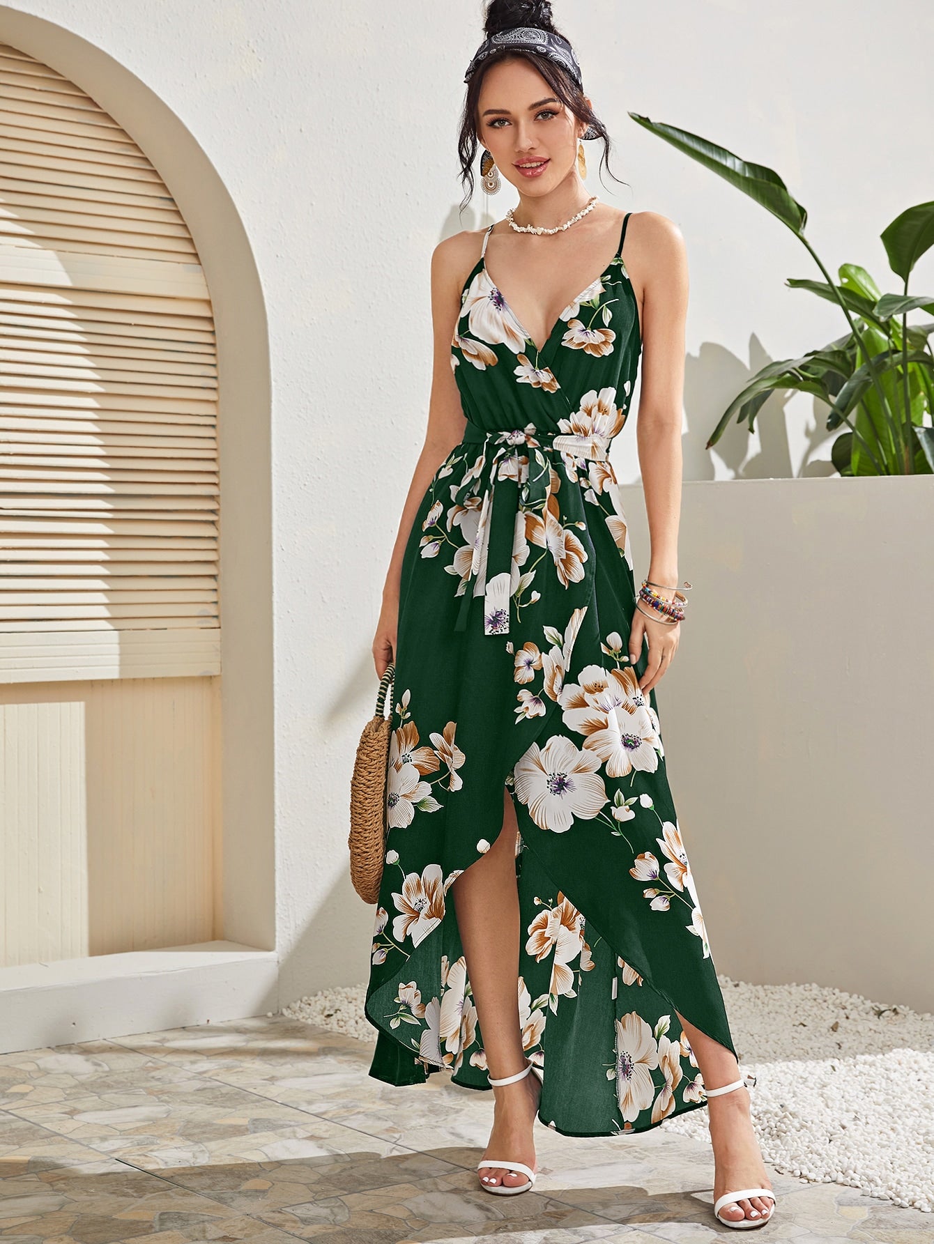فستان كامي بطباعة زهور، لف ذاتي، بدون حزام