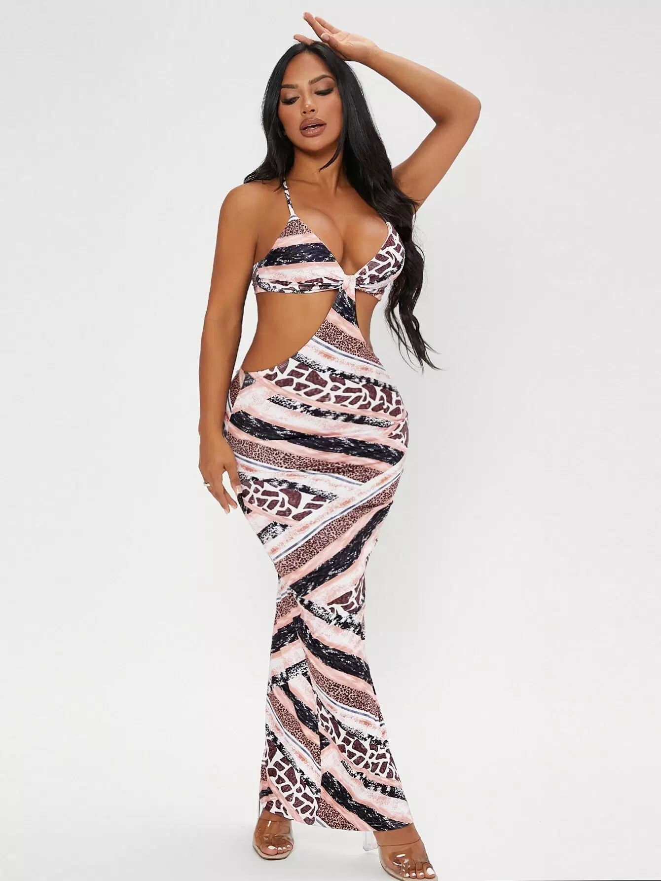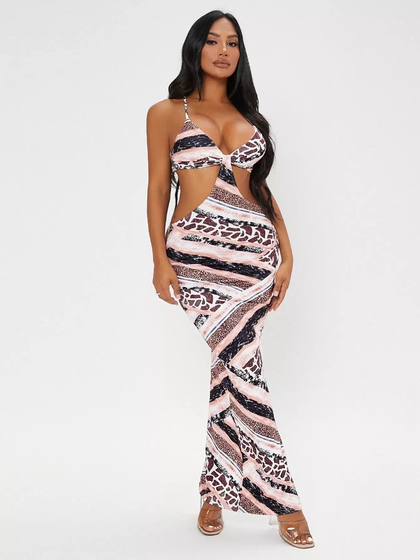 فستان بوديكون بطبعة جلد الفهد بفتحة منقسمة الحواف