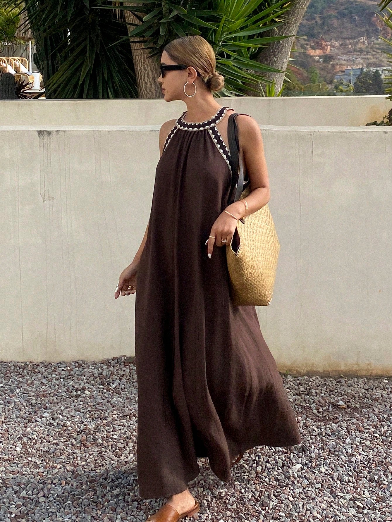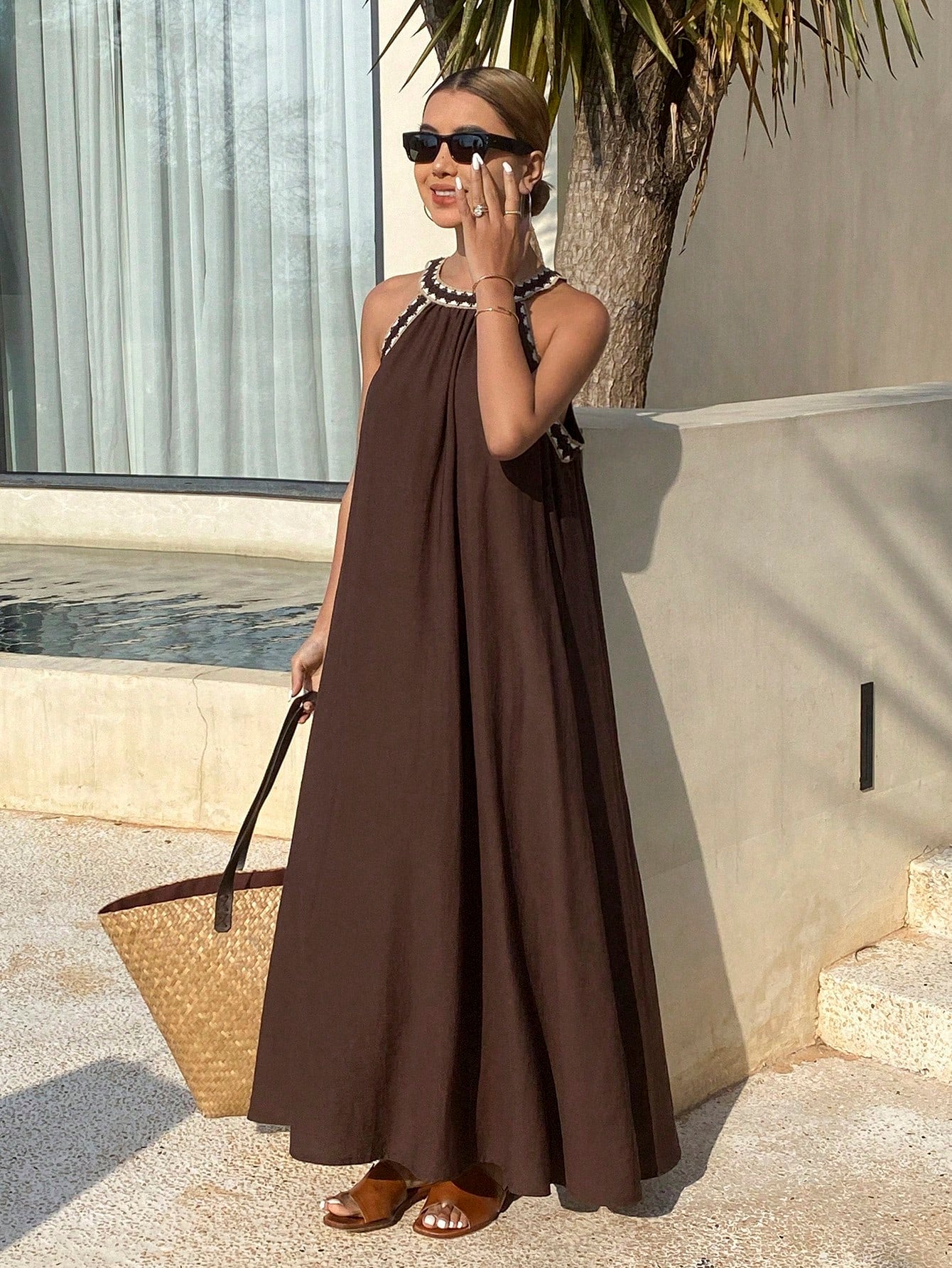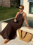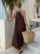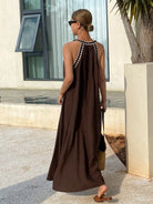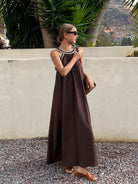 فستان ليفيسو بحزام من الدانتيل، فستان صيفي طويل فضفاض بدون أكمام للعطلات للنساء، فستان صيفي من الكتان، كاجوال