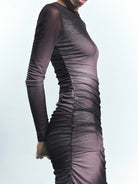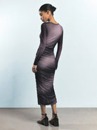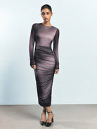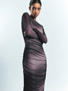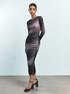 Maija Women's Coffee Brown Round Neck Early Spring Long Sleeve Ombre Print Ruched Fashionable Versatile