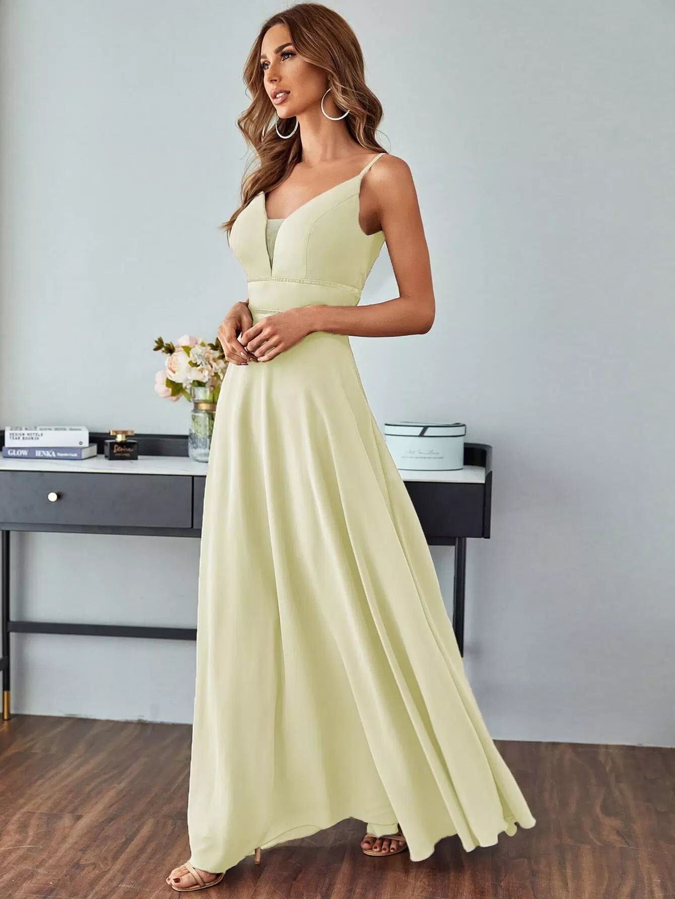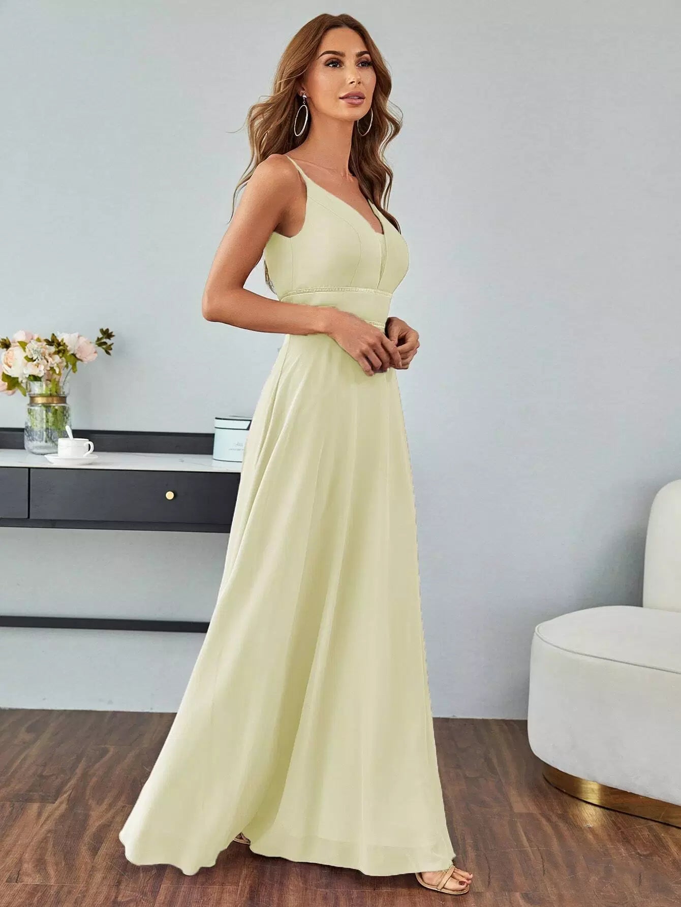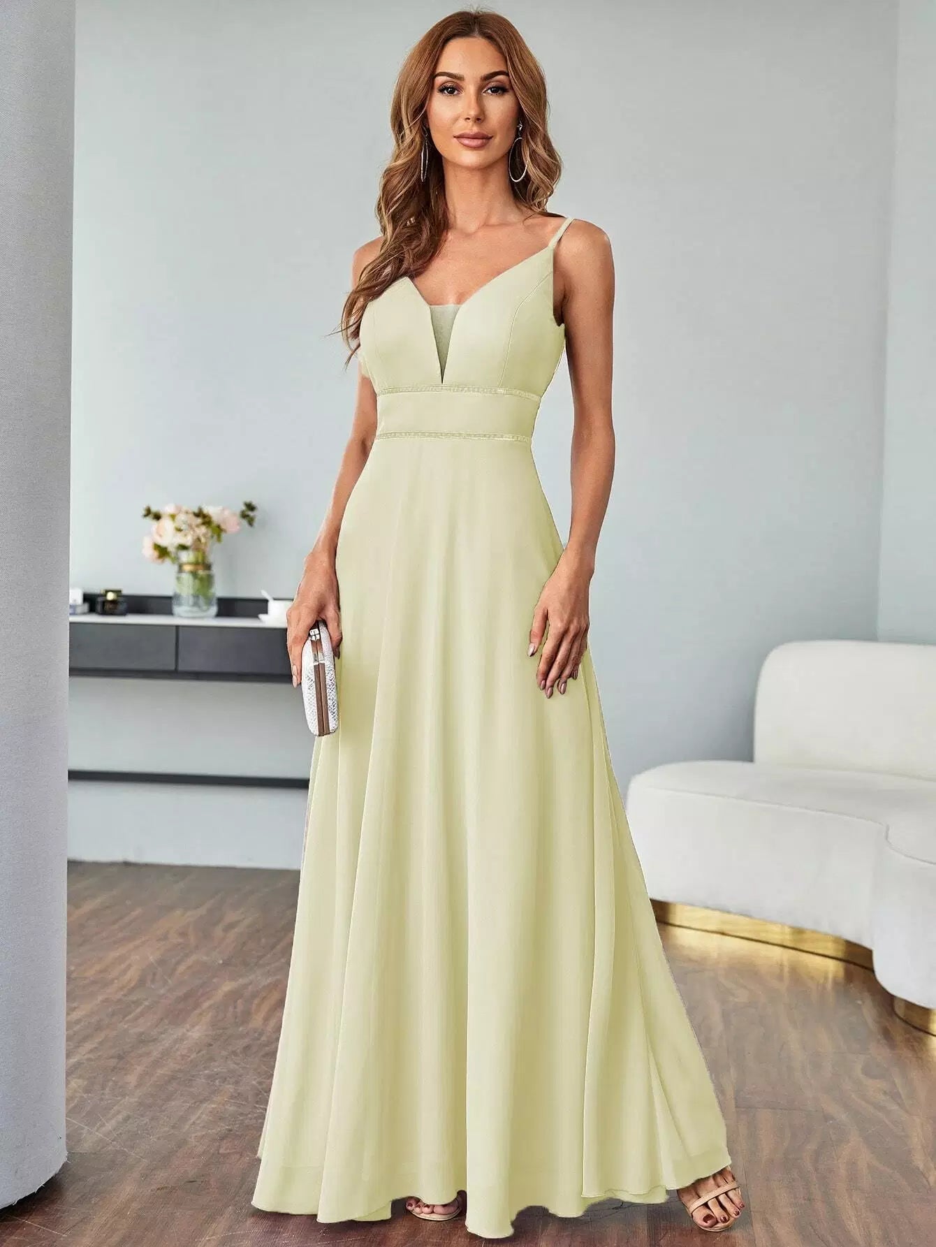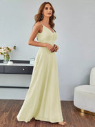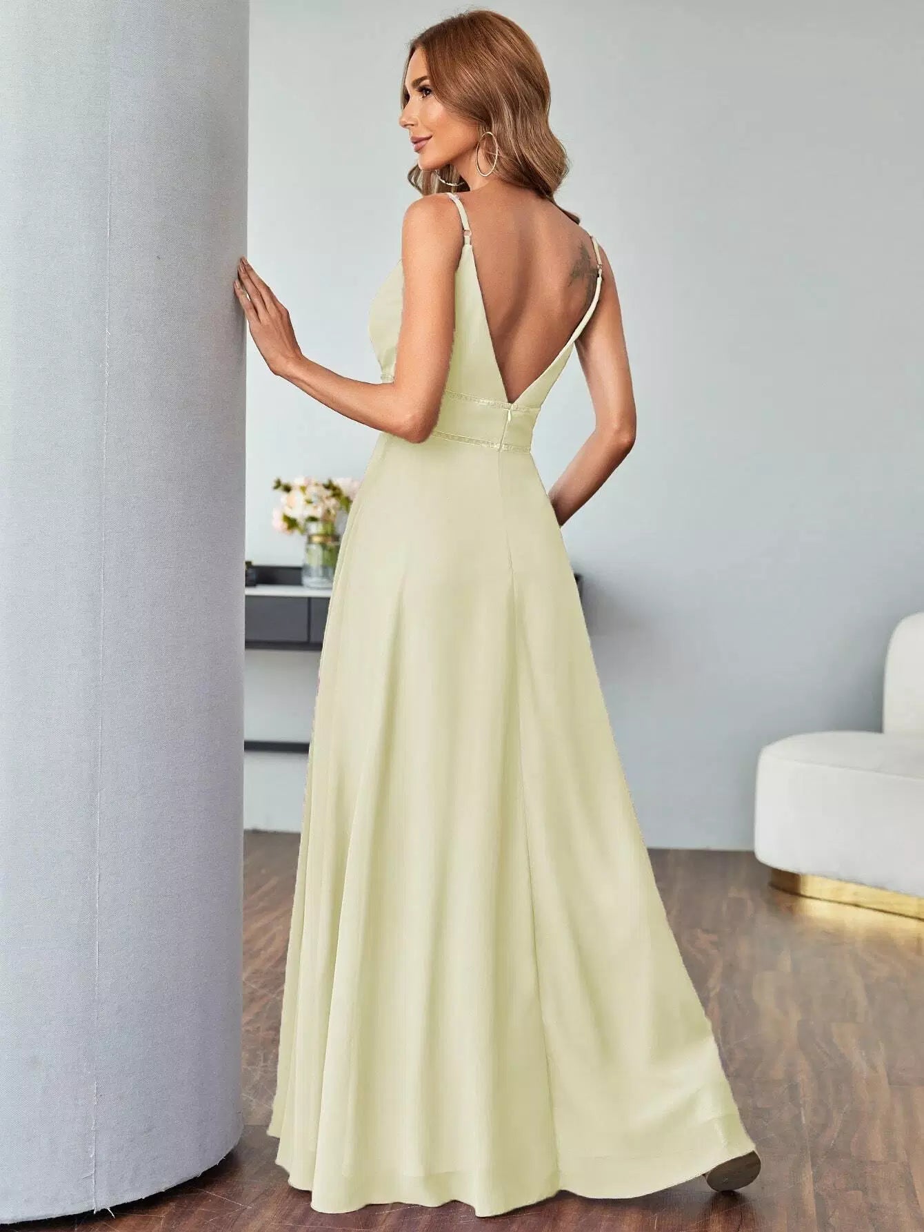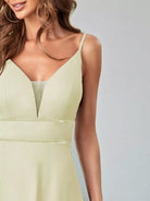 فستان حفلة راقصة على شكل حرف V شبكي من الخلف
