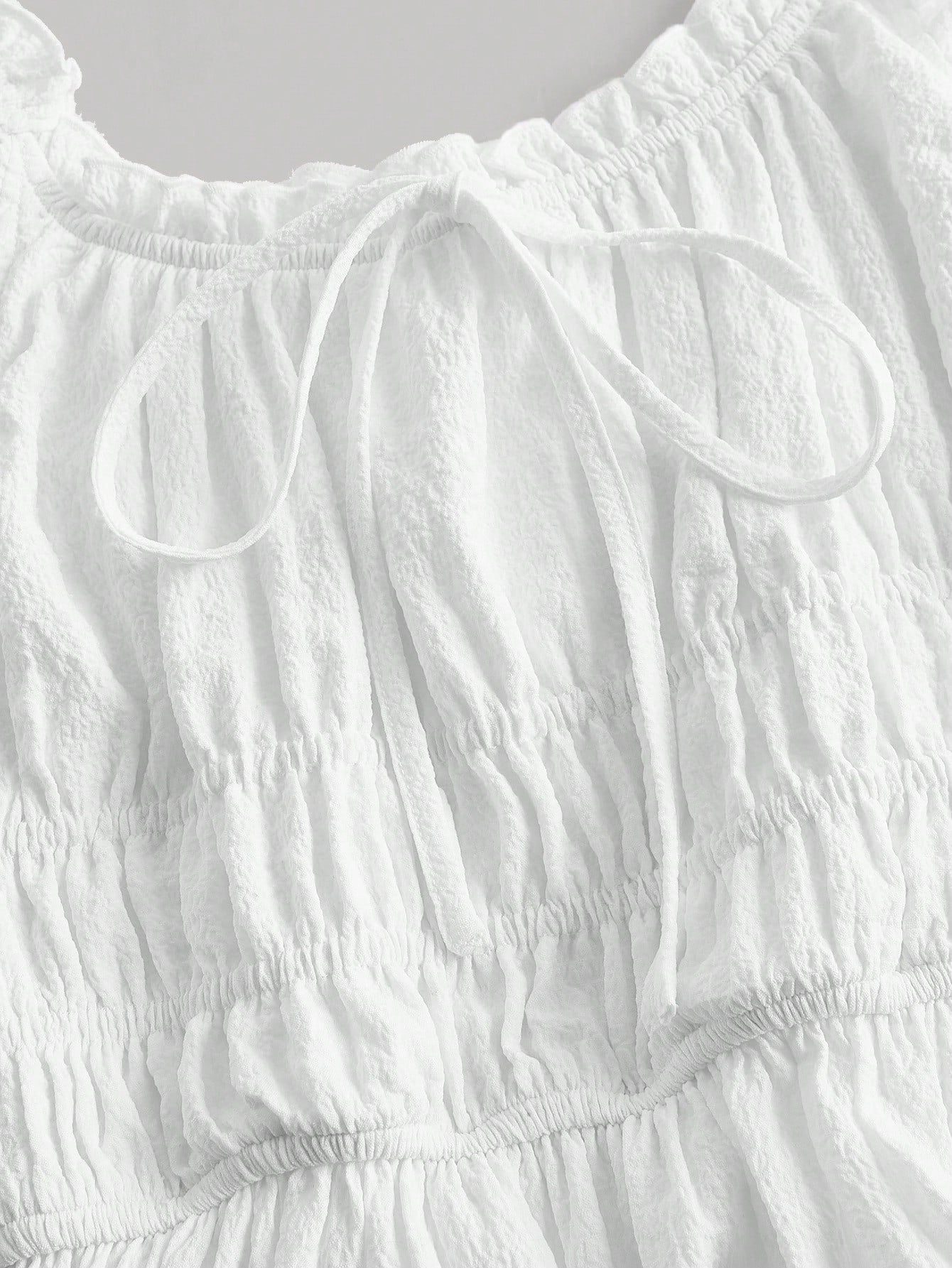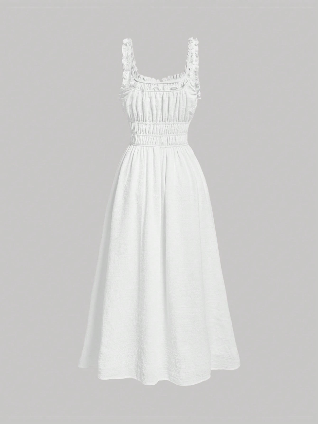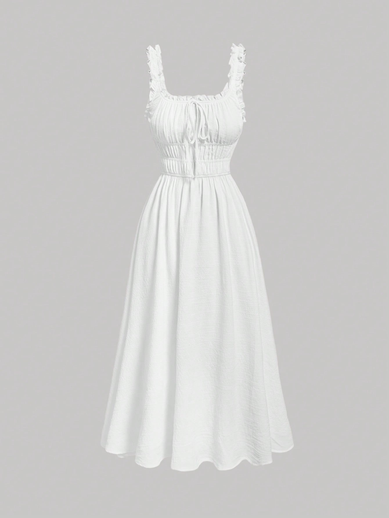 فستان كامي سادة بتصميم مكشكش عند الصدر وحواف مكشكشة